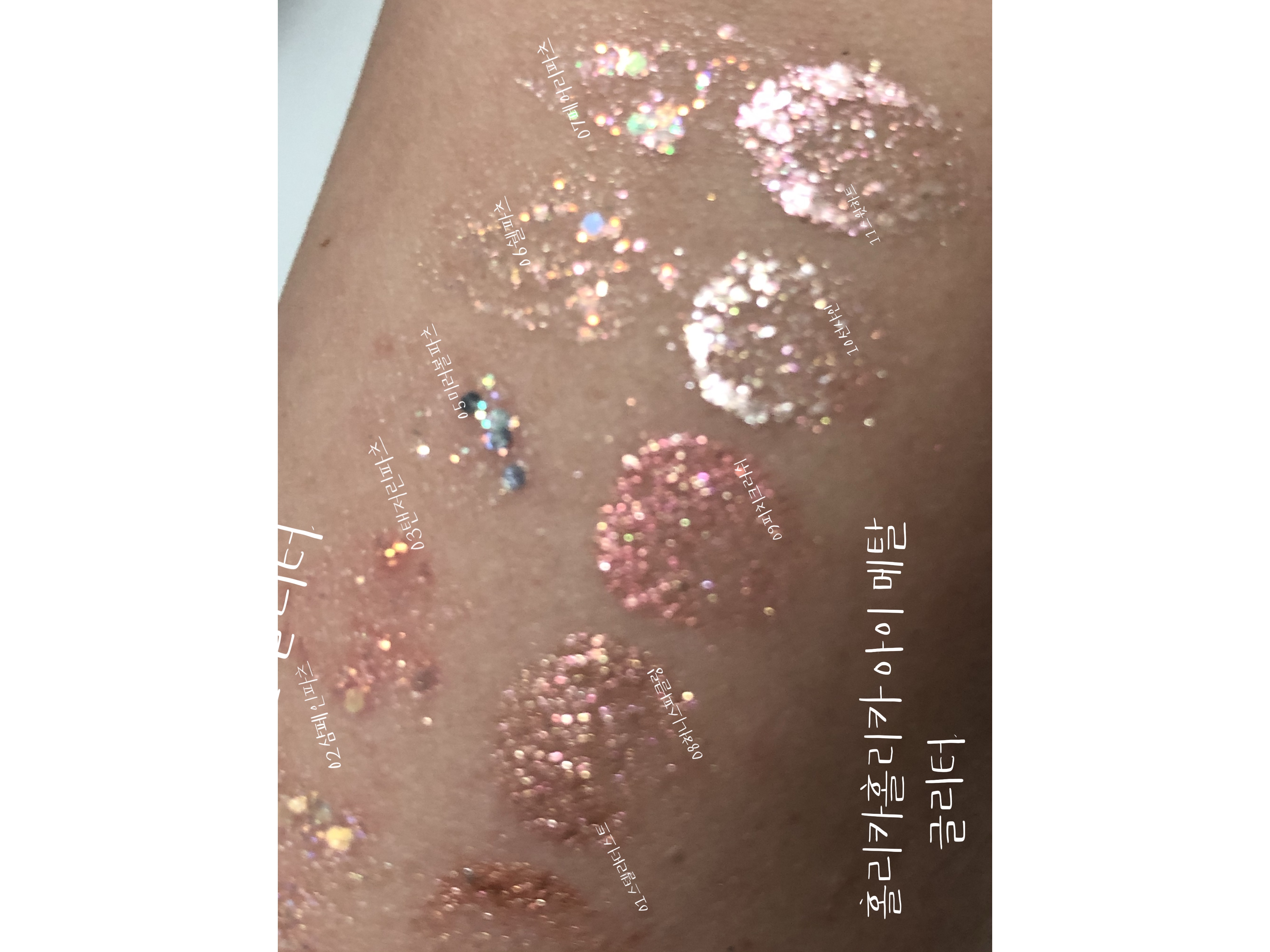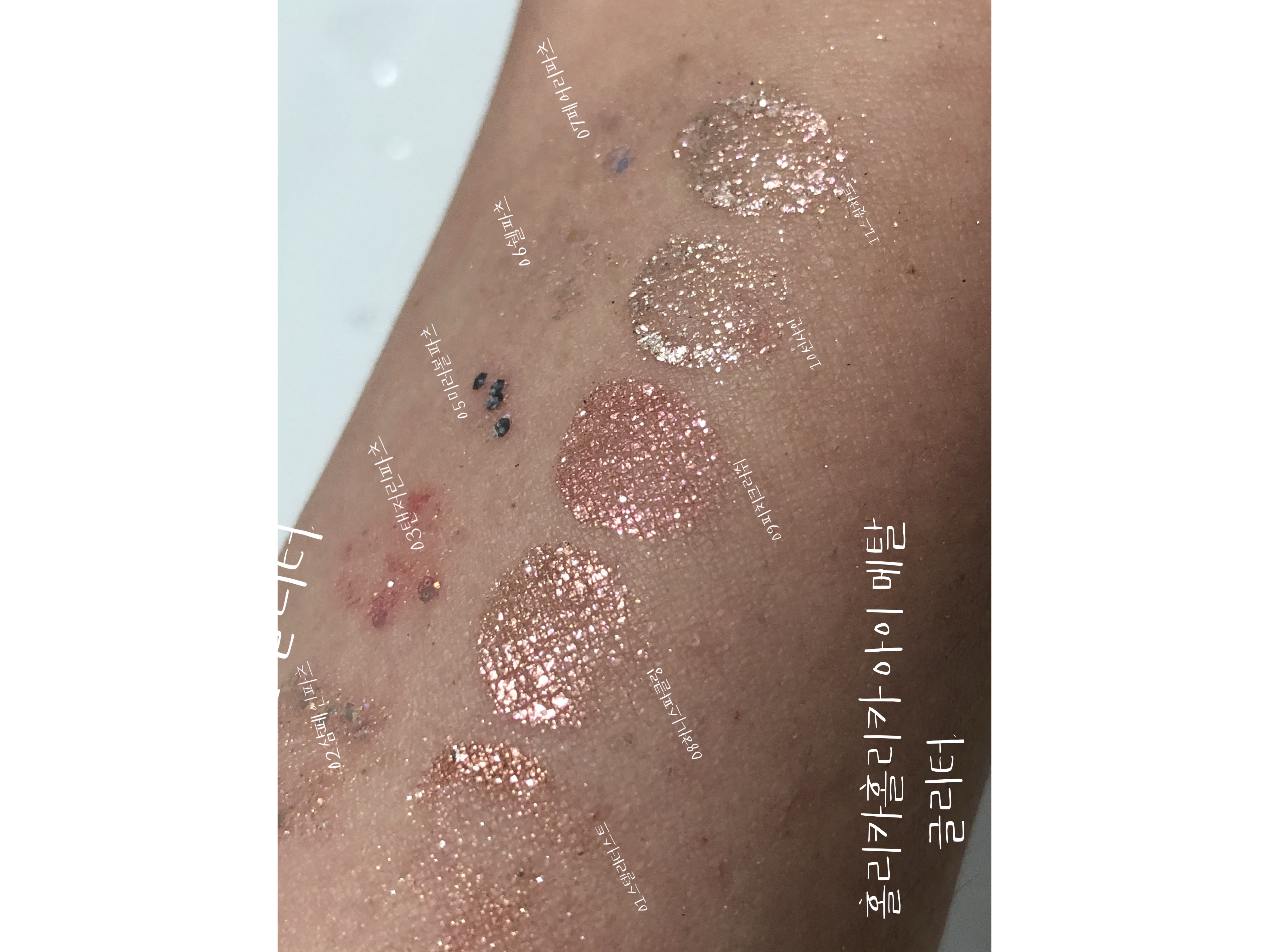 베이스 색상은 거의 보이지 않고 펄땡이만 바로 보이는 색상이에요.