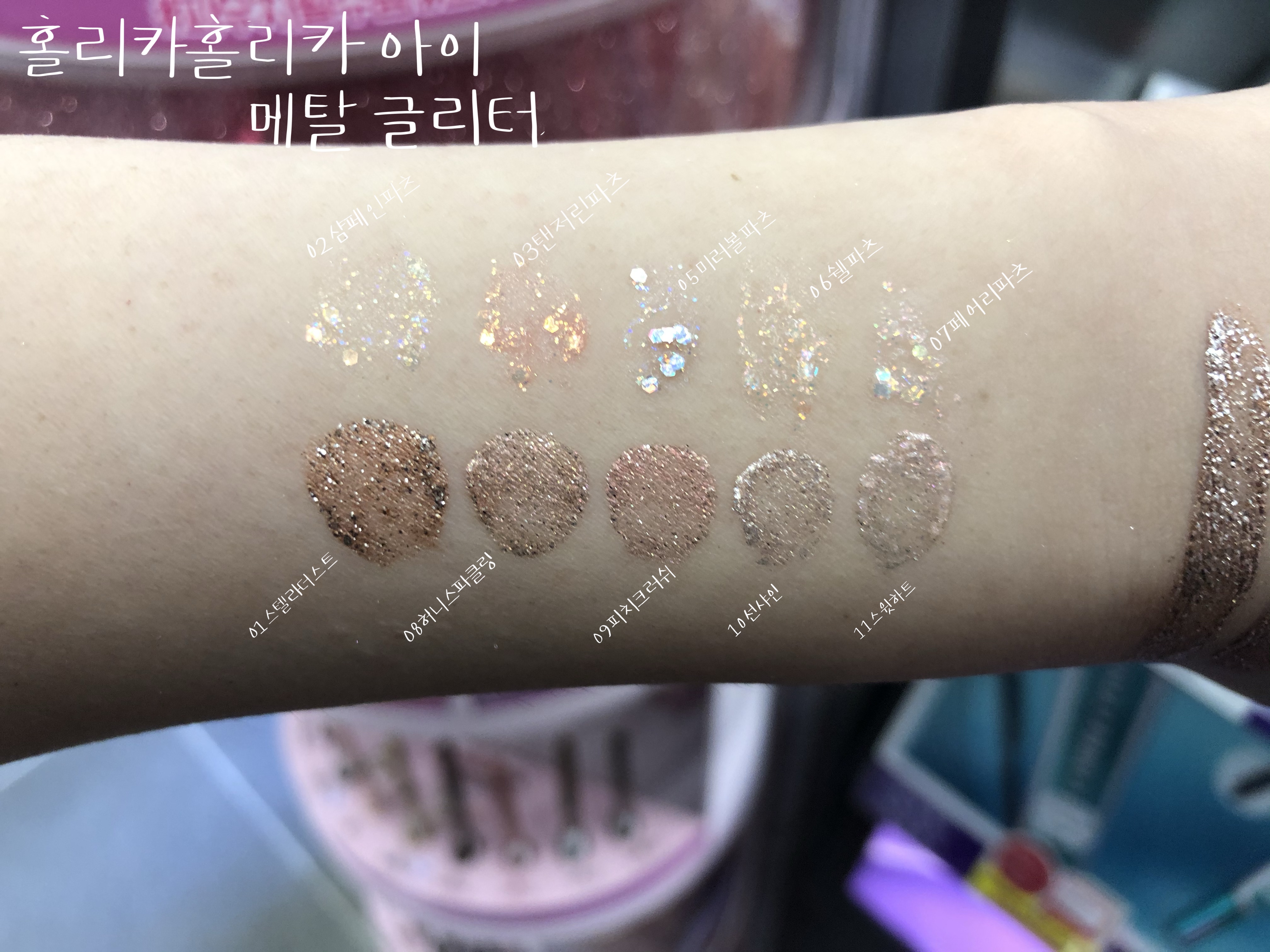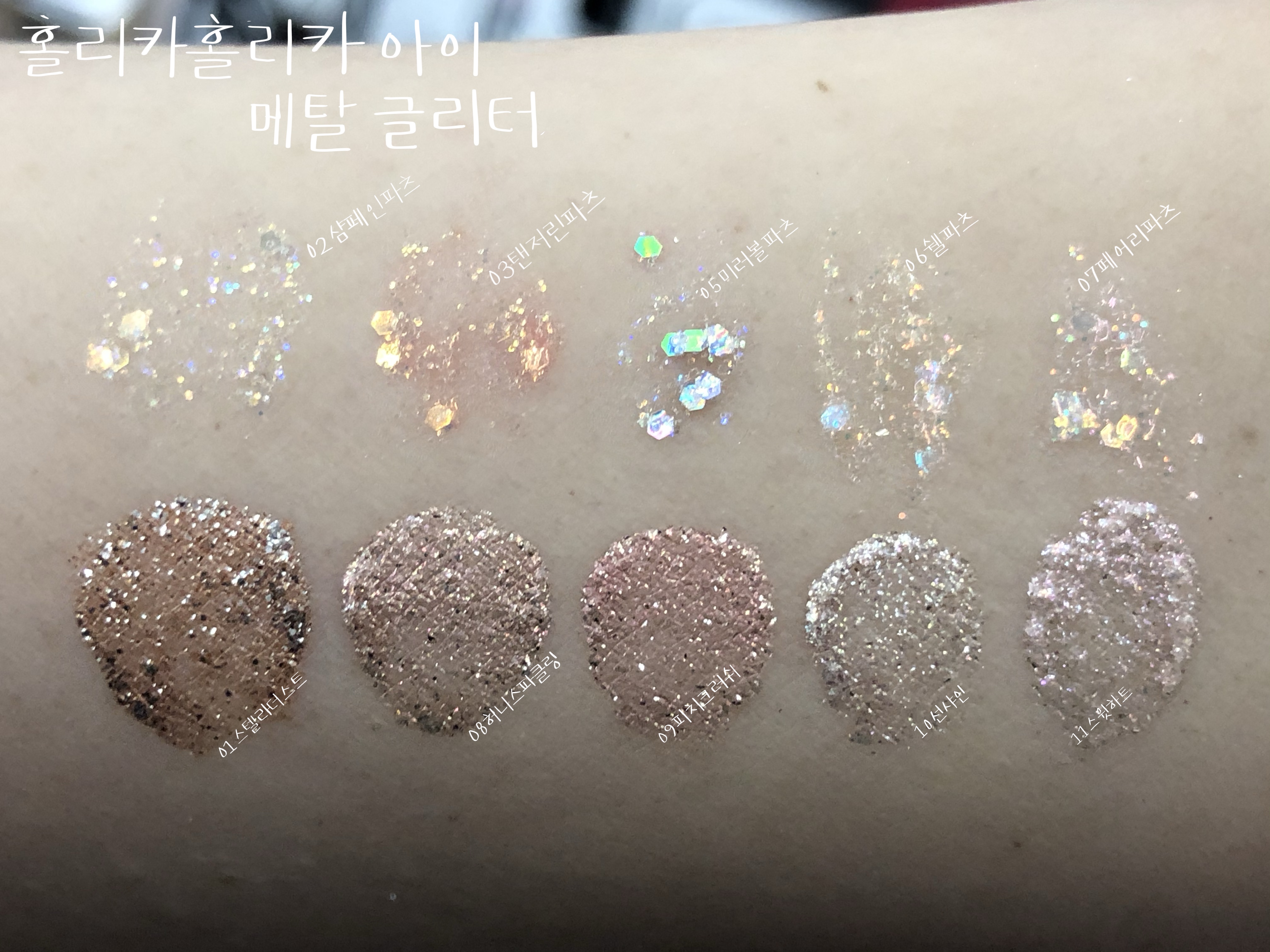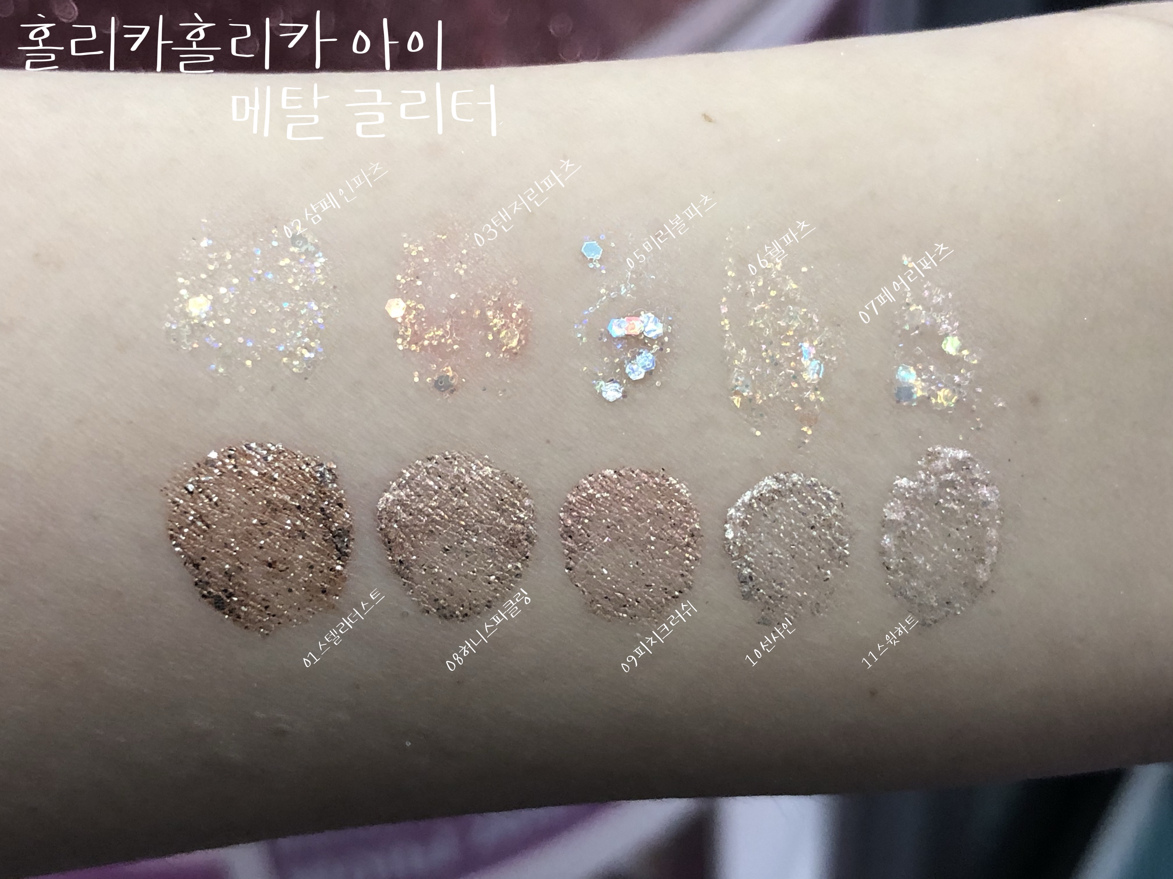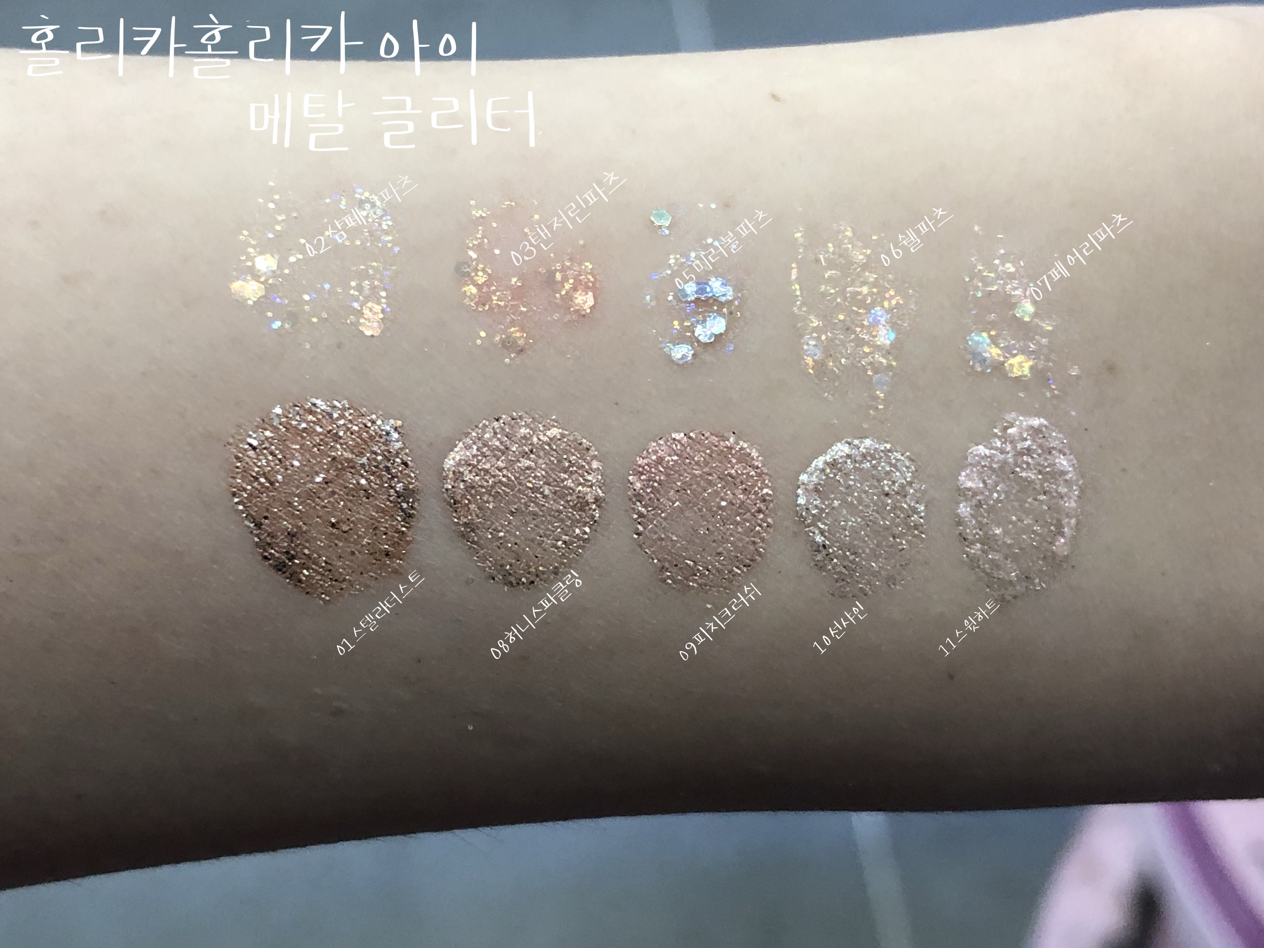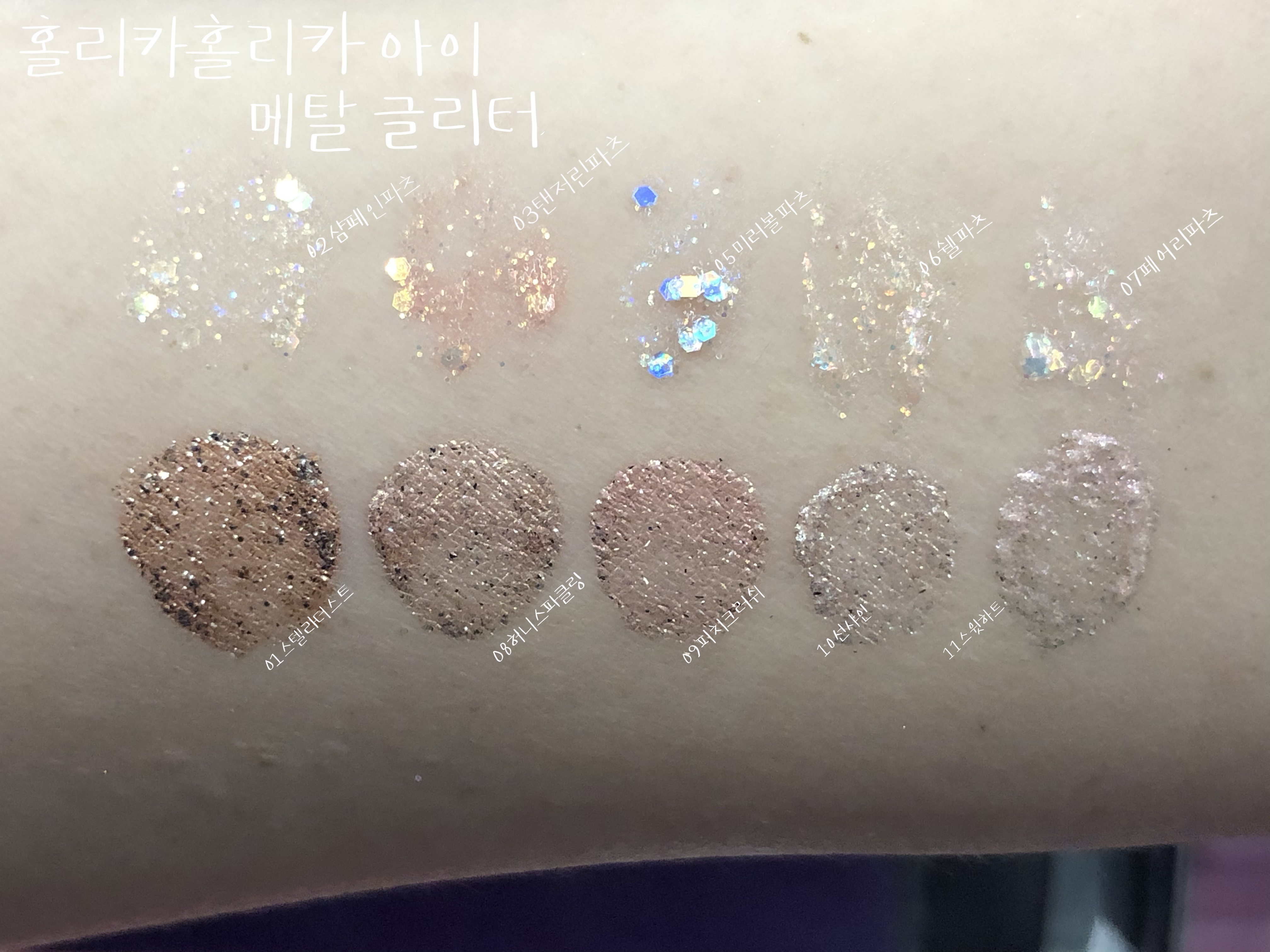 10가지 아이 섀도우 홀리카홀리카 아이 메탈 글리터 전 색상 발색 리뷰
