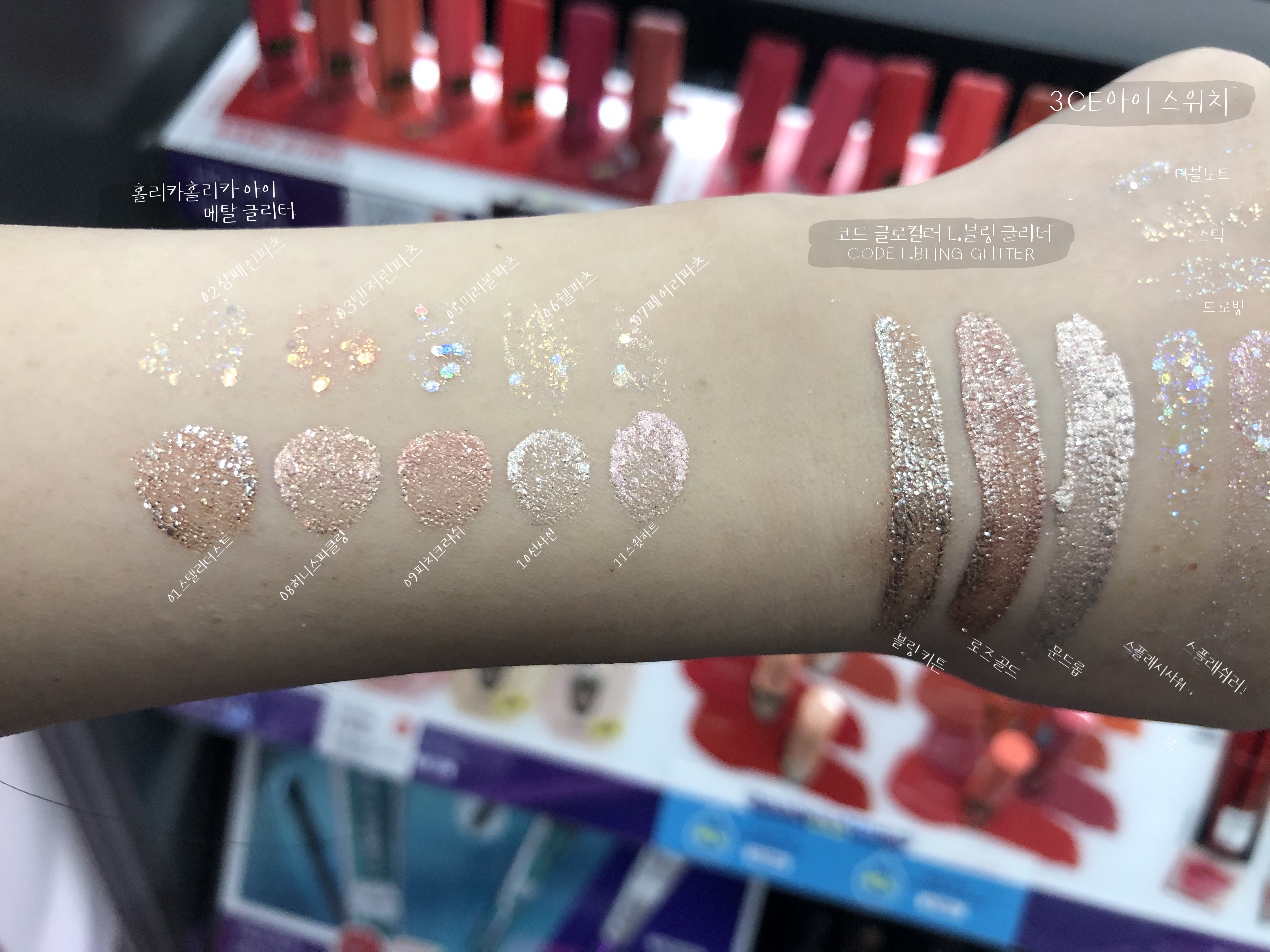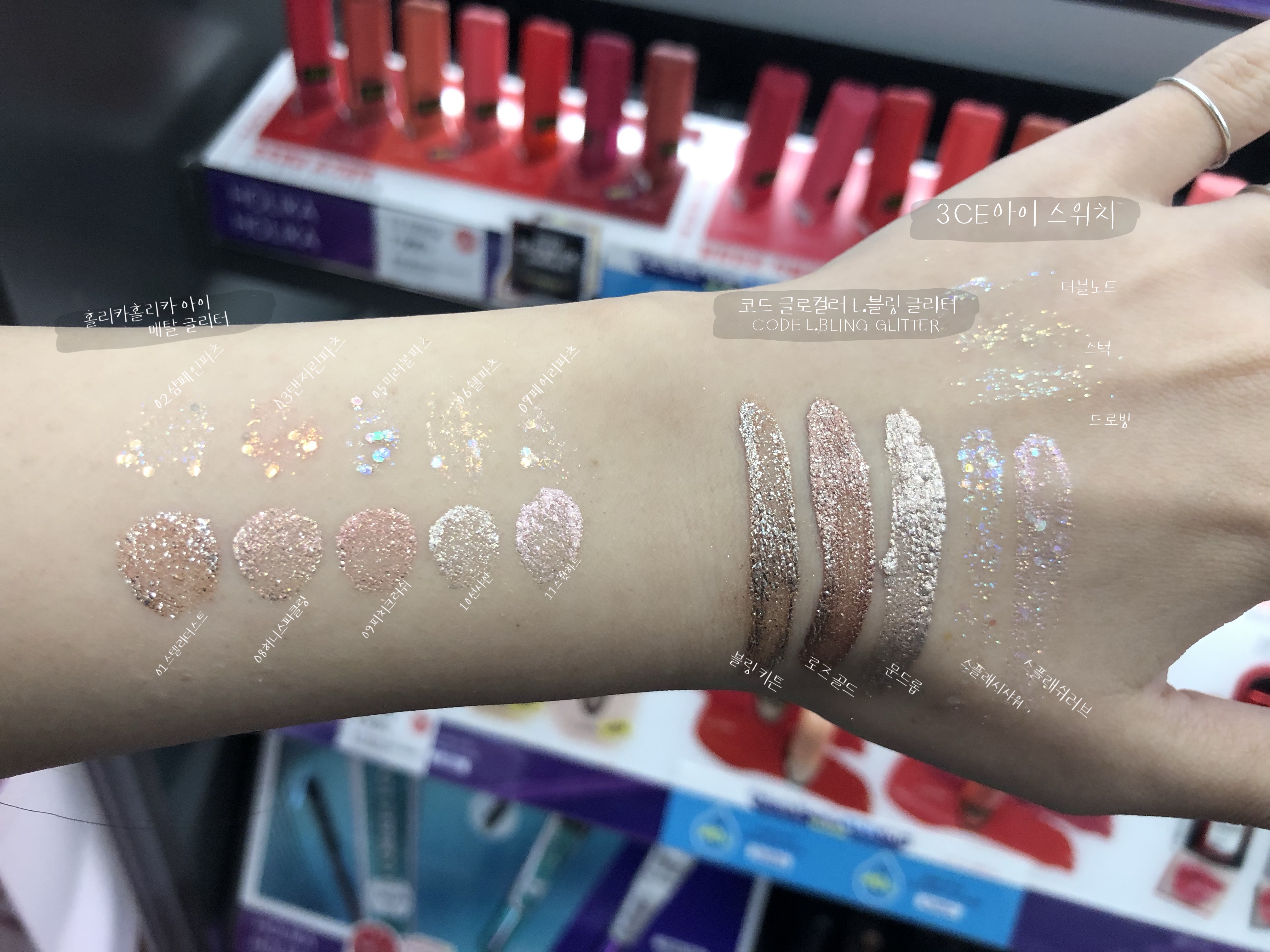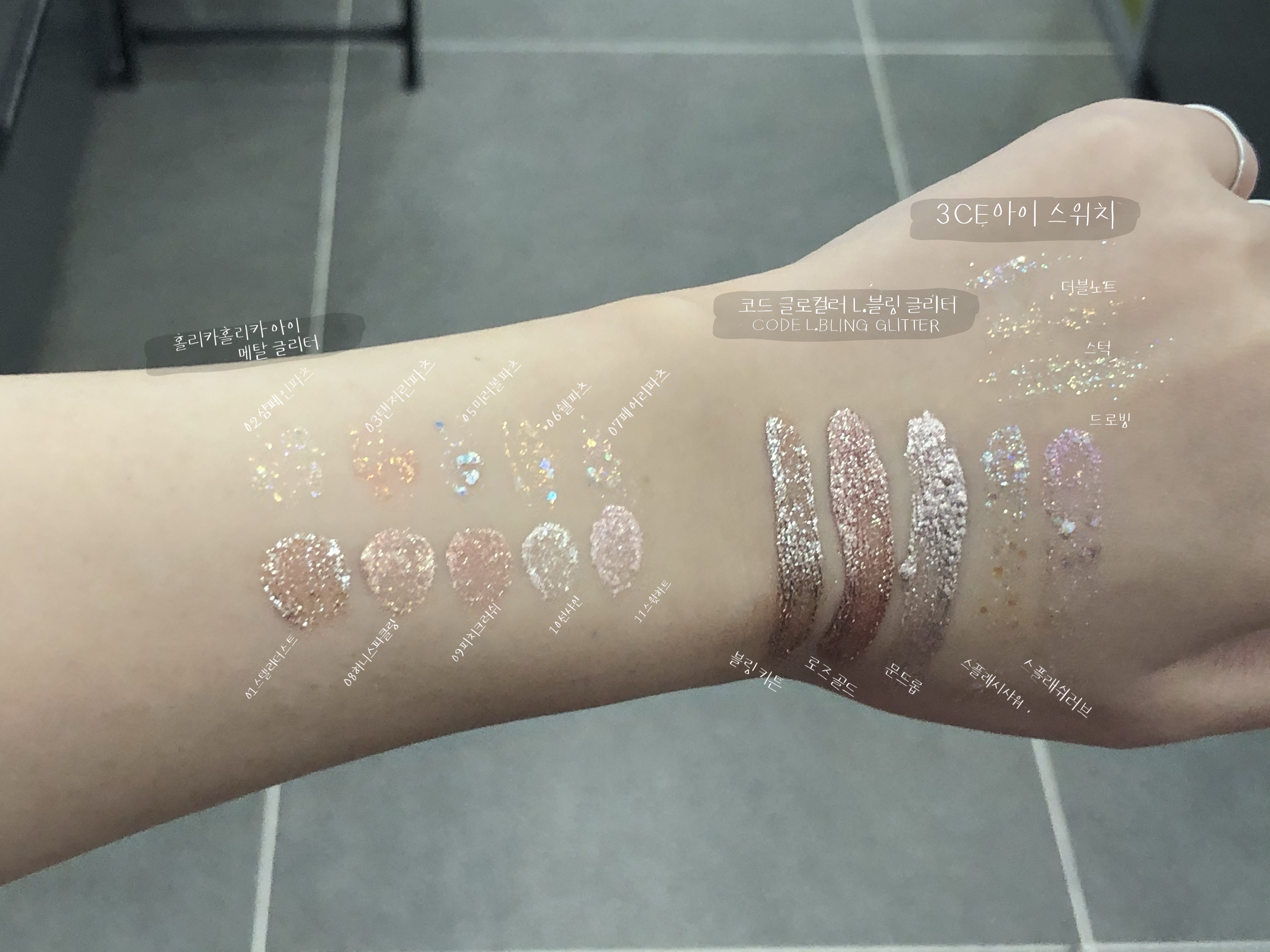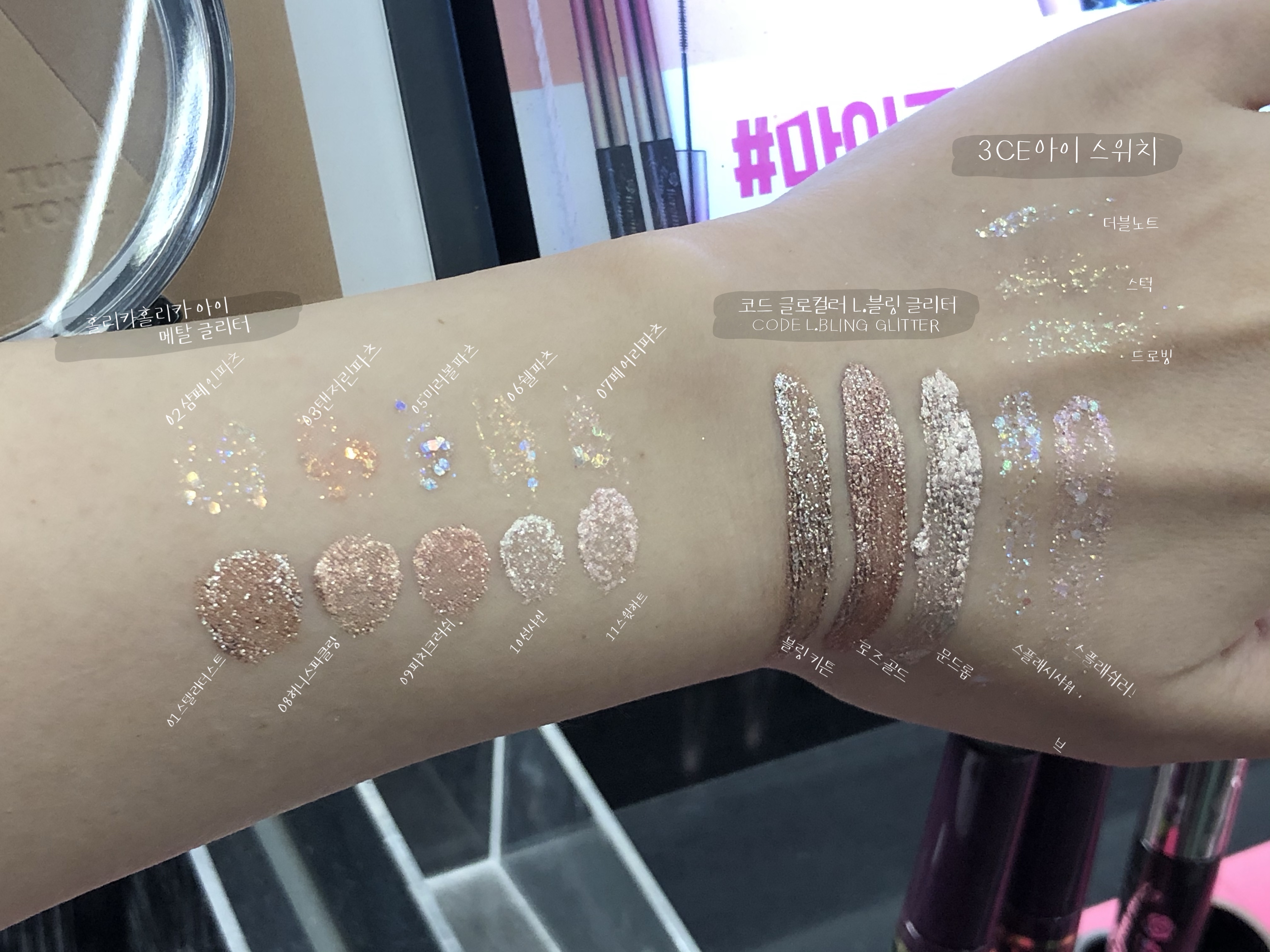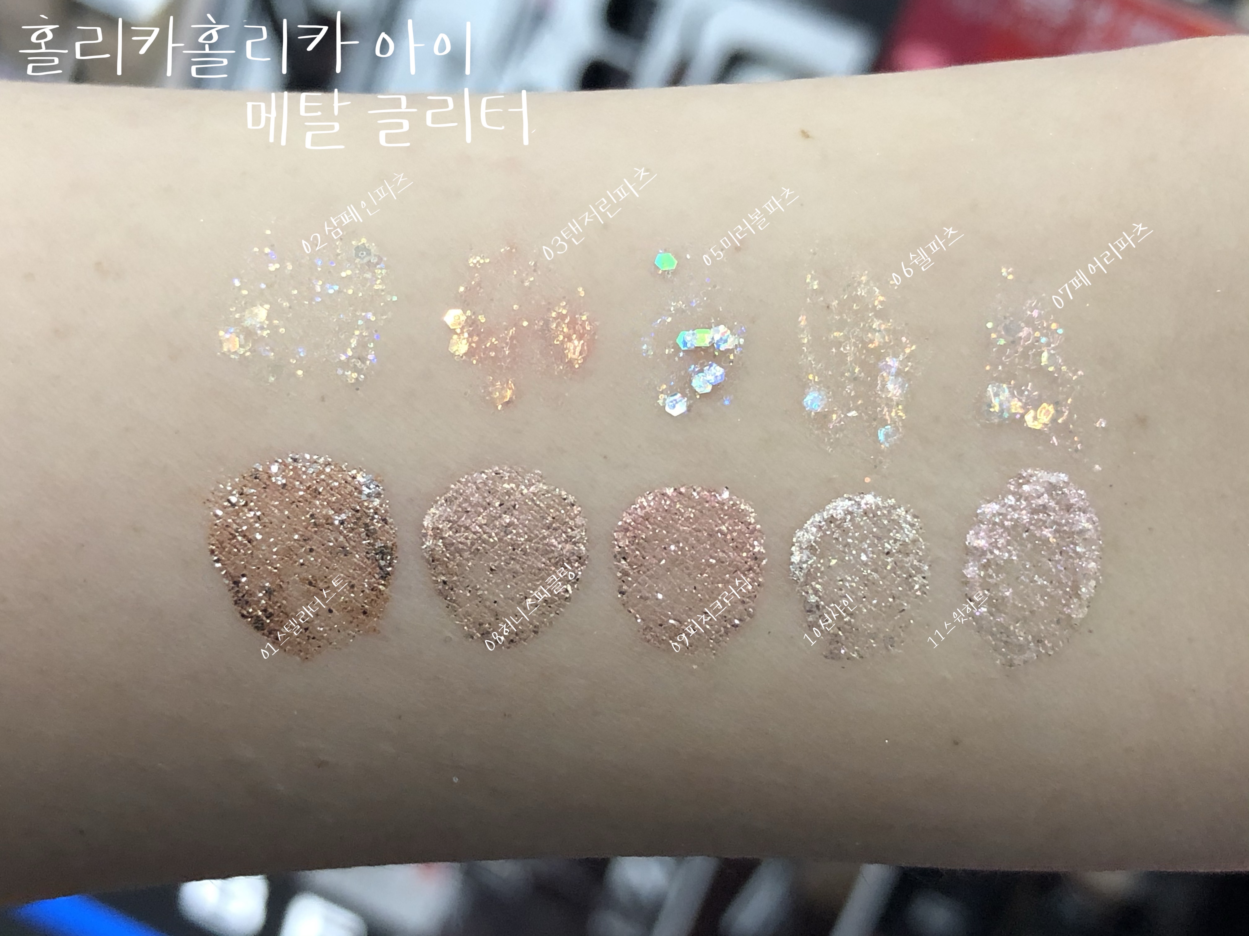 10가지 아이 섀도우 홀리카홀리카 아이 메탈 글리터 전 색상 발색 리뷰