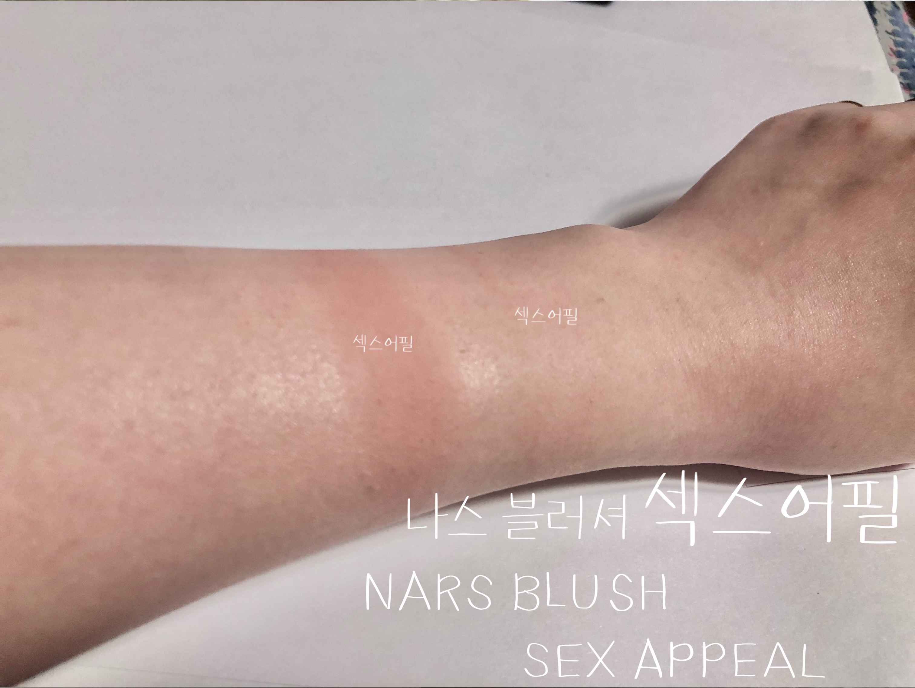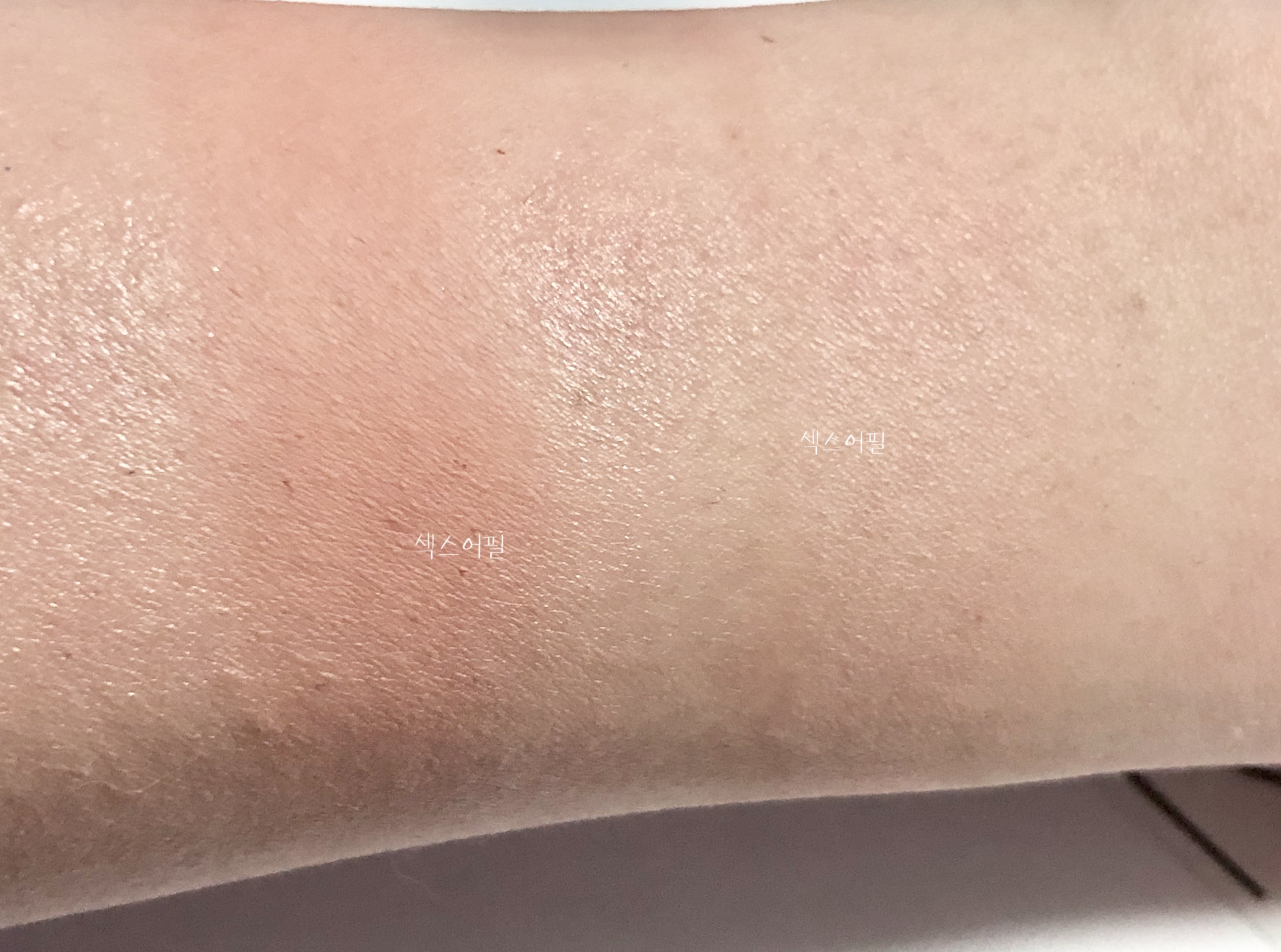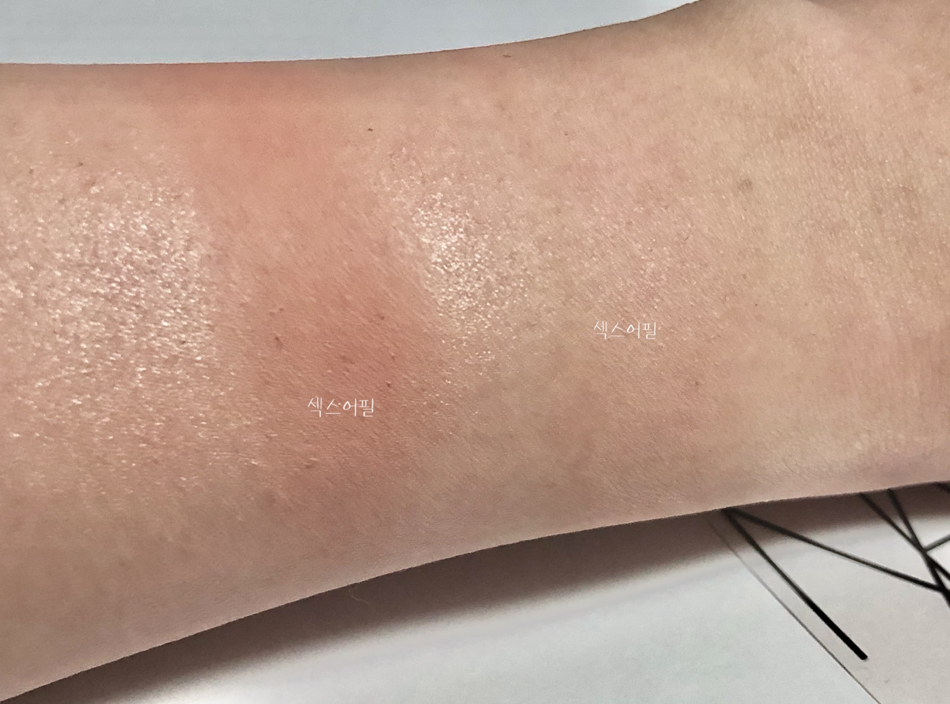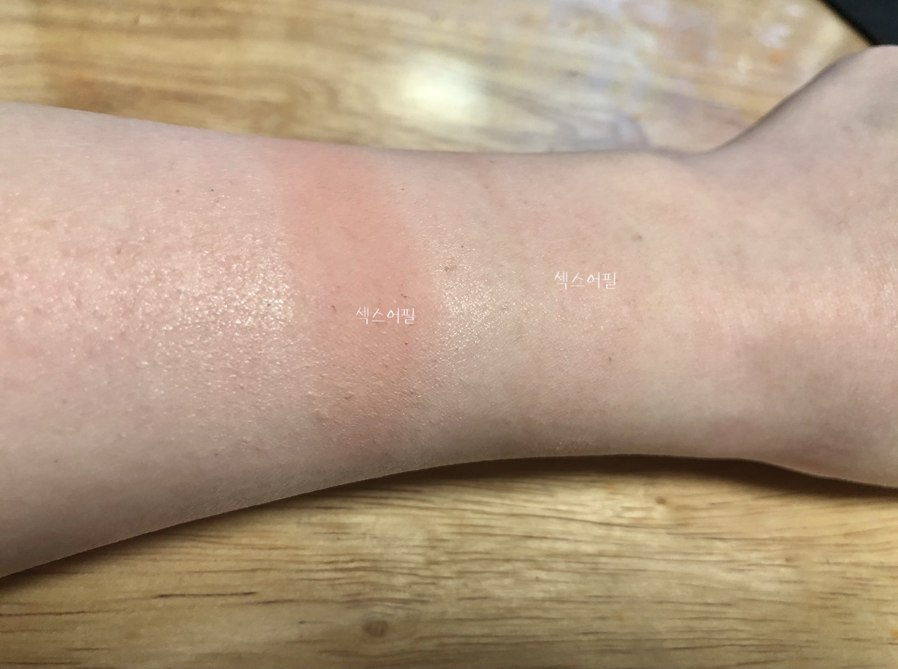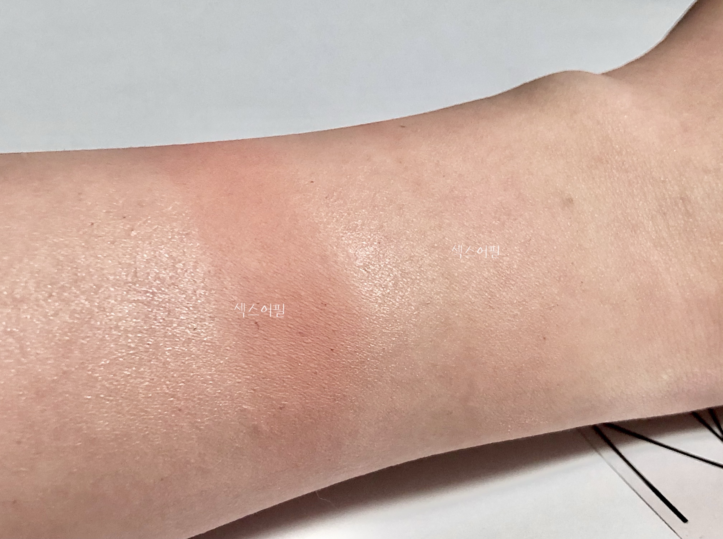 손목 위의 발색 두 색상 모두 섹스어필이에요.