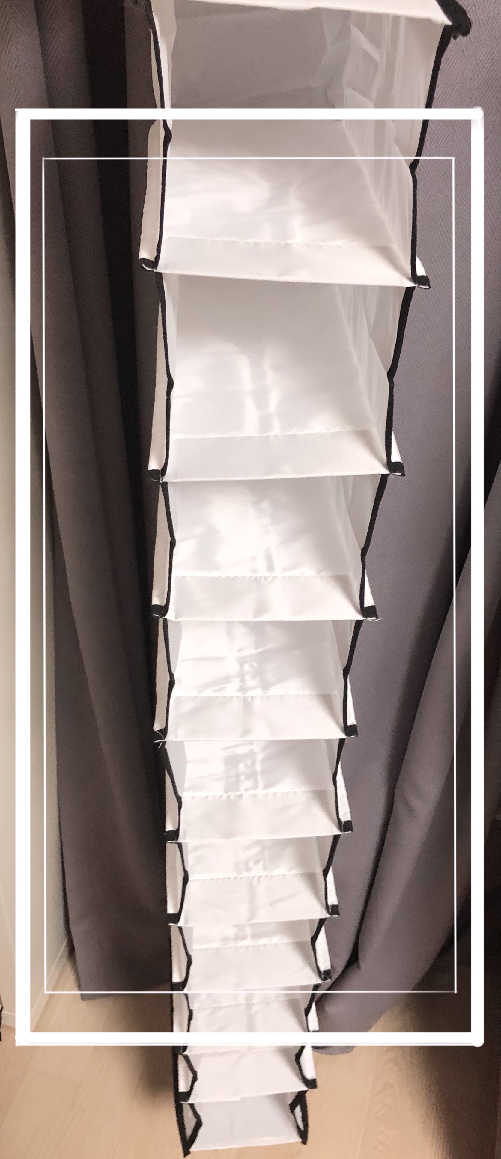 기본적으로 속옷 수납 또는 가벼운 공간 활용에 가깝기때문에 속옷, 겉옷 등과 같은 부피가 작고 무게가 적은 물건 외의 적재를 하게 되면 수납함 자체가 찢어지거나 고정이 풀려 고정 스티커가 떨어져 버릴 수 있어요.