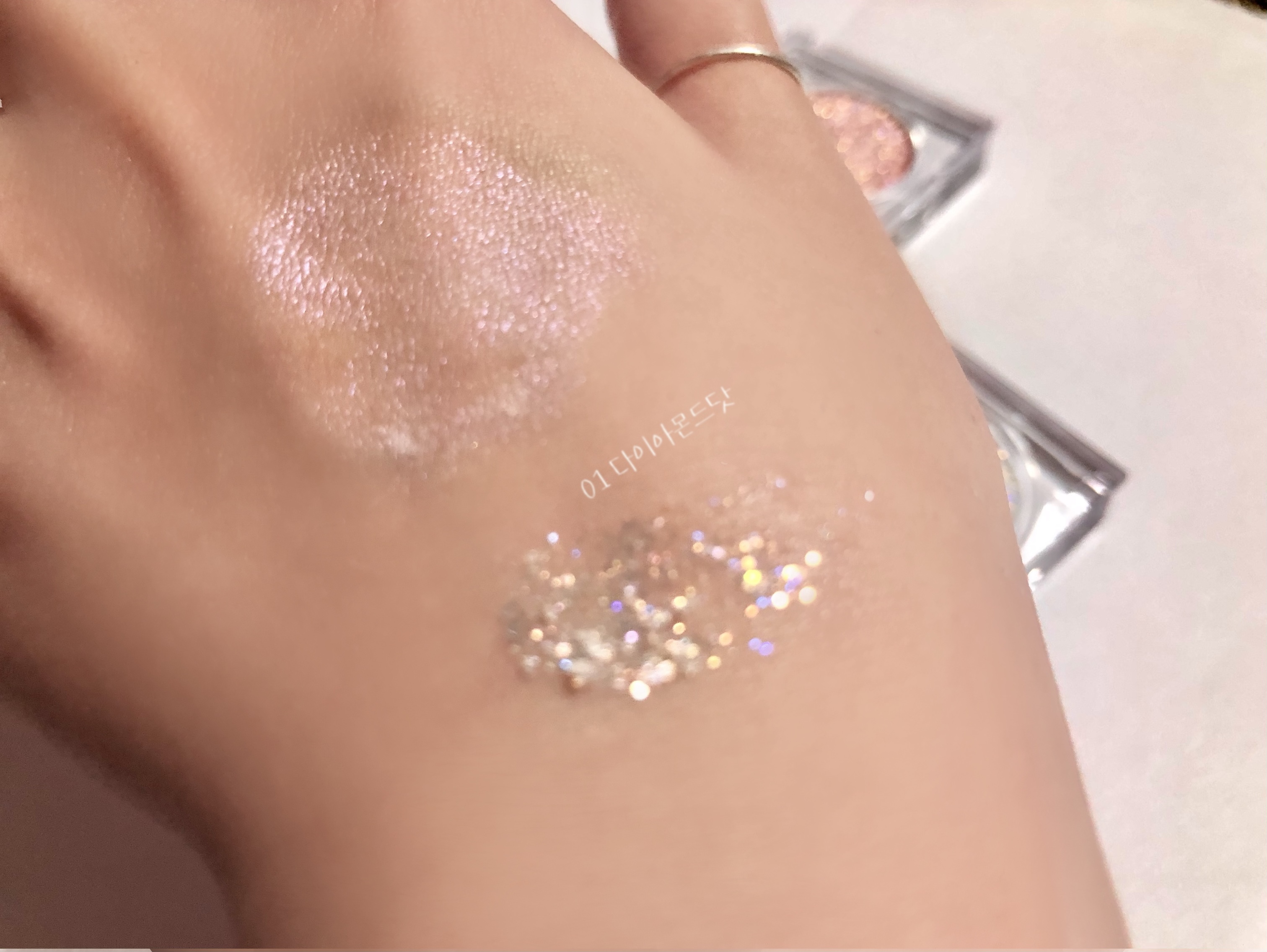 그저 맨살에 또는 매트한 섀도우 위에 올렸다가는 어느 순간 순식간에 사라질 지도 몰라요.