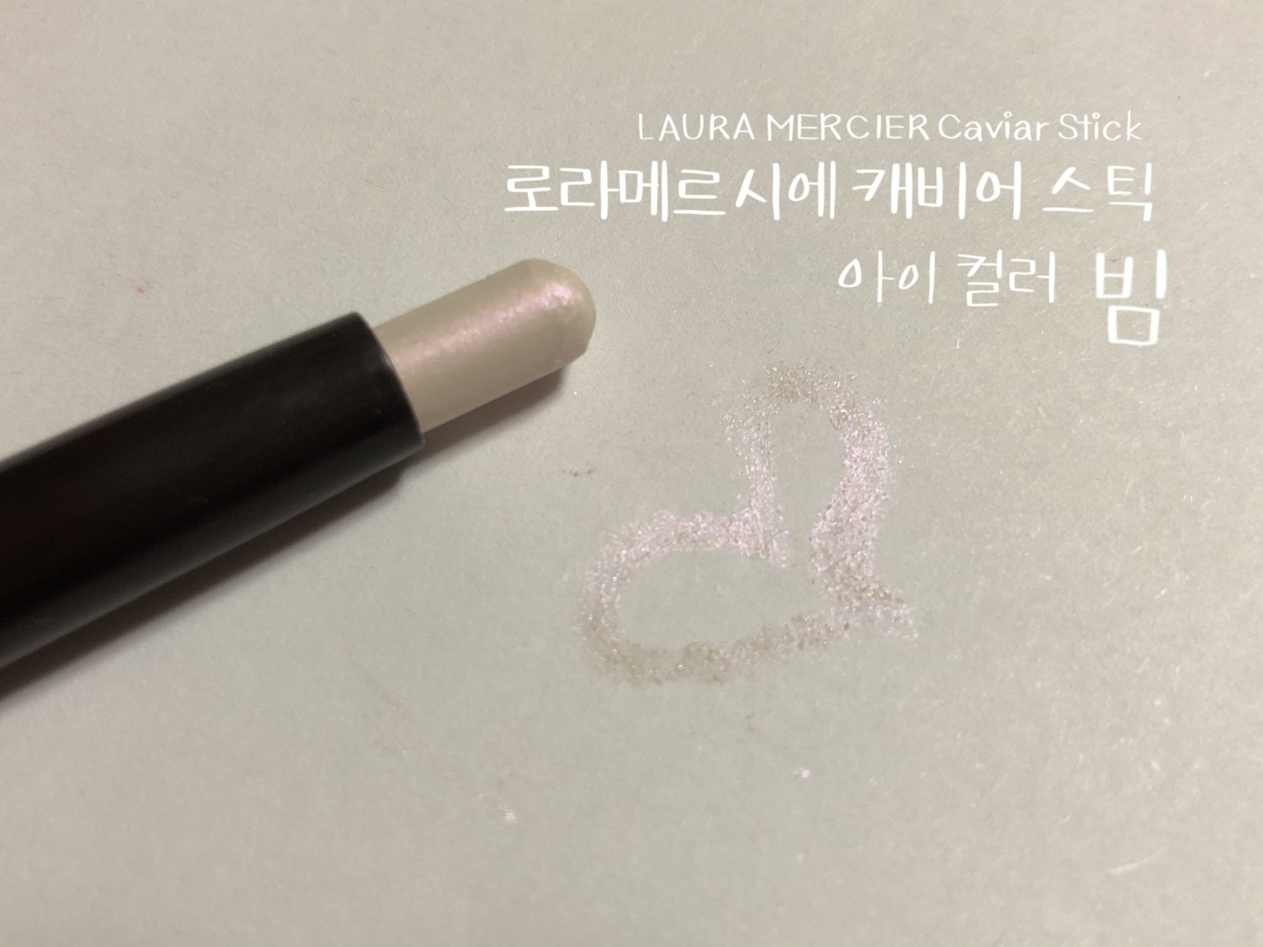 로라메르시에 캐비어 스틱 캐시미어가 나왔을 때 함께 구매했던 스틱 아이 컬러빔이에요. 펄감보다 쉬머하게 오팔빛이 휘황 찬란한 핑크 화이트 빔 섀도우 입니다.