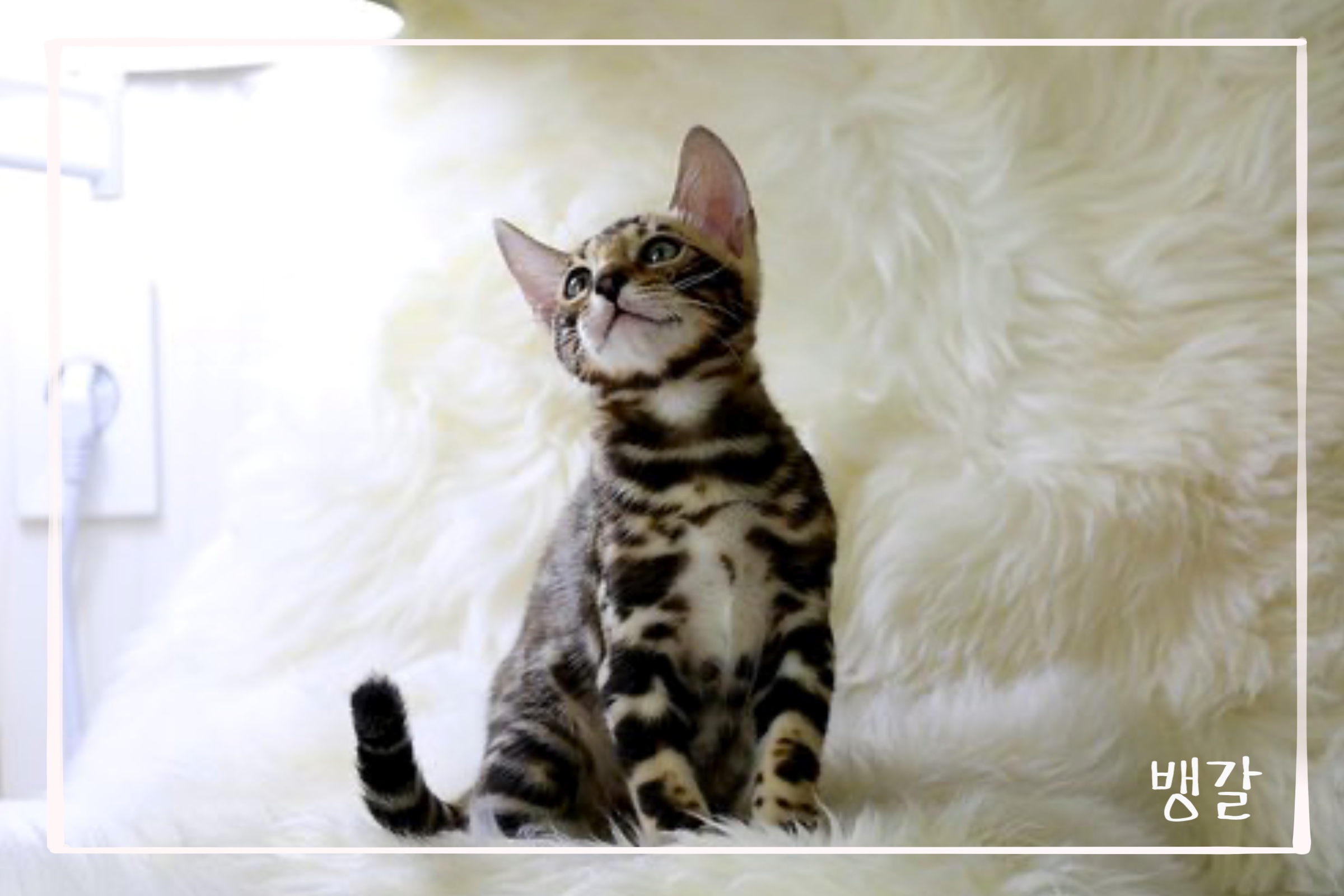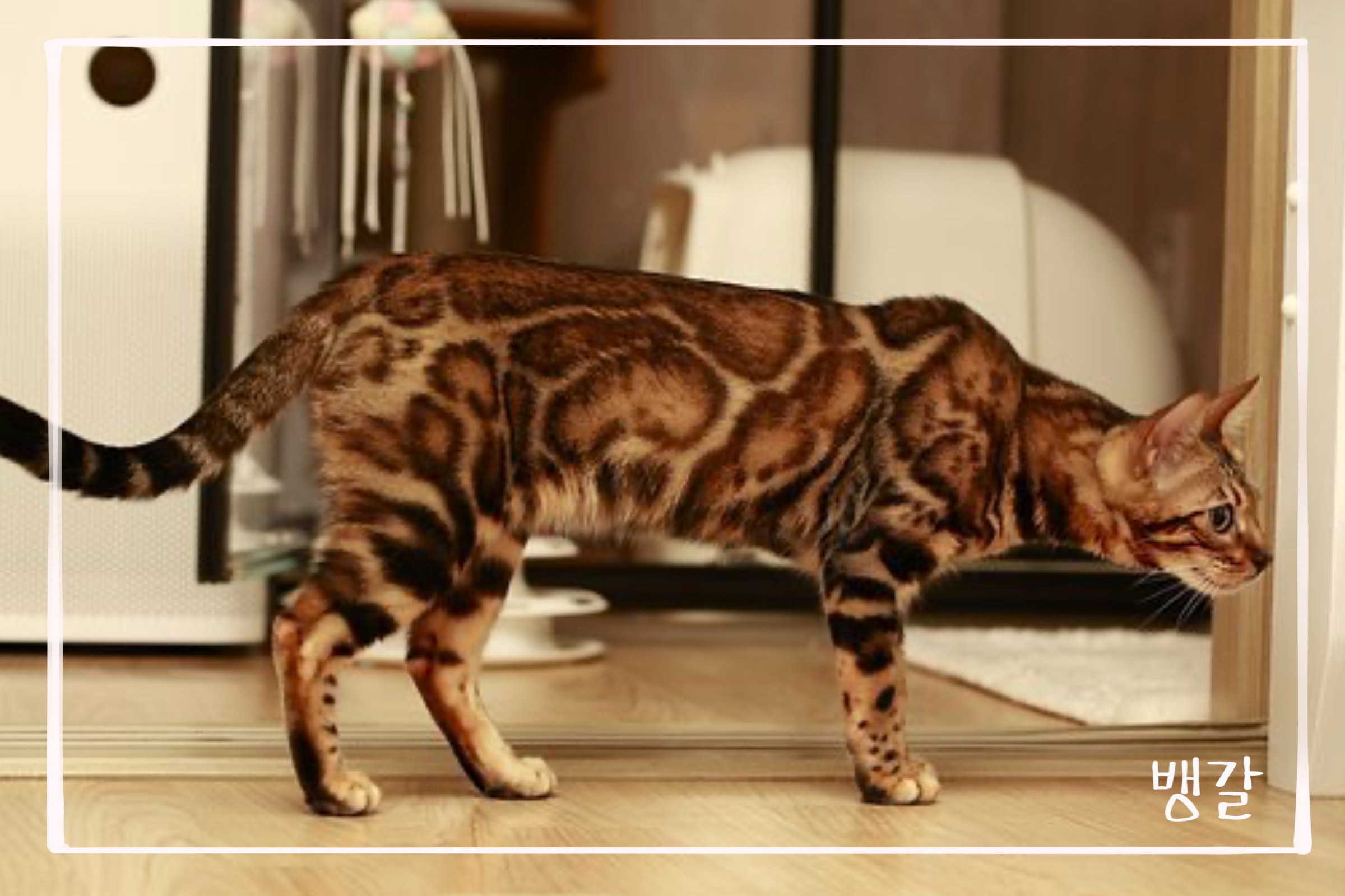 뱅갈(Bengal)은 미국에서 육성된 대형 고양이로, 아시아 표범과 미국 숲고양이를 교배하여 탄생했습니다. 그 결과 깔끔한 동그란 얼굴, 야생적인 무늬와 형태를 가진 고양이로 인기를 얻고 있습니다.