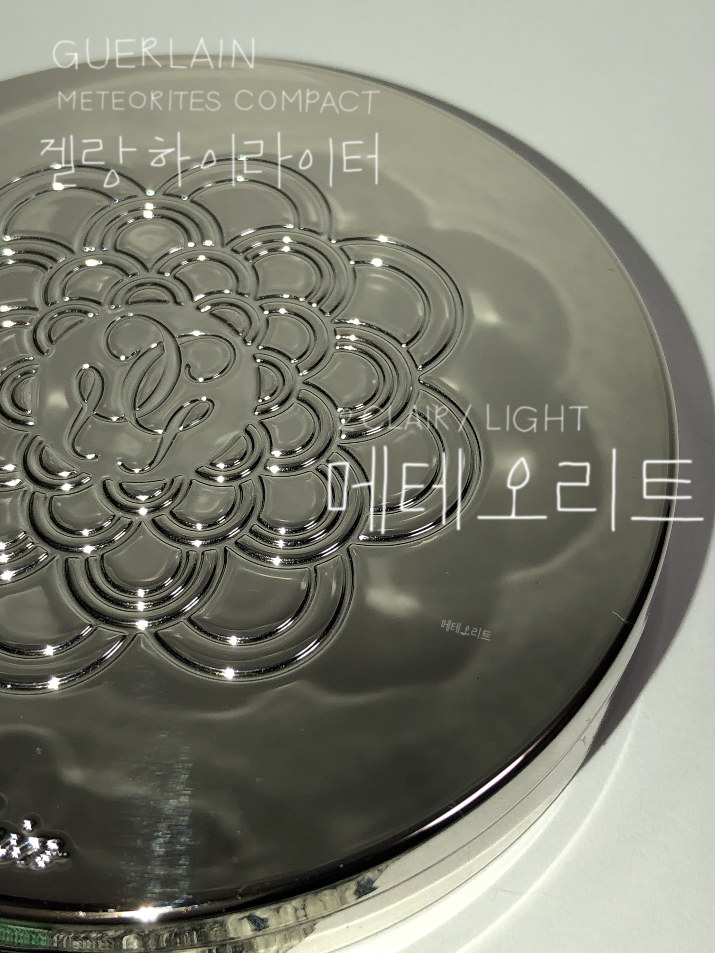 먼저 오늘 소개하는 겔랑 하이라이터 메테오리트는 벌써 구형이 된 제품으로 현재 판매하는 상품과 일부 디자인이 달라요. 내부 팬 디자인과 용량이 다른데 하이라이터 케이스의 외관은 같습니다.