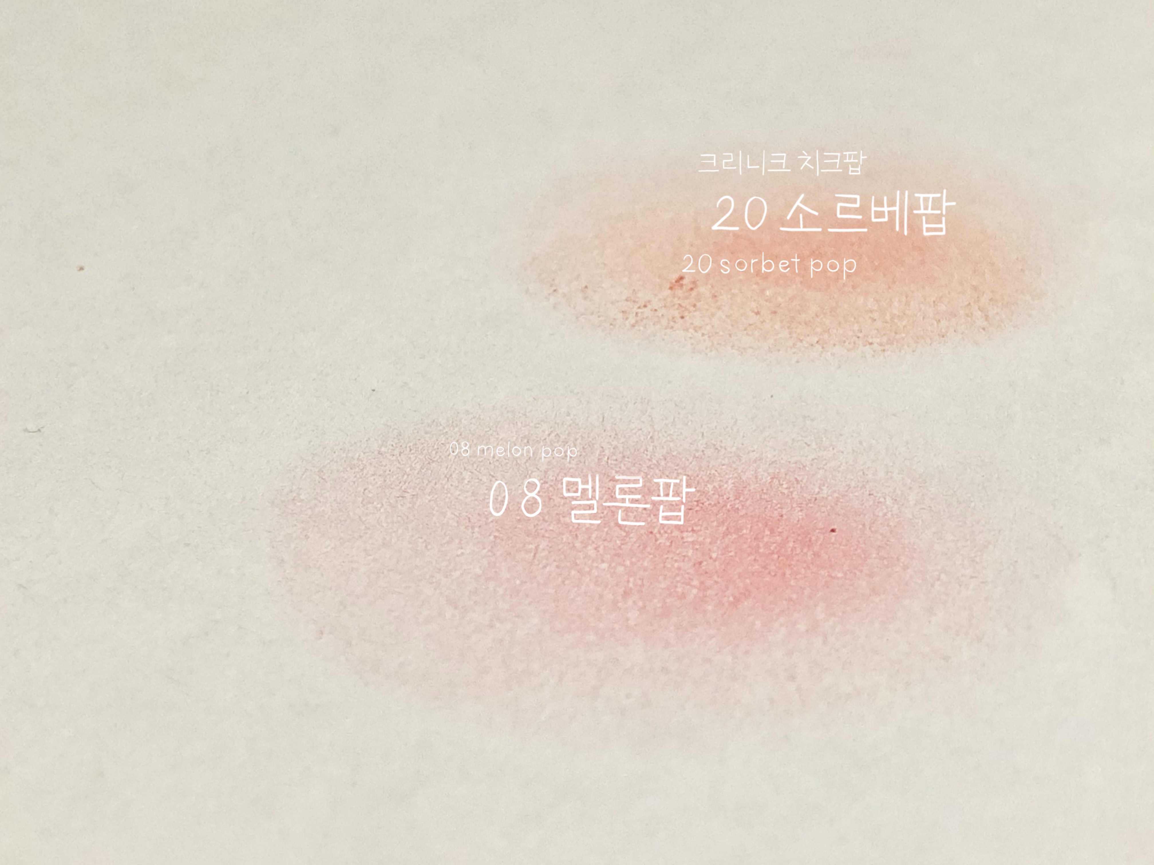 소르베 팝 비교를 위해서 멜론 팝과 함께 대치해 발색해보았어요!