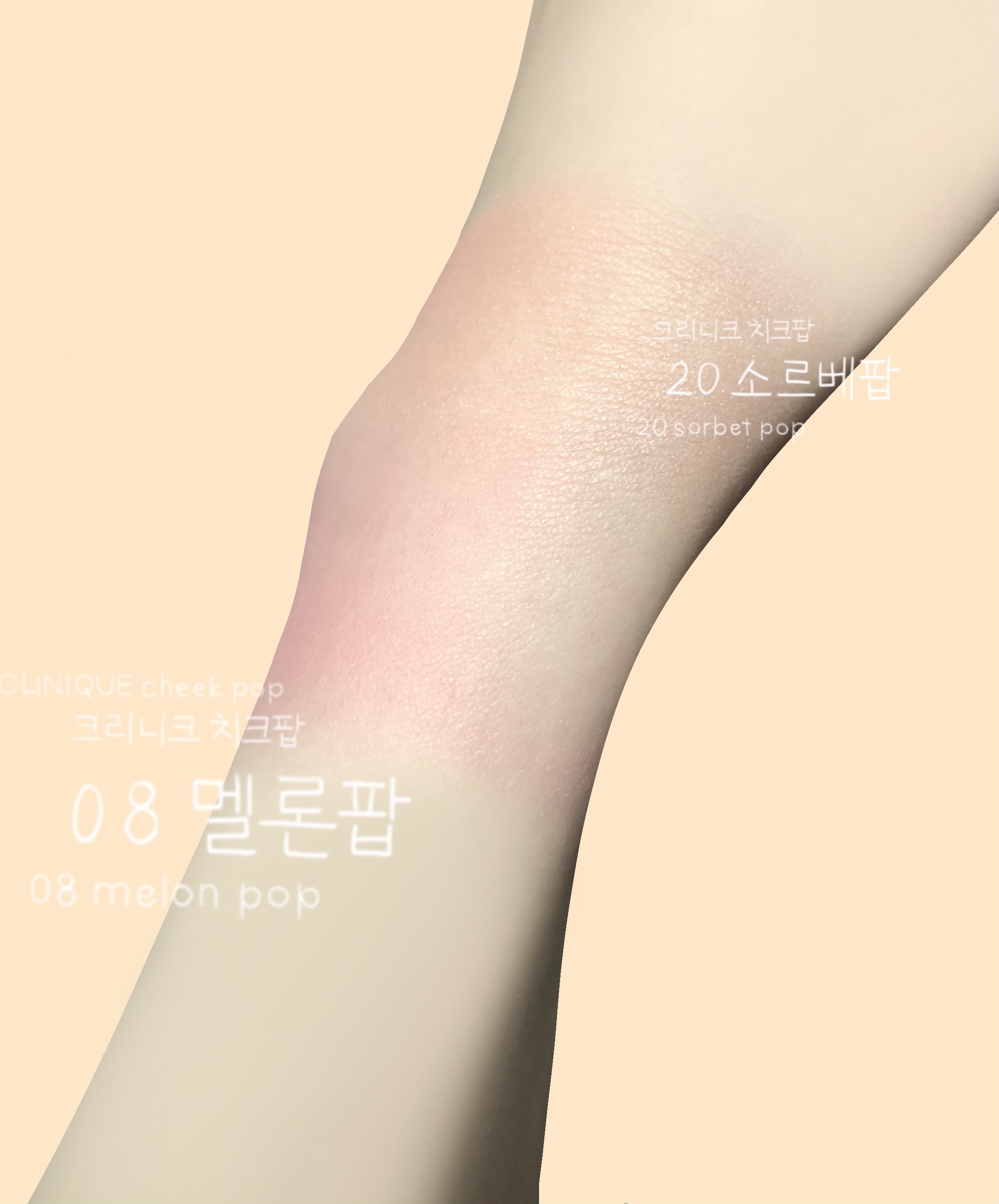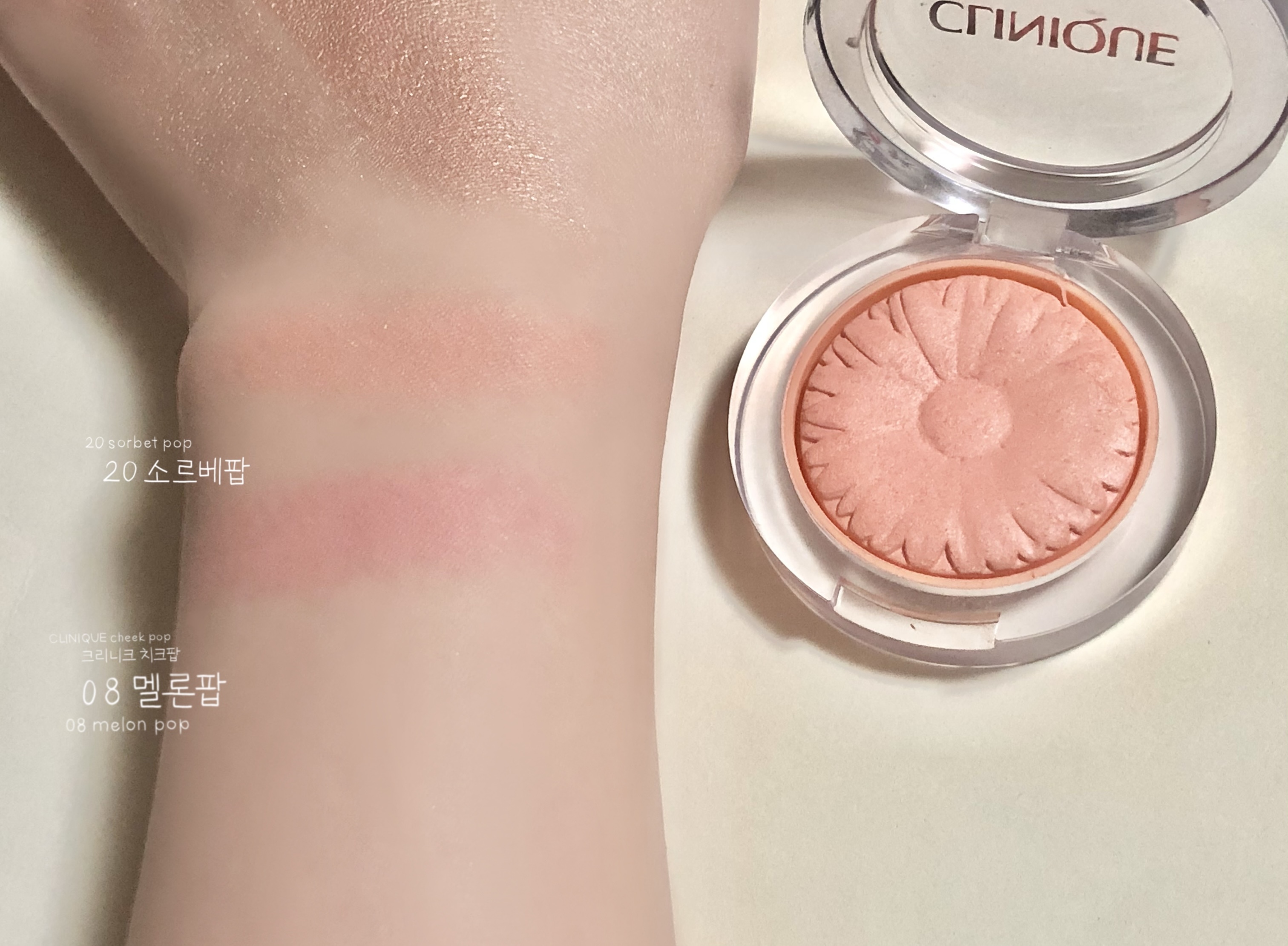 안녕하세요♥오늘은 봄 브라이트는 물론 웜톤, 쿨톤 가리지 않고 모두 모두 행복한 인생샷을 남길 수 있게하는 마력!!, 러블리 치크 메이크업을 할 수 있게 도와주는 사랑스러운 브라이트 피치 컬러 블러셔 크리니크 치크 팝 소르베 팝을 알아보는 시간을! 덤으로, 멜론팝의 발색도 함께♡ 가져보도록 하겠습니다.