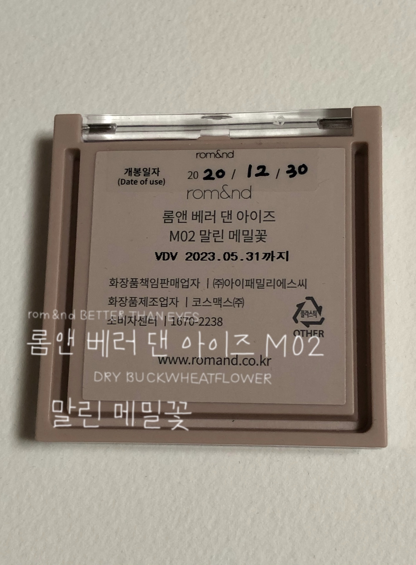 2021.02.28 - [뷰티] - 구매리뷰)발색 리뷰:쿨톤 전용 아이 섀도우 팔레트 롬앤 베러 댄 아이즈 M02 말린 메밀꽃