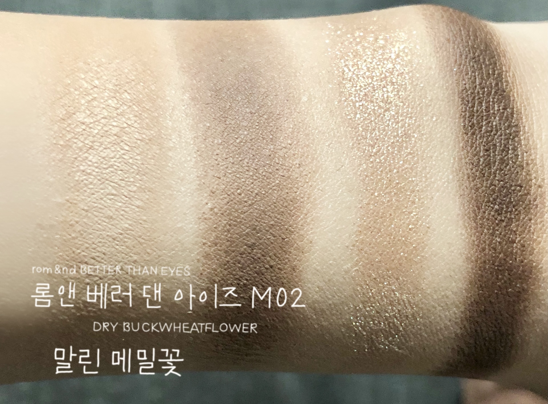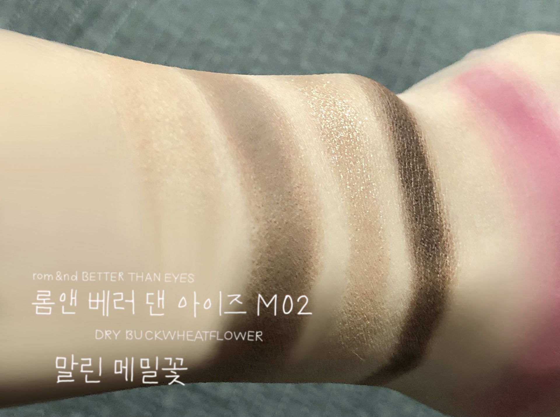 발색 리뷰) 쿨톤 아이 섀도우 팔레트 : 롬앤 베러 댄 아이즈 M02 말린 메밀꽃