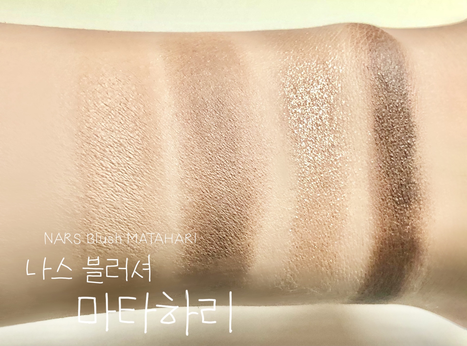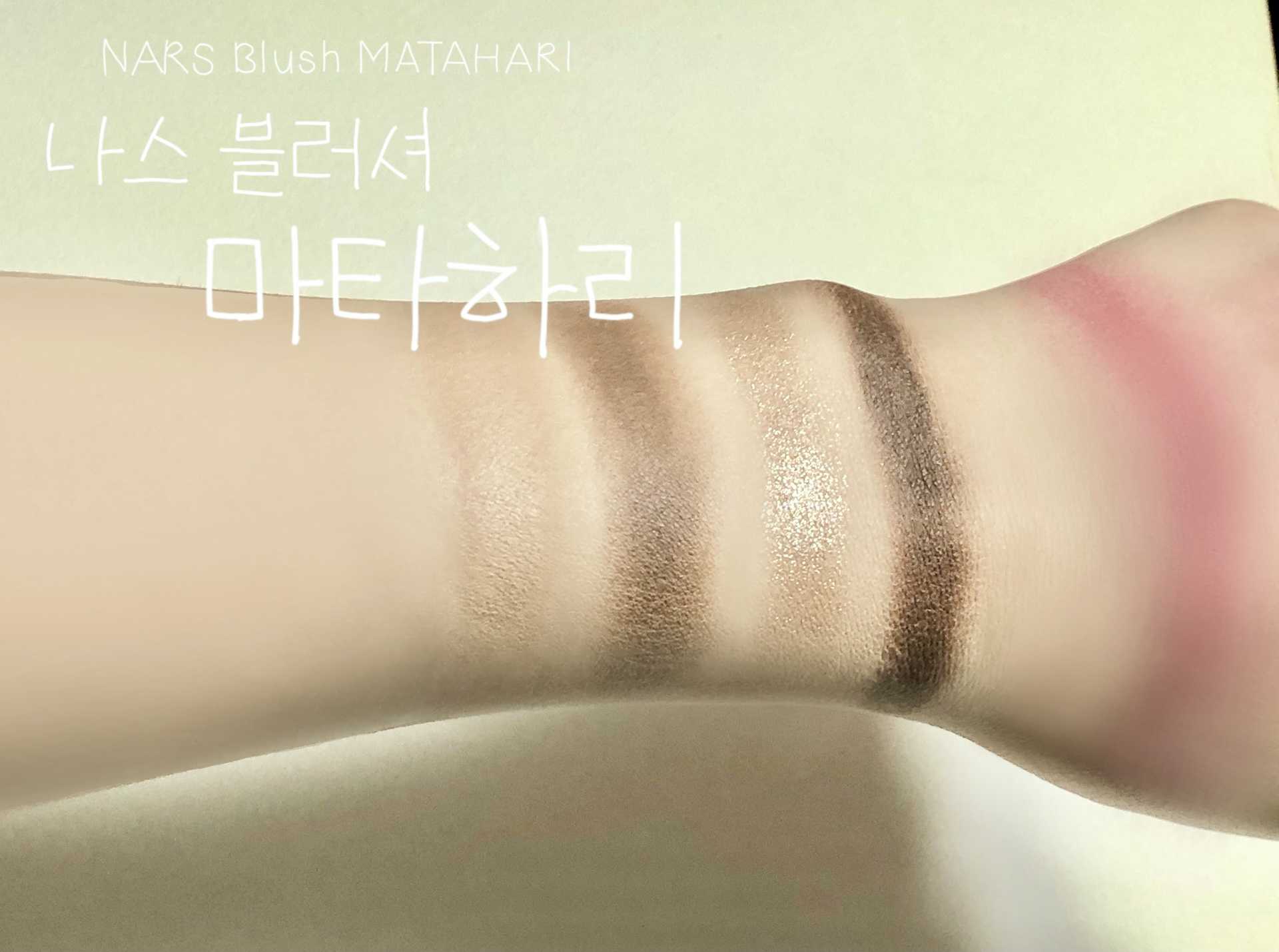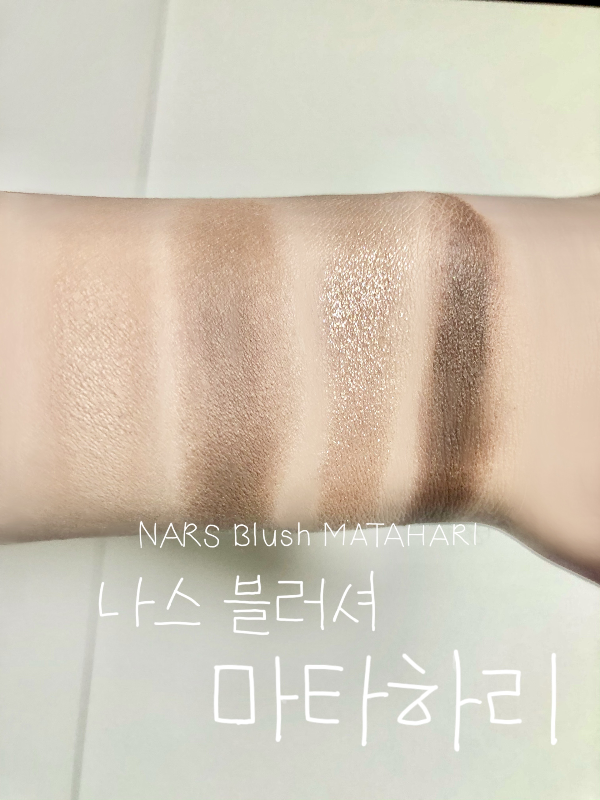 실제 발색에서는 펄에 기본 베이스 색상이 회기 있는 브라운으로 보이지만 저 발색샷을 잘 보이게 찍기 위해서 대여섯 번 이상을 문질렀어요. 그래서 저렇게 베이스색상이 진해 보이는 것일 뿐 실제 발색은 투명 베이스에 펄이 가득하다고 보면 됩니다. ♥