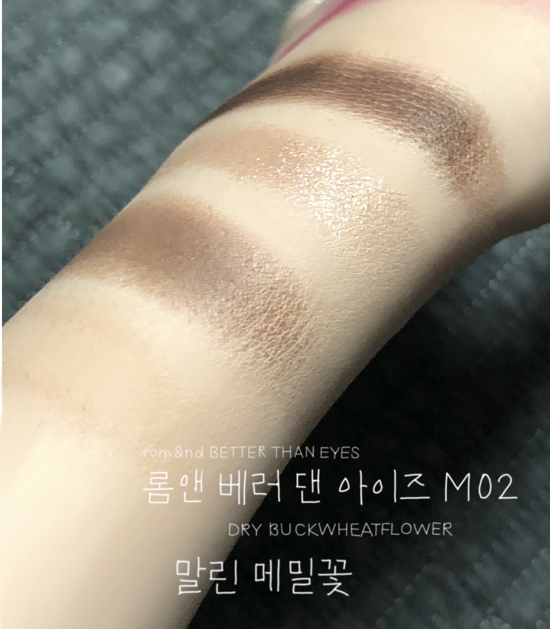 롬앤 베러 댄 아이즈 M02 말린 메밀꽃 rom&nd BETTER THAN EYES DRY BUCKWHEATFLOWER 가격 : 14,000원 가격 : 16,000원 용량 : 6.5g 쿨톤 사이에서는 명성이 자자한 웬만하면 다들 알고 있는 쿨톤 전용 섀도우..