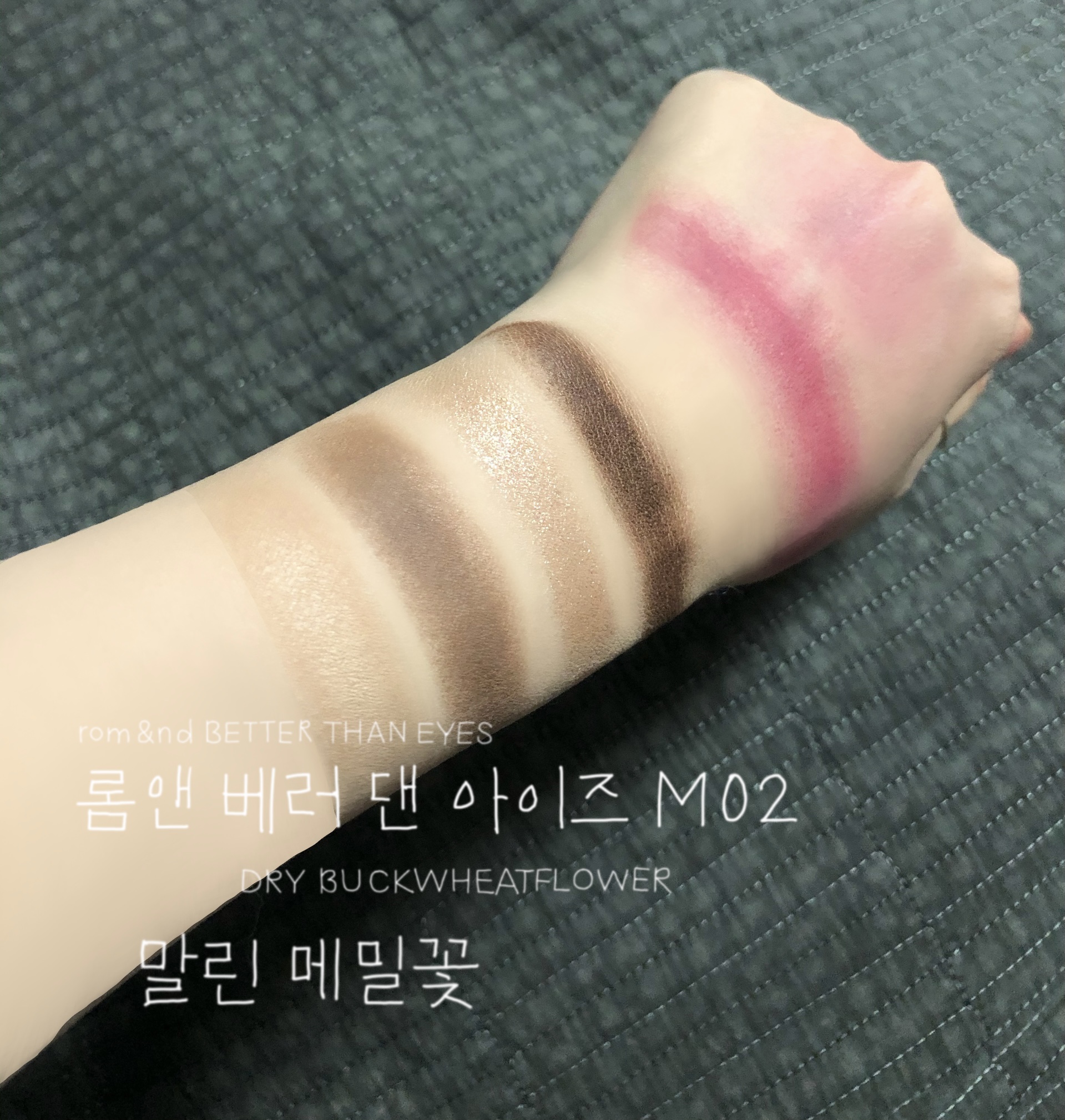 발색 리뷰) 쿨톤 아이 섀도우 팔레트 : 롬앤 베러 댄 아이즈 M02 말린 메밀꽃