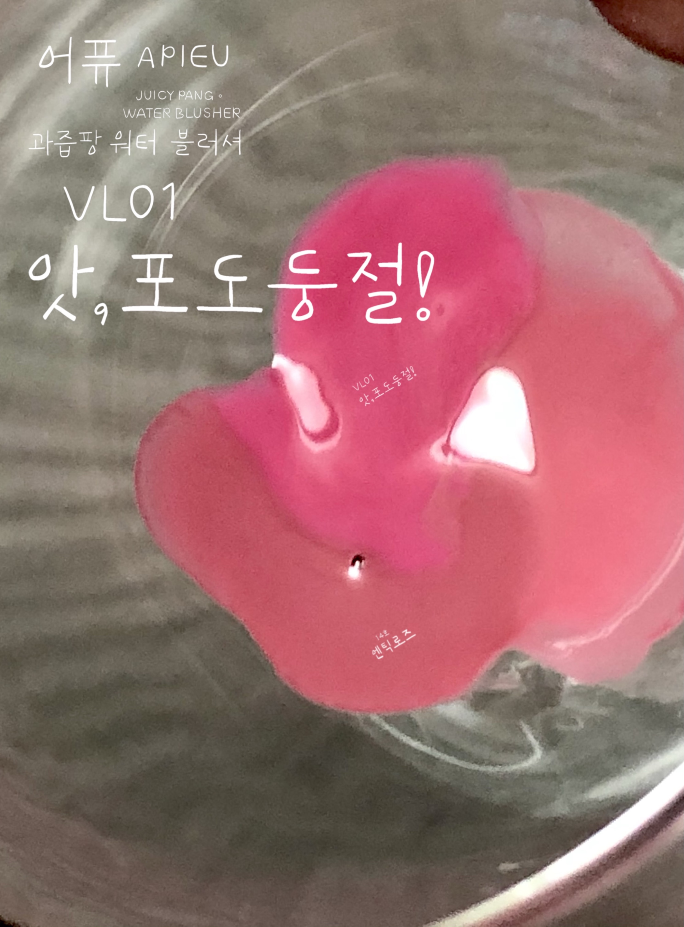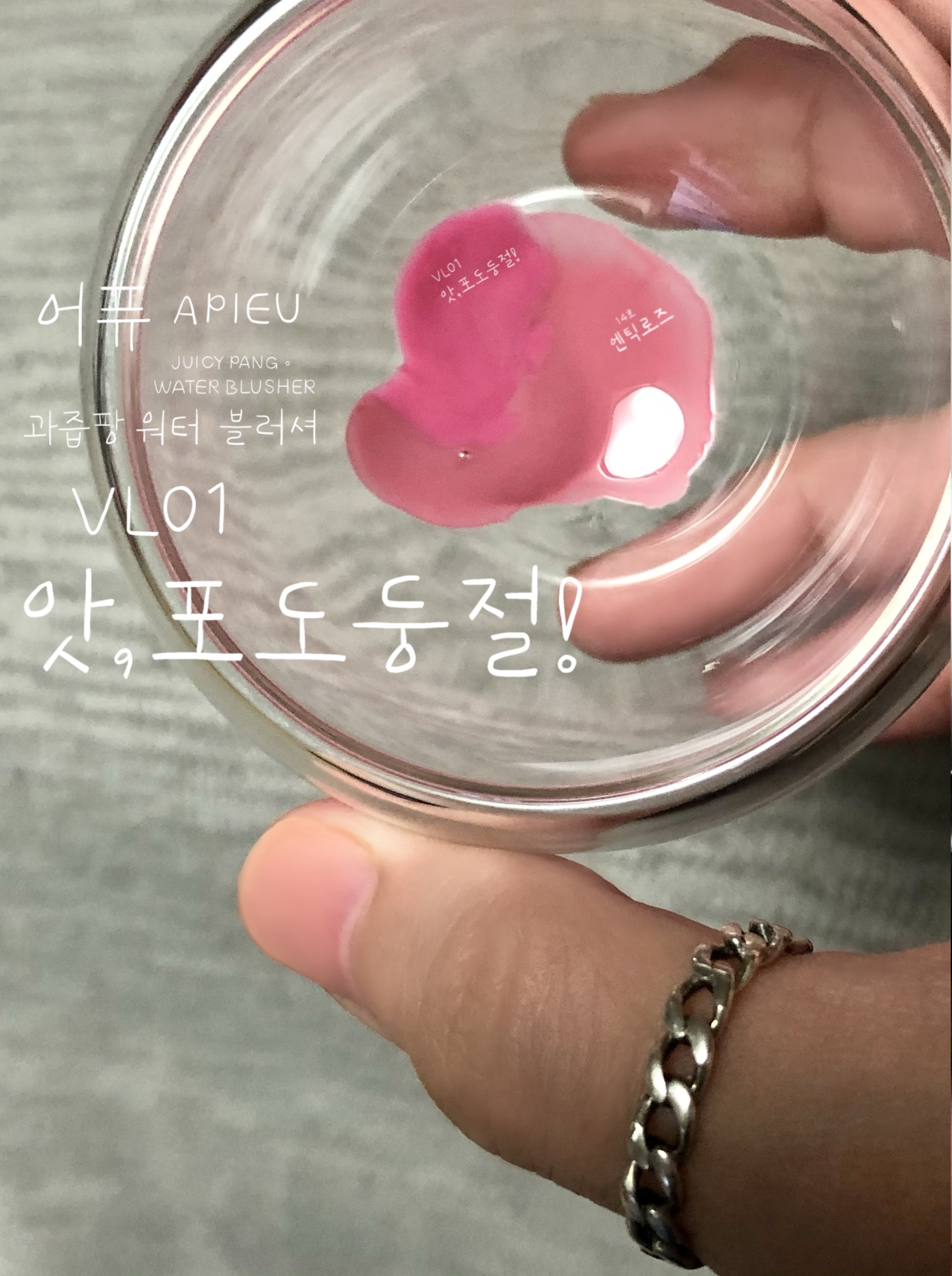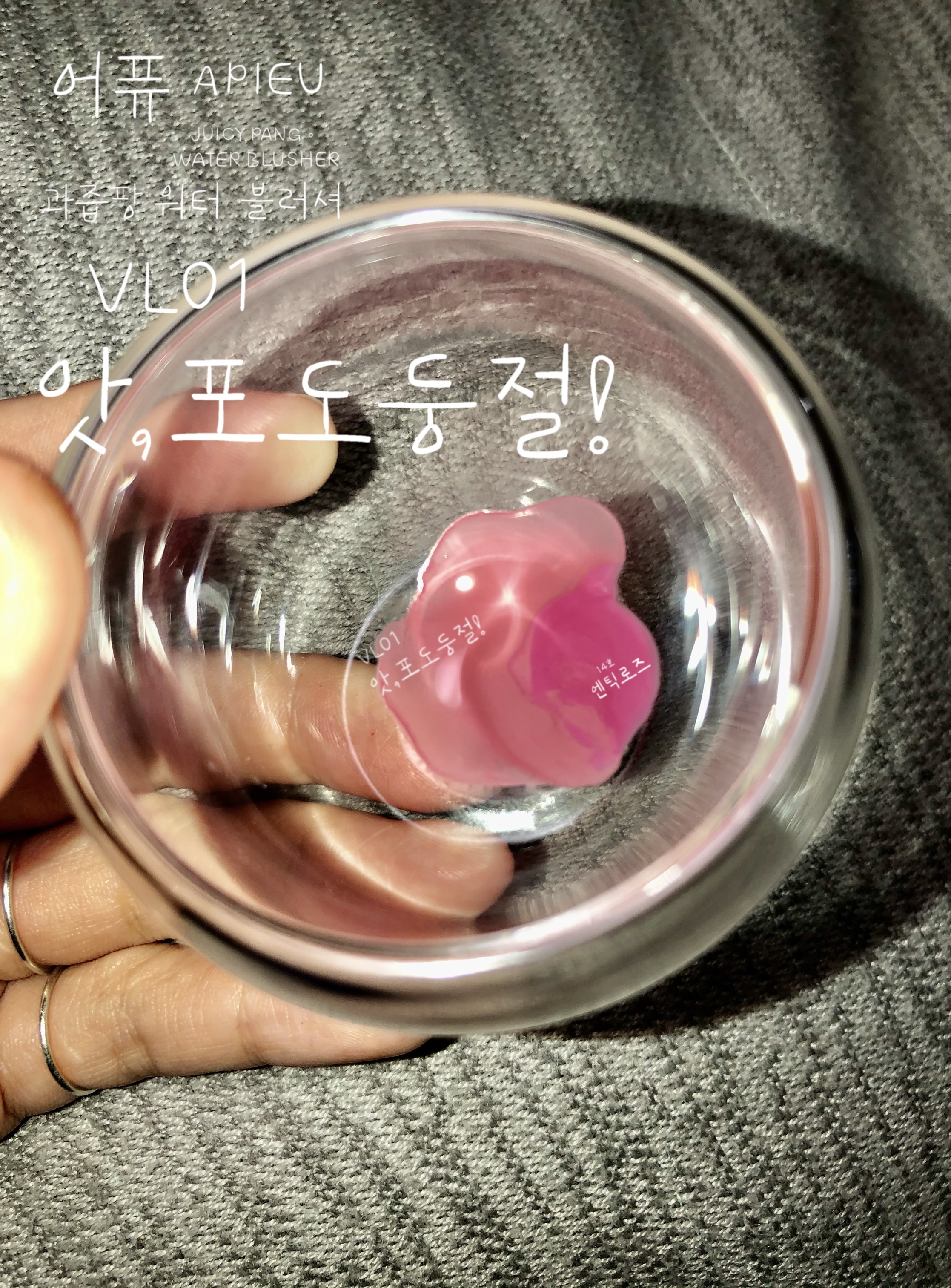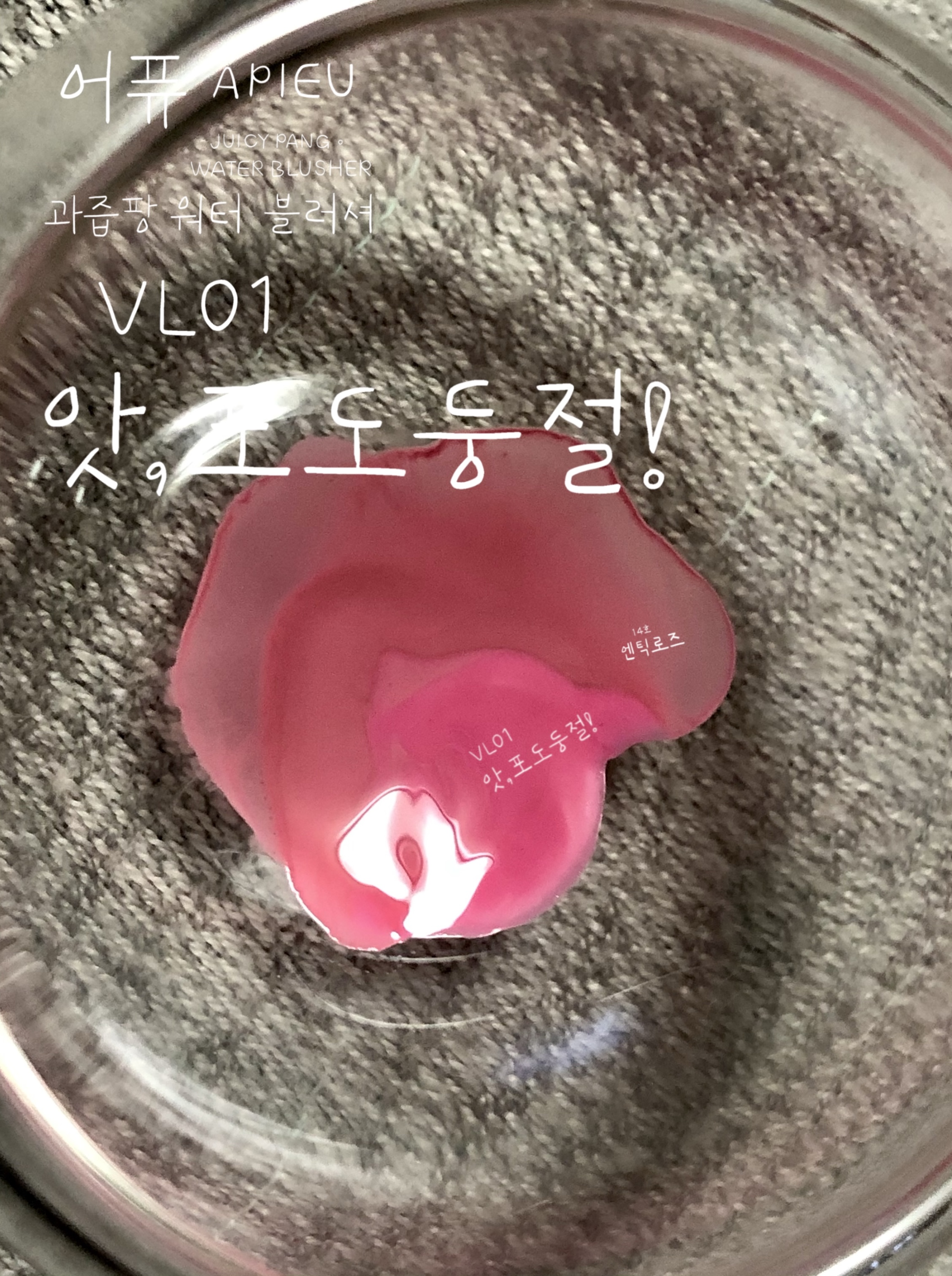 오늘은 촉촉하게 글로시한 메이크업을 좋아하는 분들을 위하여 누구에게나 만만한 간단하게 편하게 바를 수 있는 가성비 좋은 쿨 핑크 블러셔를 하나를 리뷰해볼께요. 바로 어퓨 과즙팡 워터 블러셔 앗! 포도둥절 입니다.