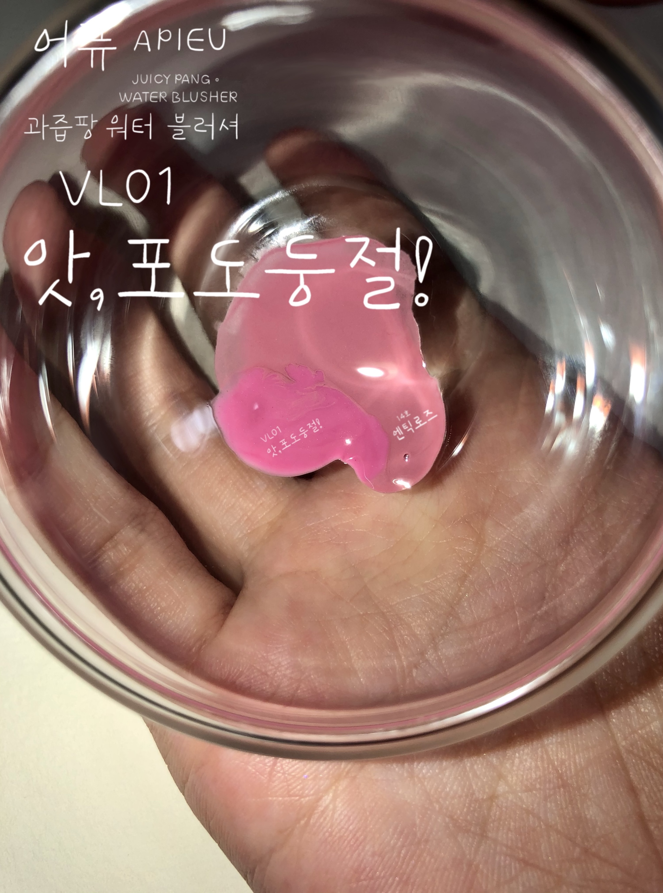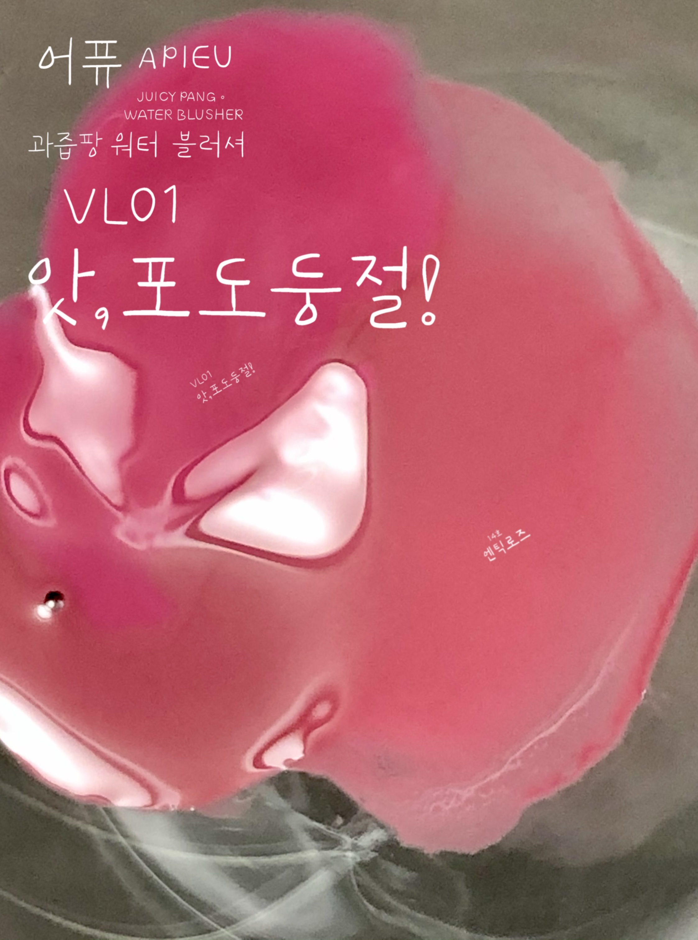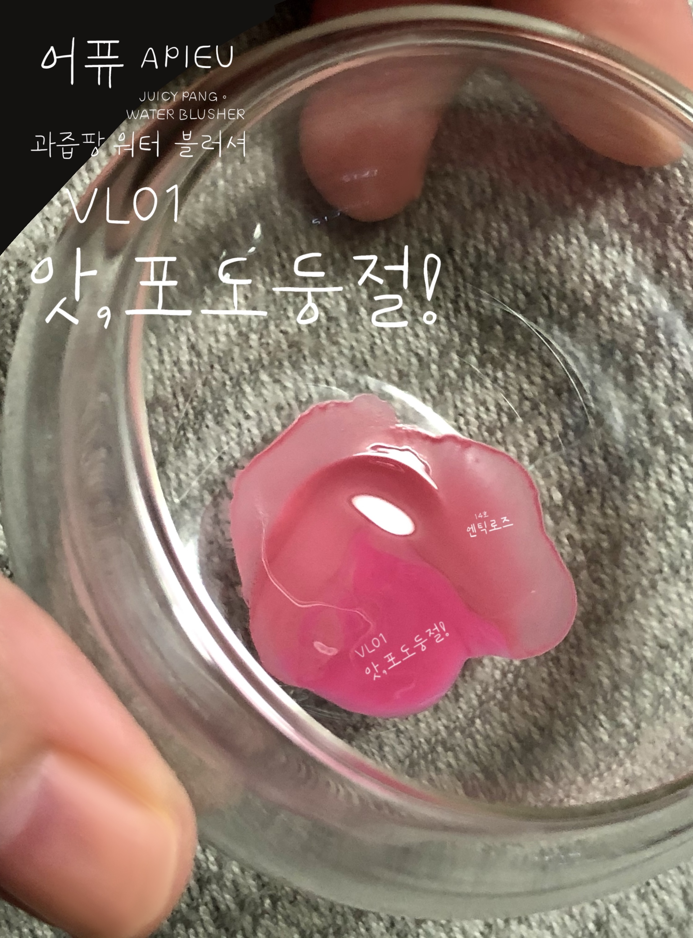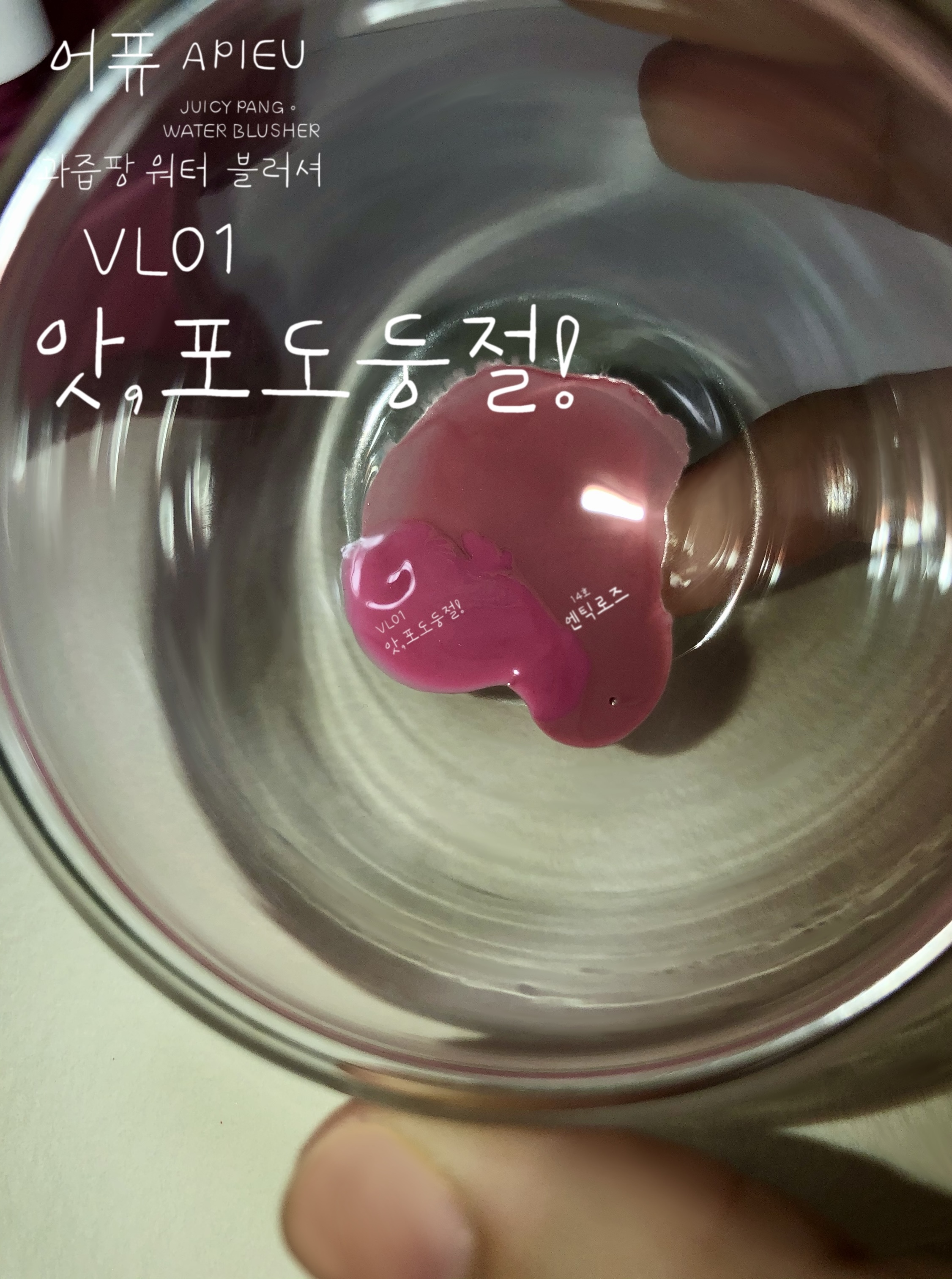 오늘은 촉촉하게 글로시한 메이크업을 좋아하는 분들을 위하여 누구에게나 만만한 간단하게 편하게 바를 수 있는 가성비 좋은 쿨 핑크 블러셔를 하나를 리뷰해볼께요. 바로 어퓨 과즙팡 워터 블러셔 앗! 포도둥절 입니다.