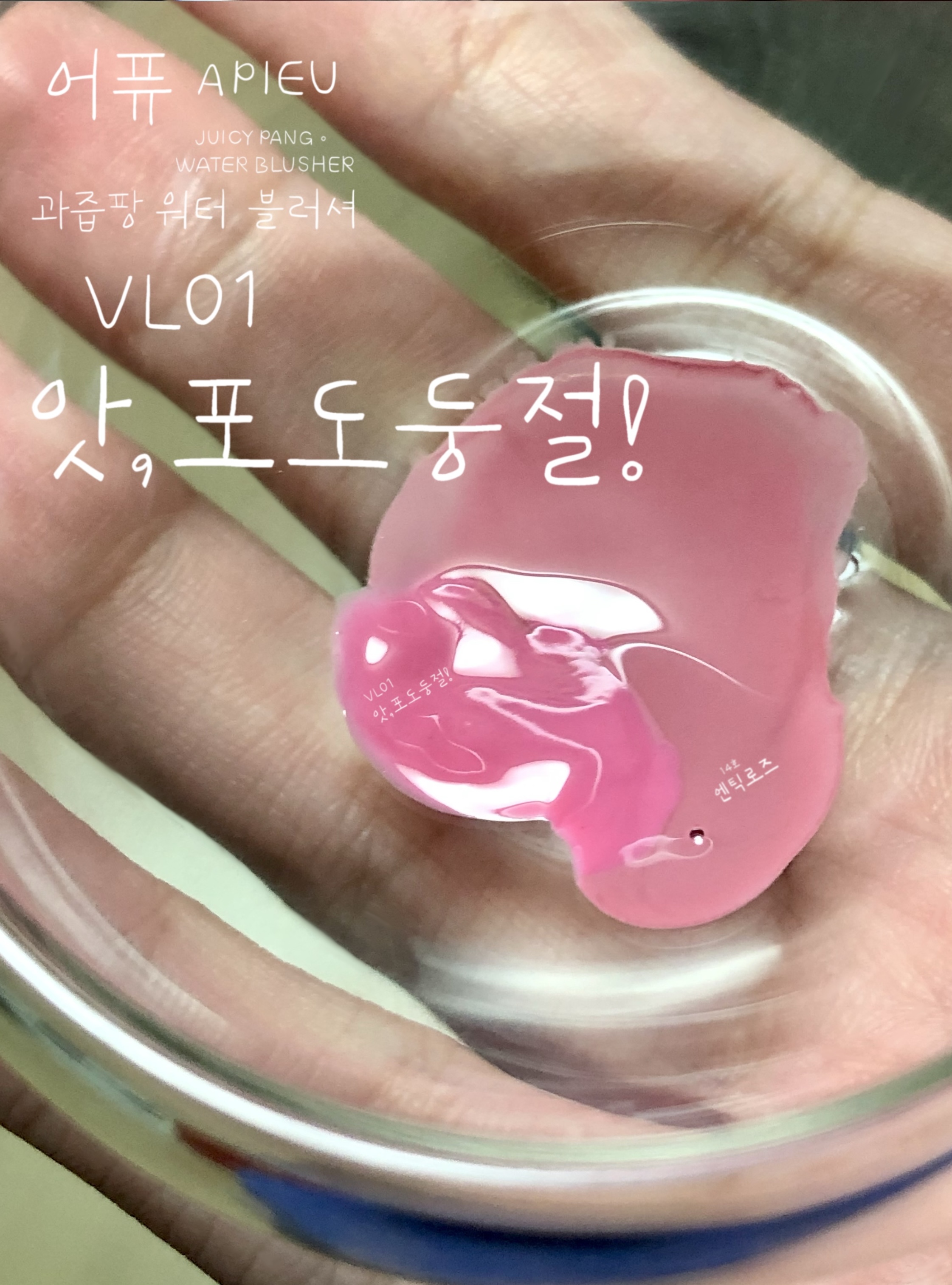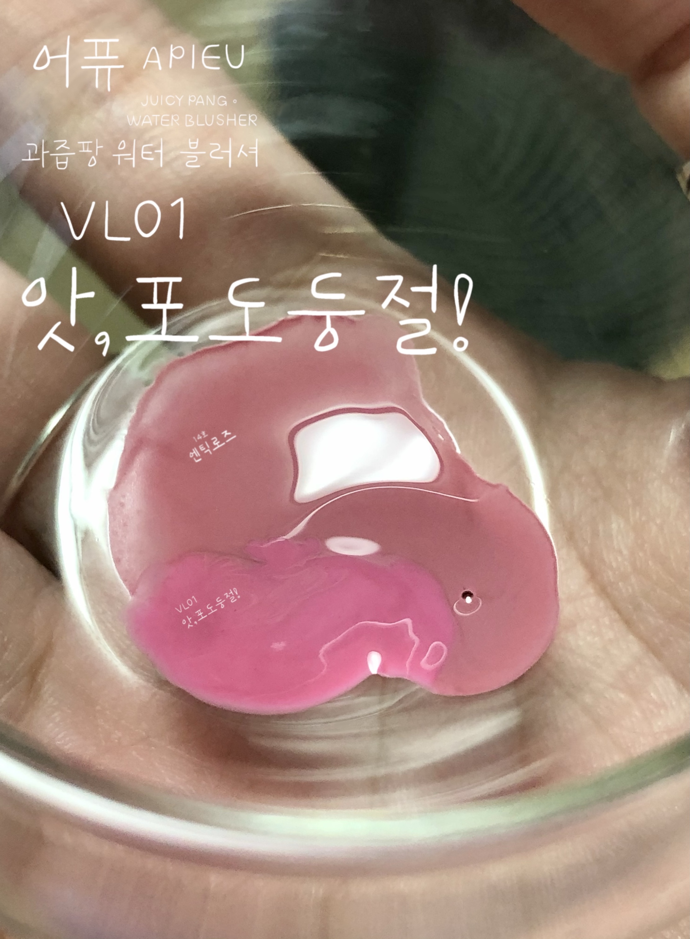 오늘은 촉촉하게 글로시한 메이크업을 좋아하는 분들을 위하여 누구에게나 만만한 간단하게 편하게 바를 수 있는 가성비 좋은 쿨 핑크 블러셔를 하나를 리뷰해볼께요. 바로 어퓨 과즙팡 워터 블러셔 앗! 포도둥절 입니다.