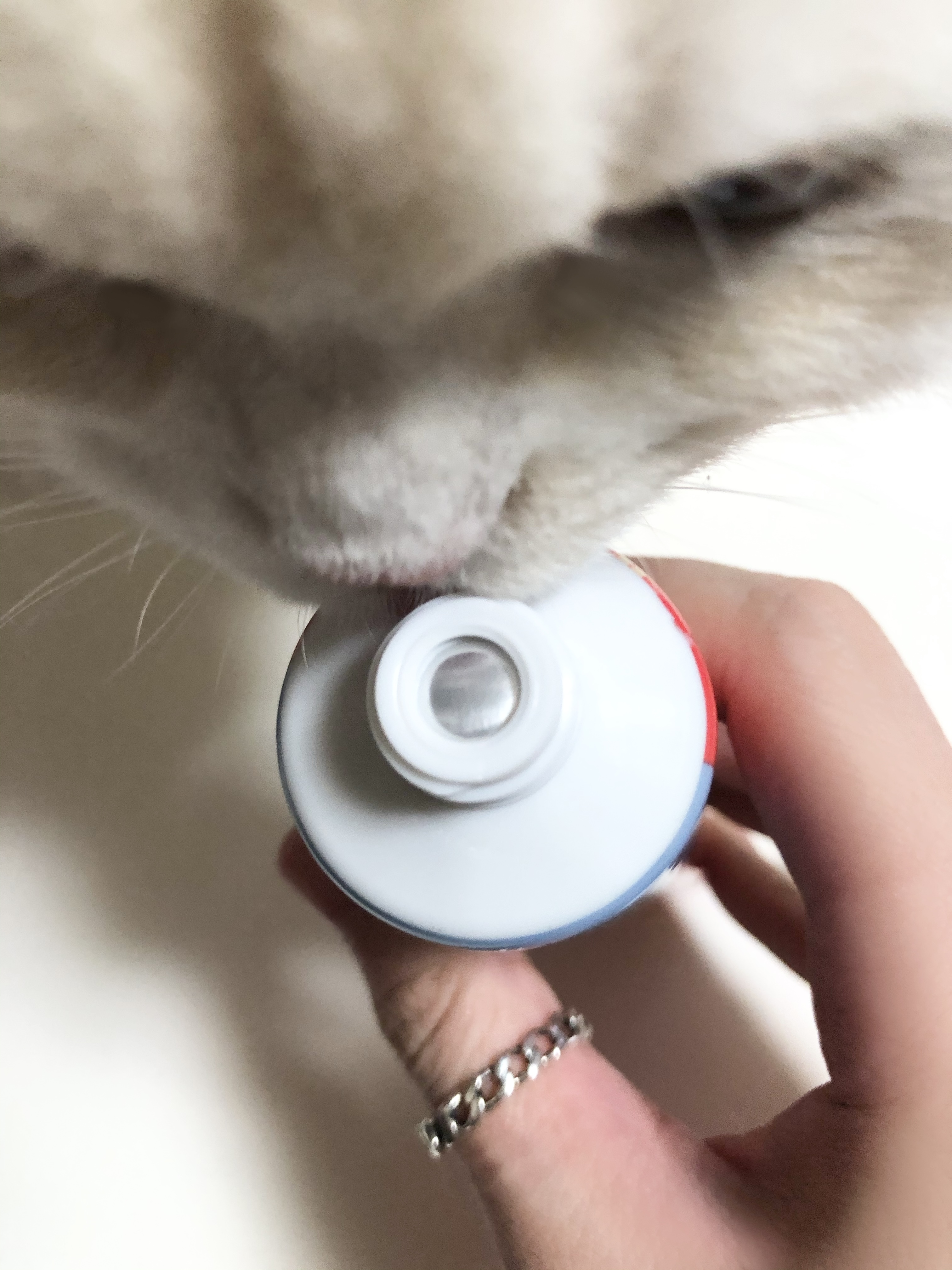 한 번에 힘을 너무 많이 주면 입구가 너무 크게 뚫려서 고양이에게 튜브채로 급여 시 조금만 눌러도 많은 양이 나와 곤란해질 수 있습니다.