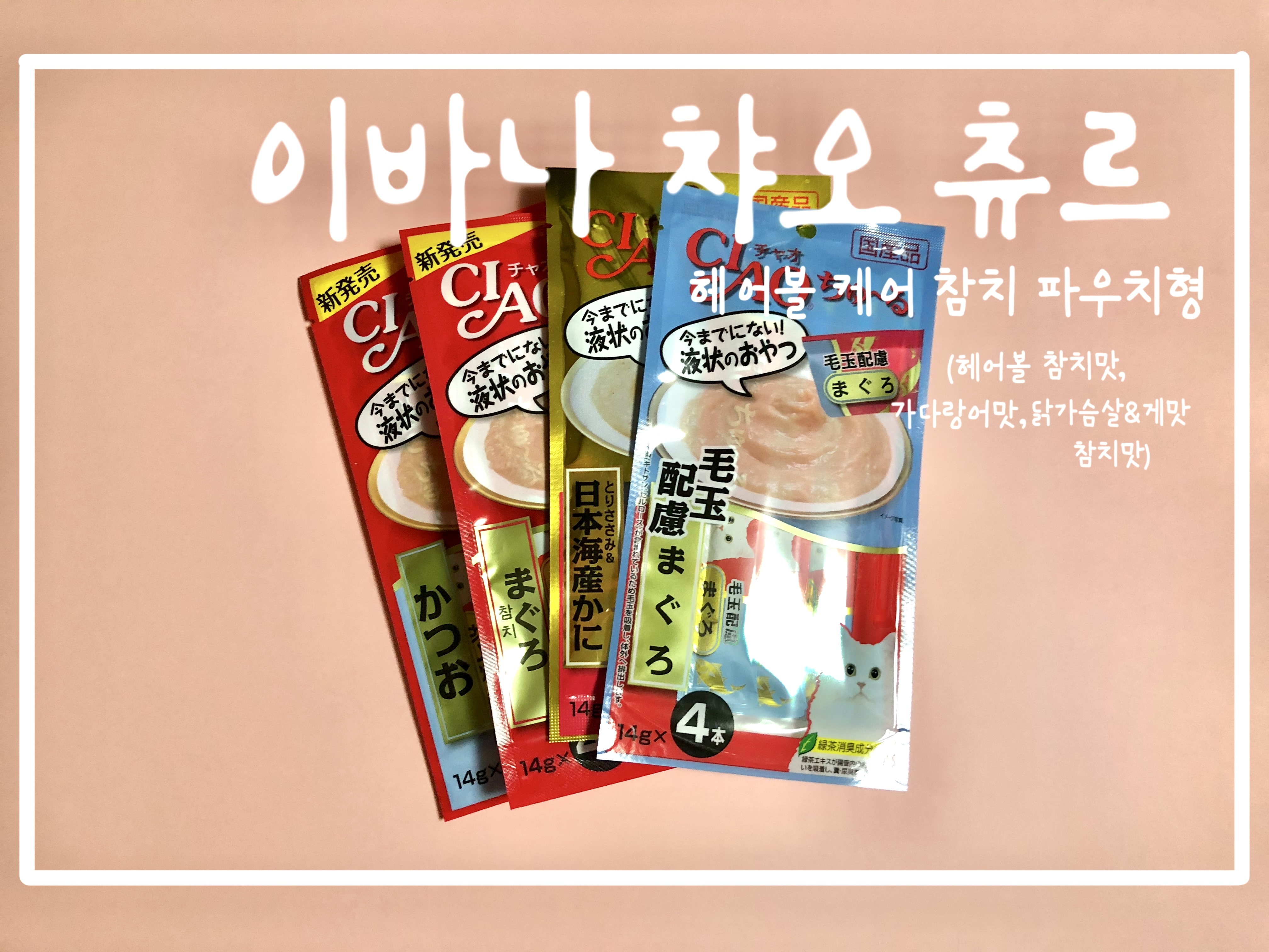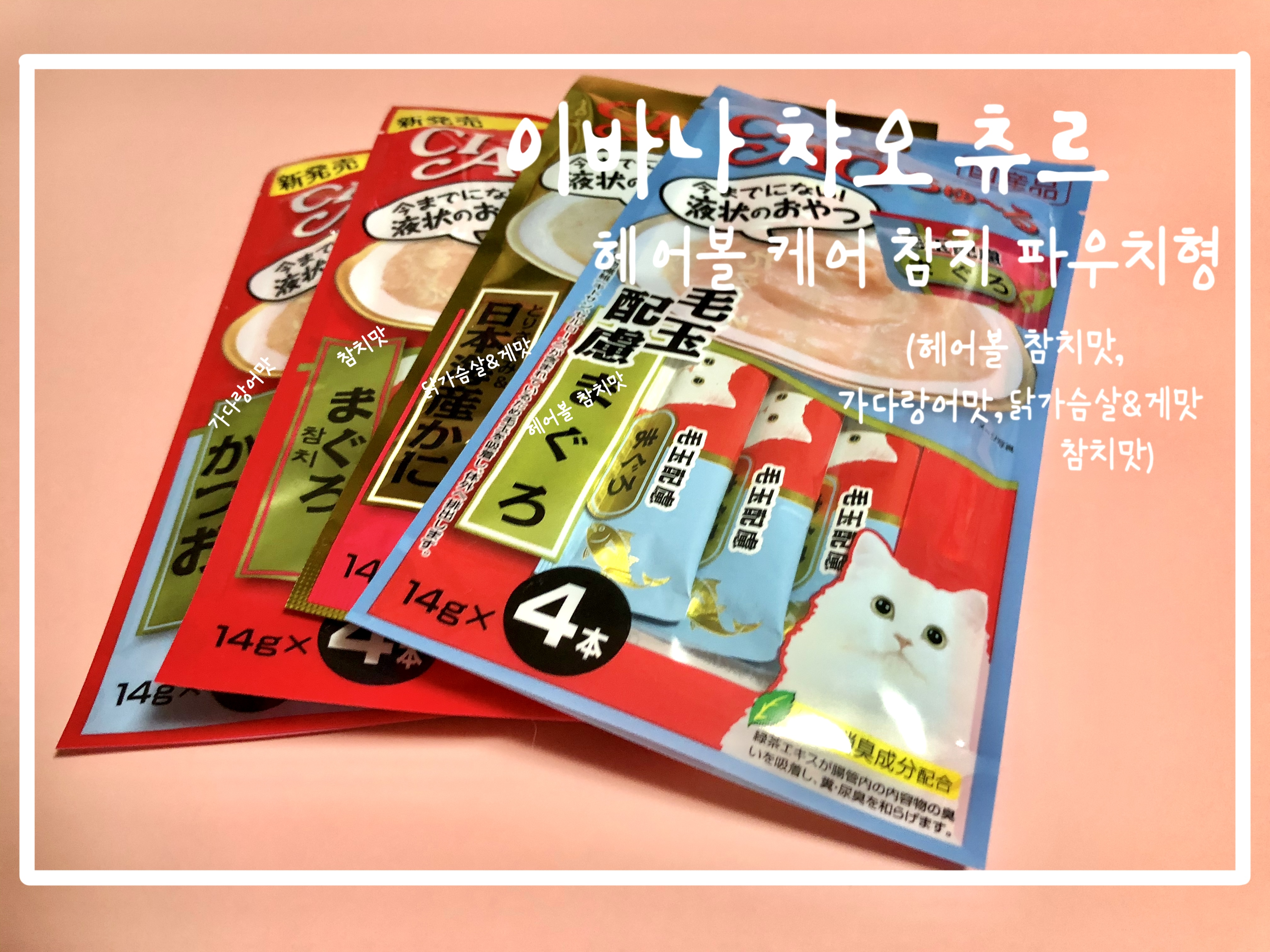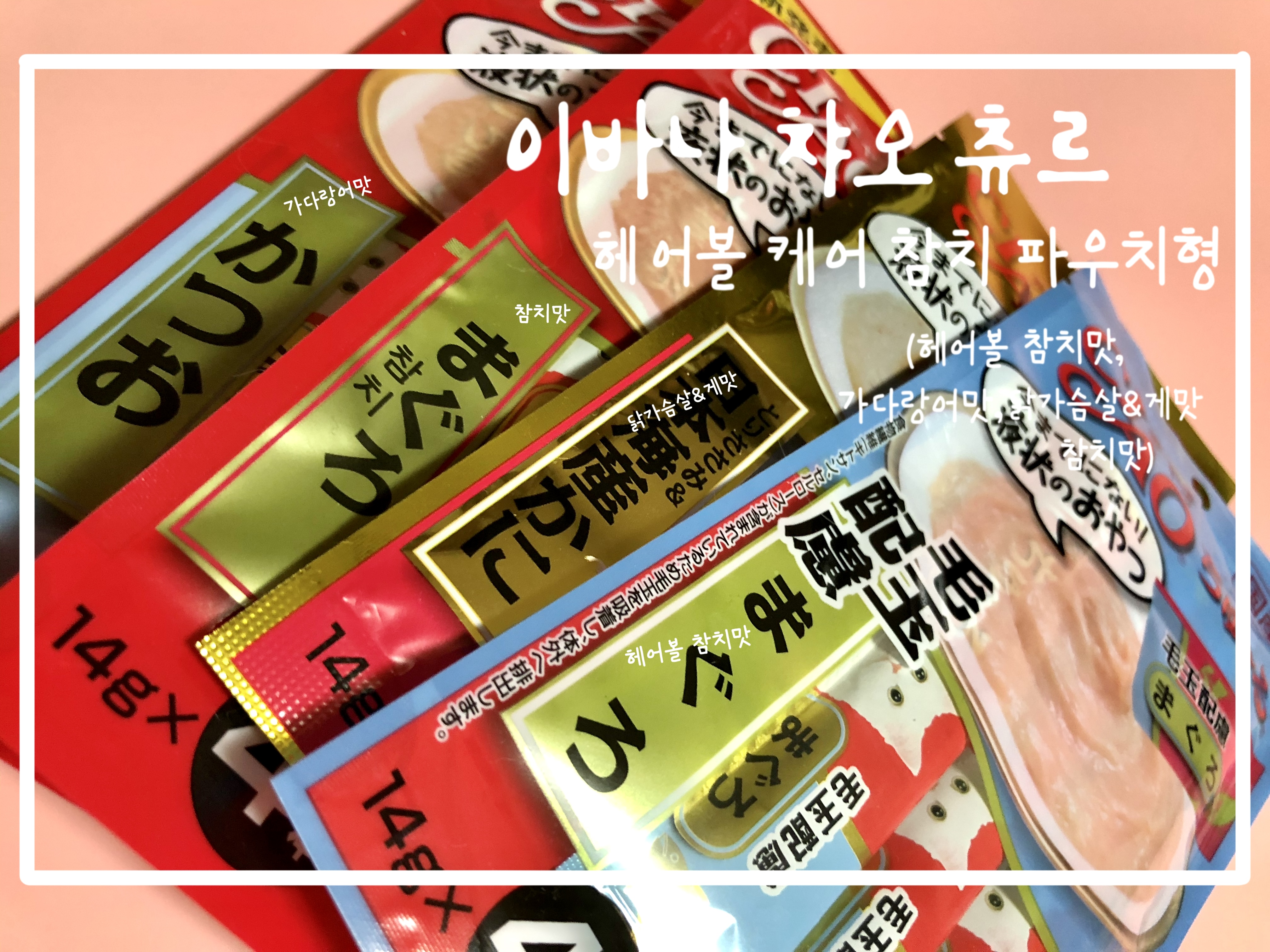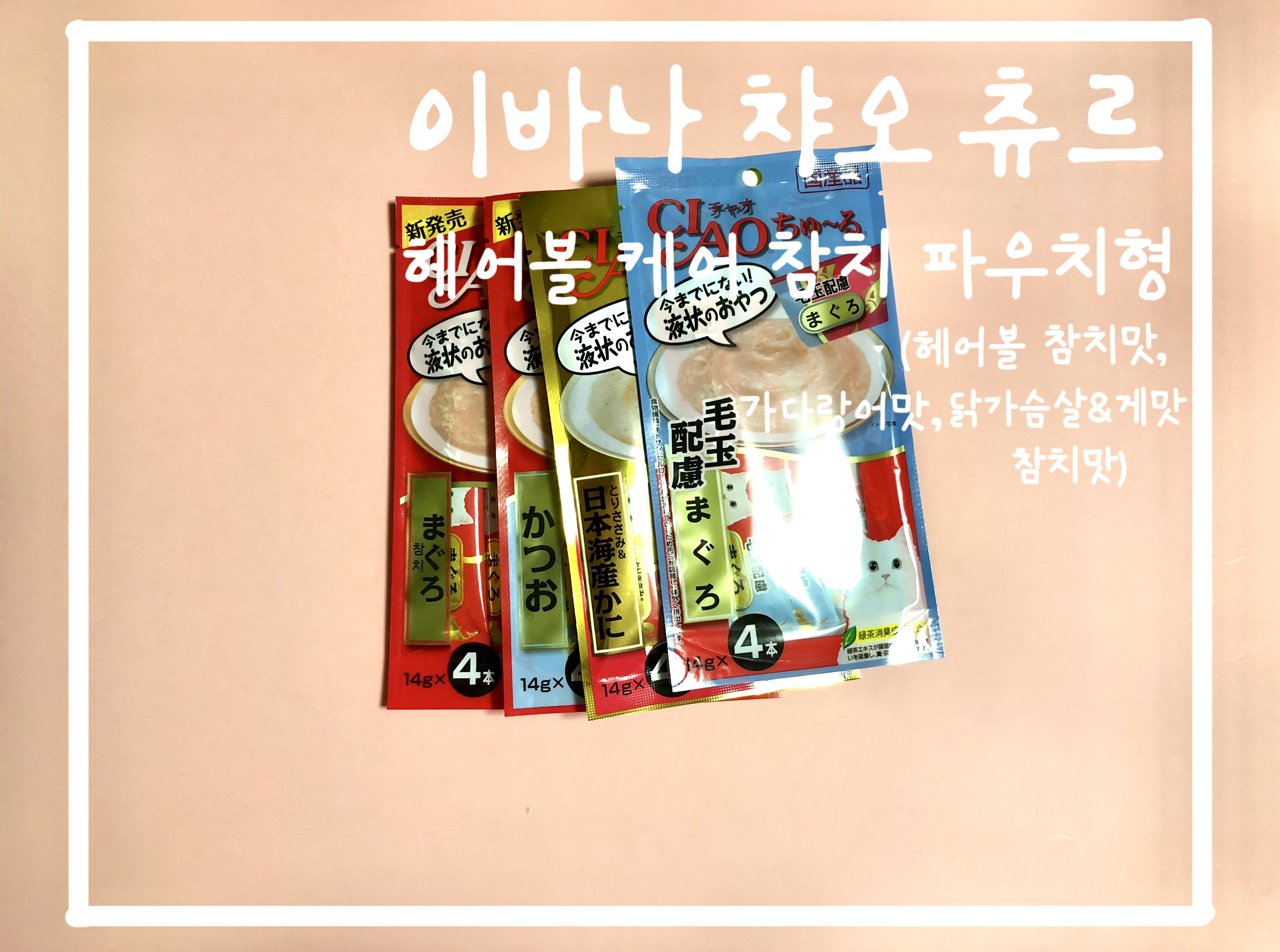 (헤어볼 참치 맛, 가다랑어 맛, 닭가슴살&게맛, 참치 맛)