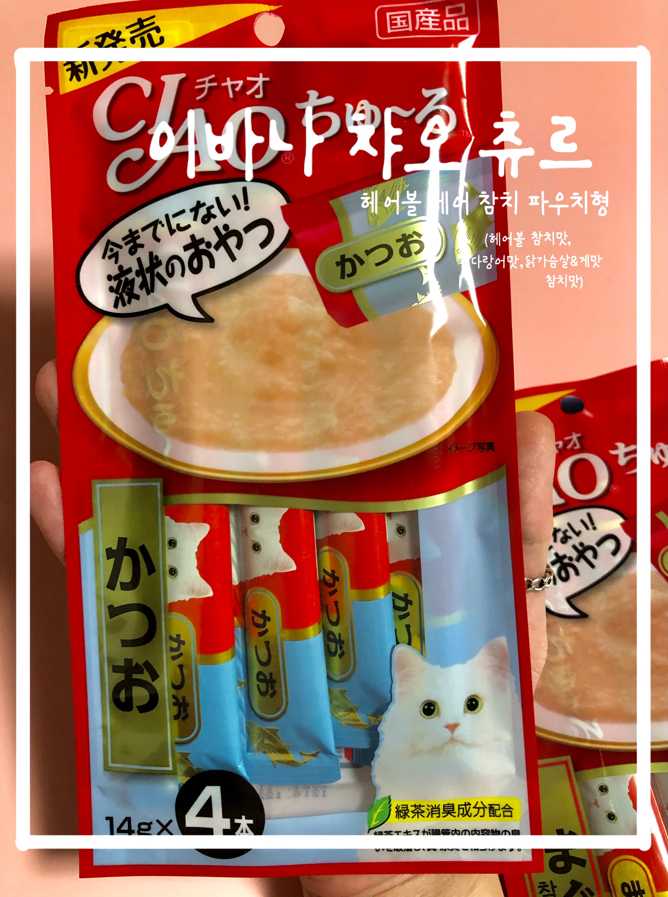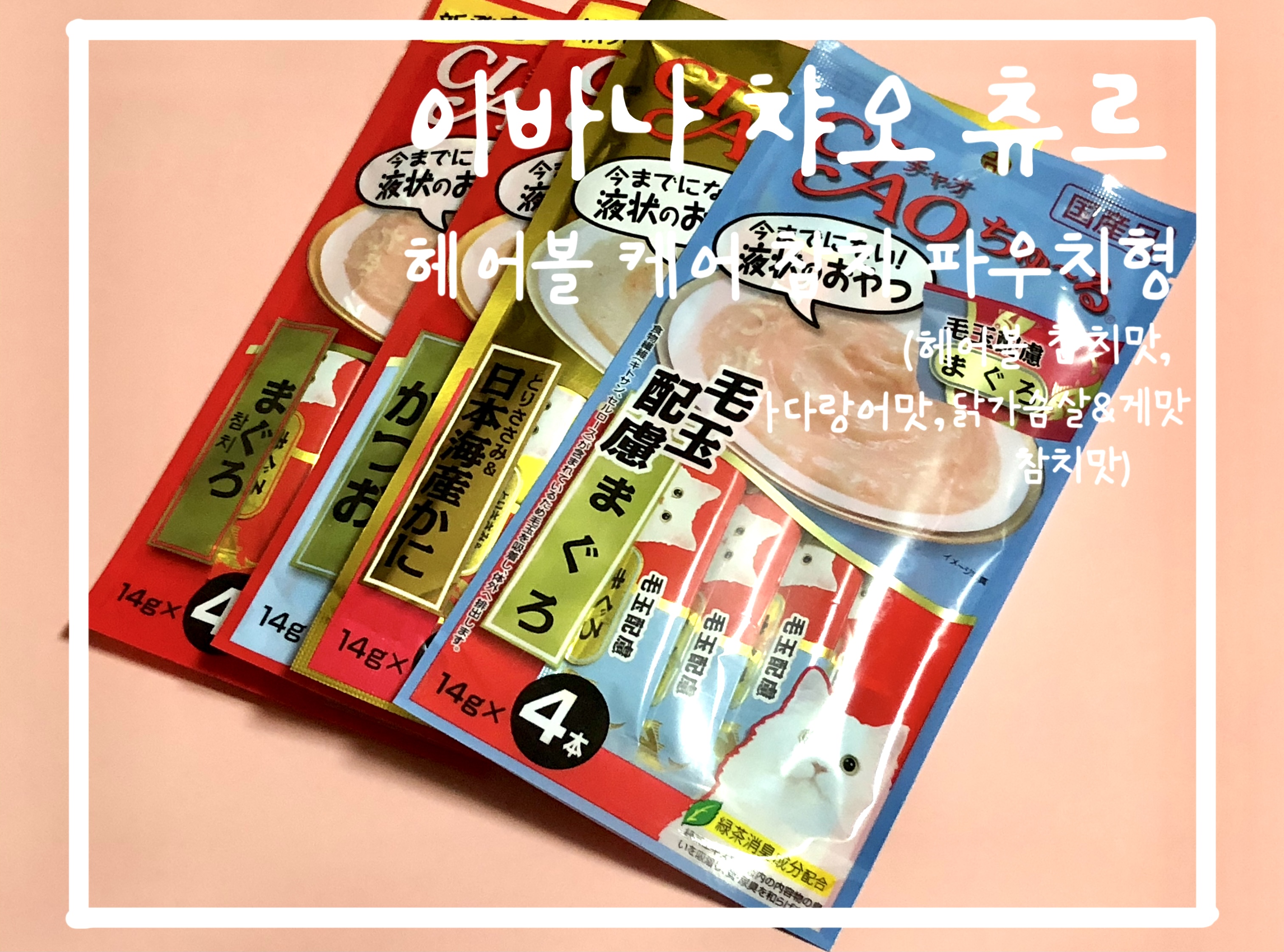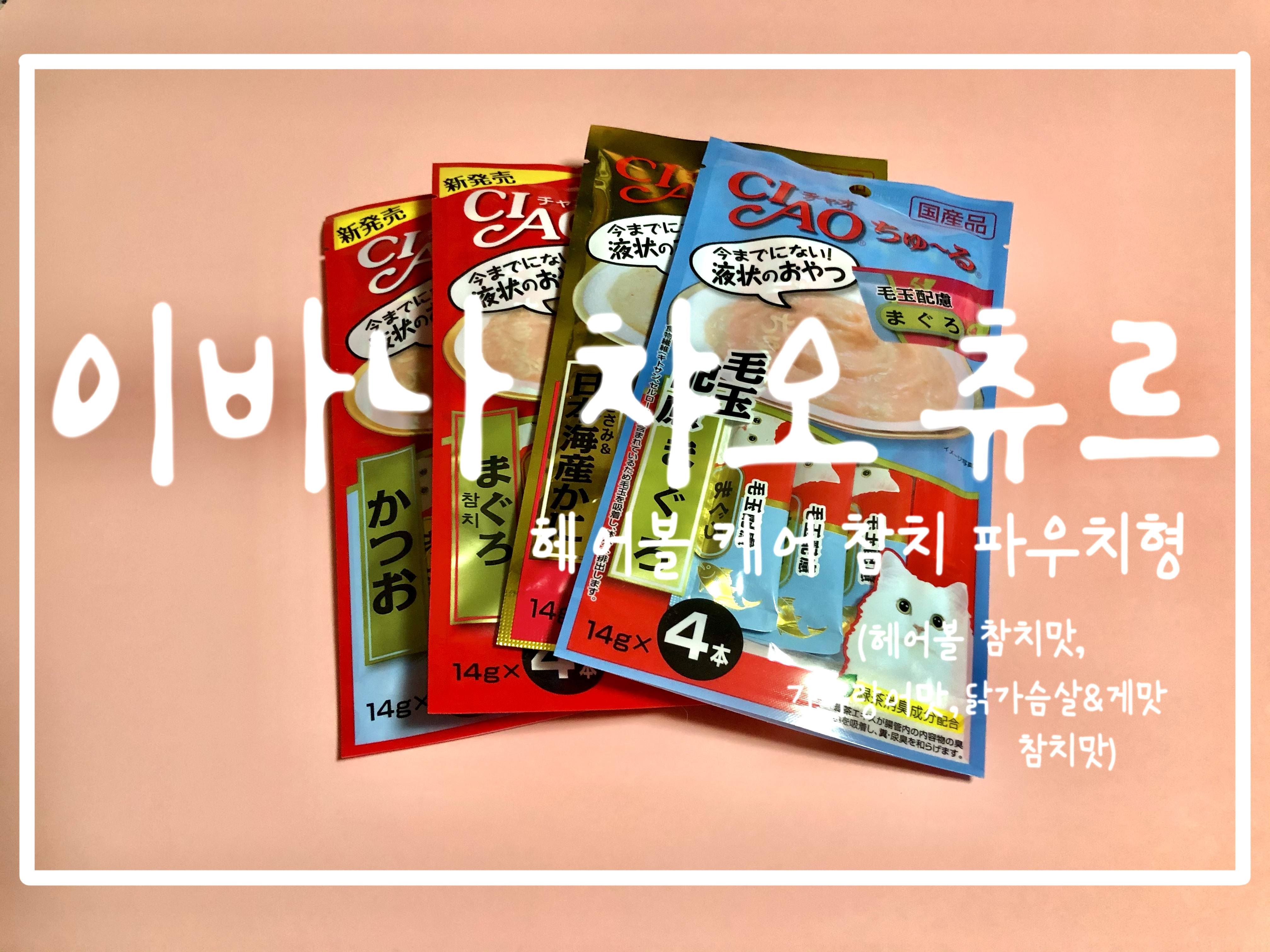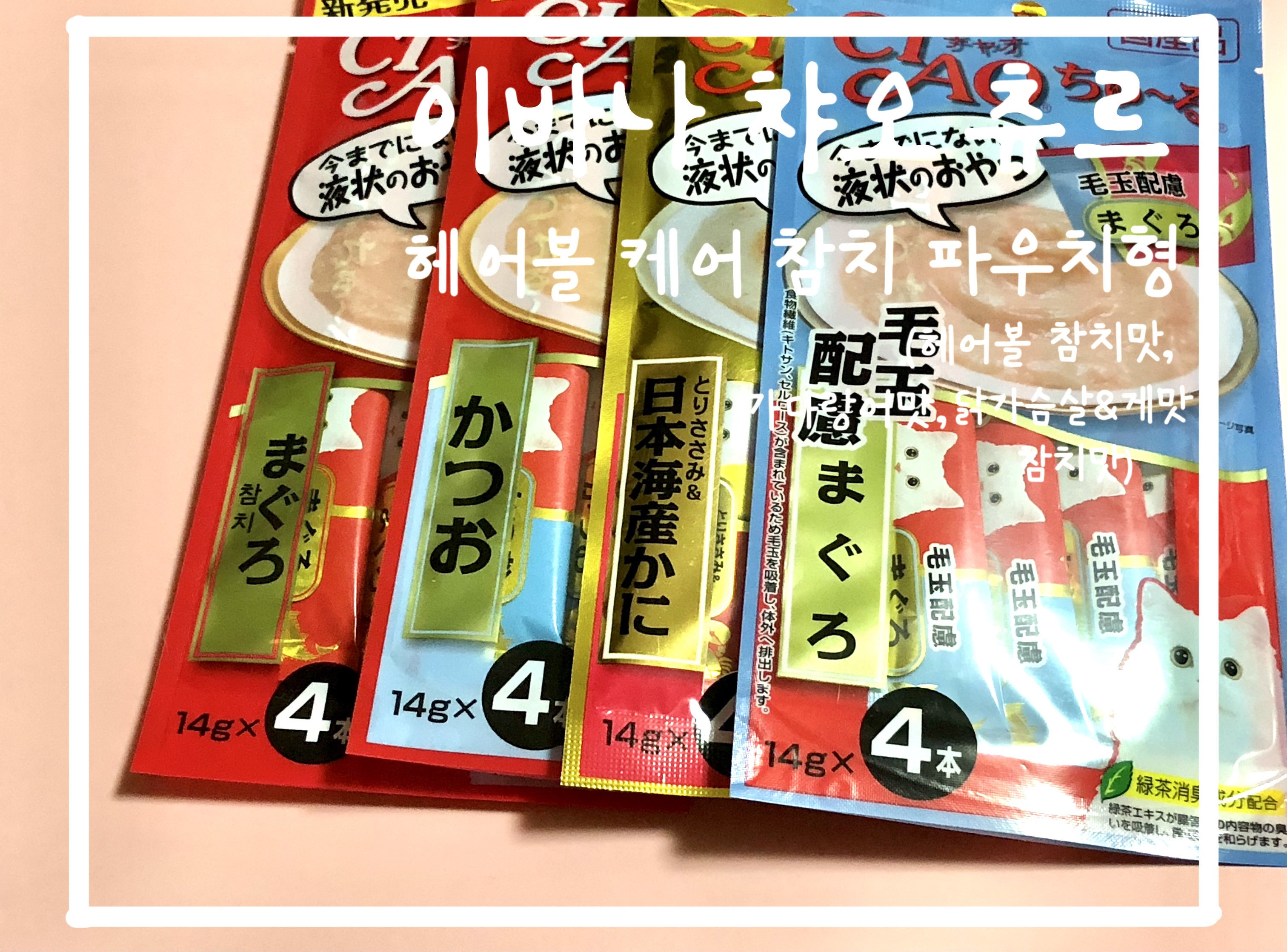(헤어볼 참치 맛, 가다랑어 맛, 닭가슴살&게맛, 참치 맛)