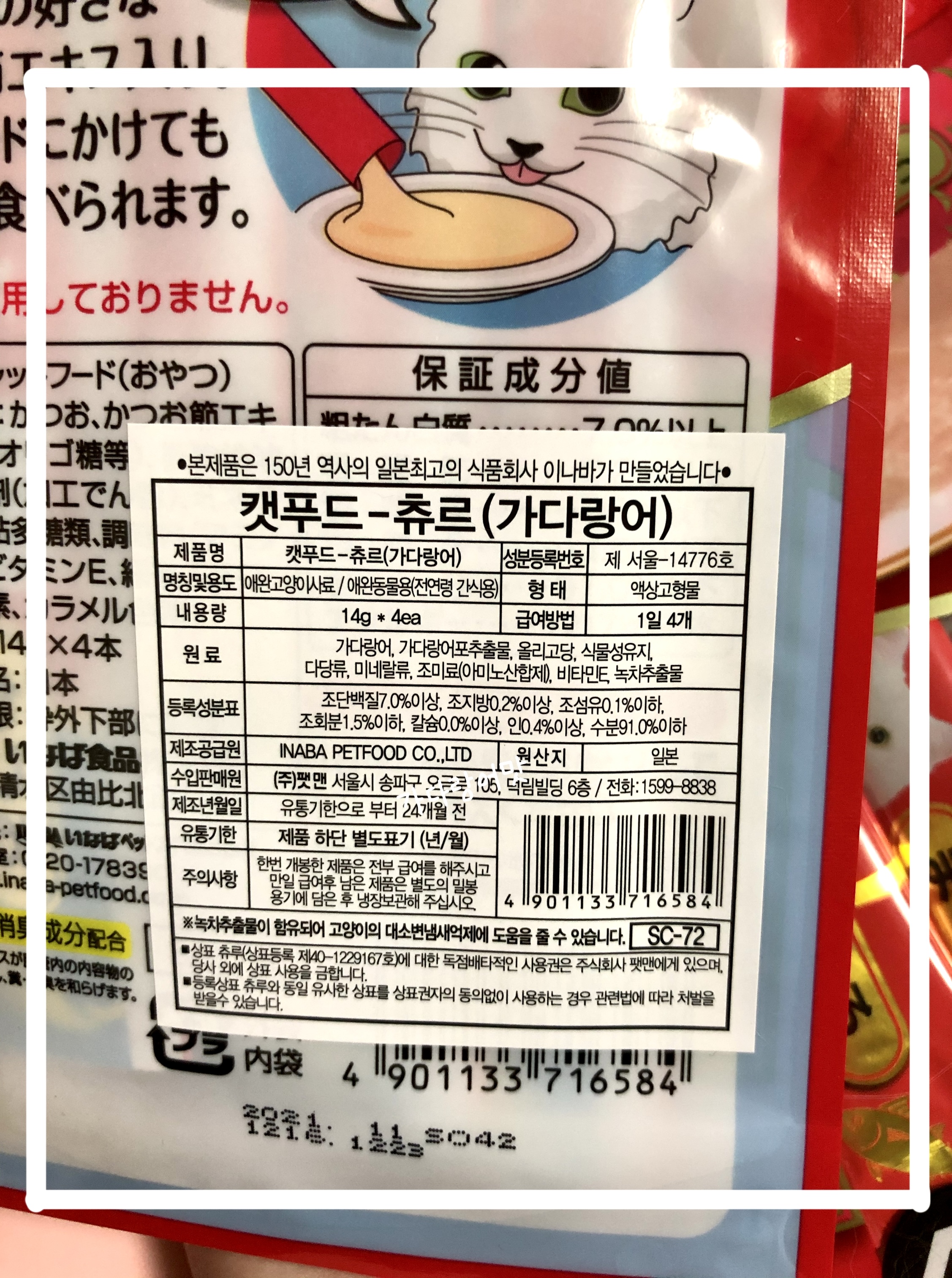 참고 : 1일 츄르 1개를 기준으로 하루 한 개씩 급여하는 것을 추천합니다.