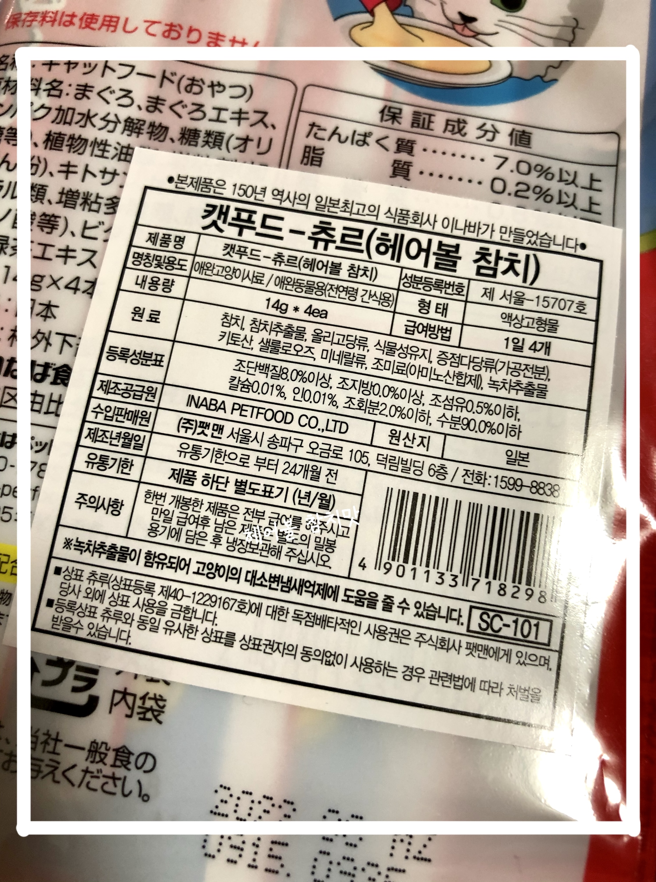 - 혹시나 개봉한 츄르가 남는다면 바로 냉장고에 넣어 냉장보관을 권장합니다.