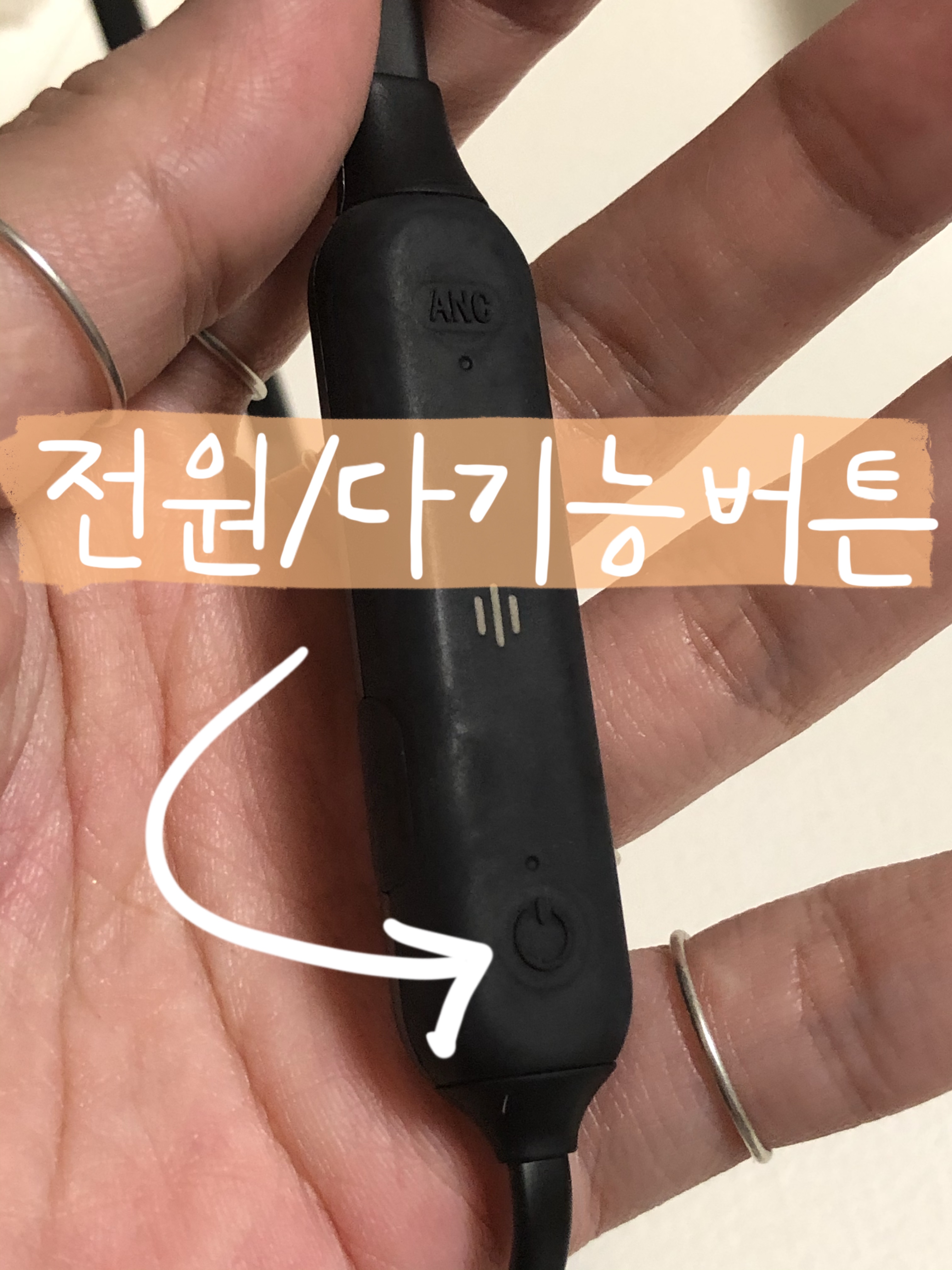 전원 on 상태에서 ANC 버튼을 눌러주면 LED의 등이 파란색으로 켜집니다.