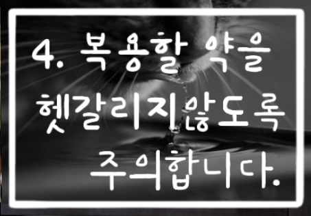 스케줄표를 만들어 매일 정해진 시간에 고양이에게 복용약을 투약한 후 곧바로 스케쥴표에 해당 사항을 체크하면