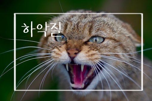 부정적인 기분으로 적대감을 표현하는 목소리 또는 모습을 부르는 말입니다.(일을 있는 대로 크게 벌려 '하악!' 바람소리를 냅니다.)