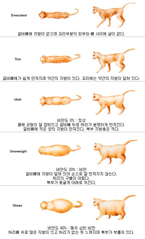 고양이의 비만도는 간단히 고양이의 얼굴과 뱃살을 만져보면 알 수 있습니다.