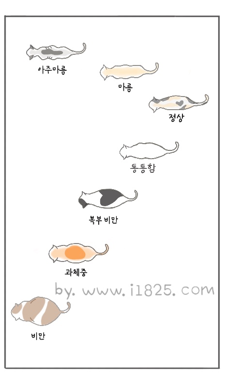 고양이의 비만도는 간단히 고양이의 얼굴과 뱃살을 만져보면 알 수 있습니다.