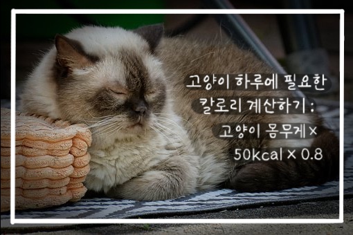 고양이 하루에 필요한 칼로리 계산하기 : 고양이 몸무게x50kcalx0.8 |