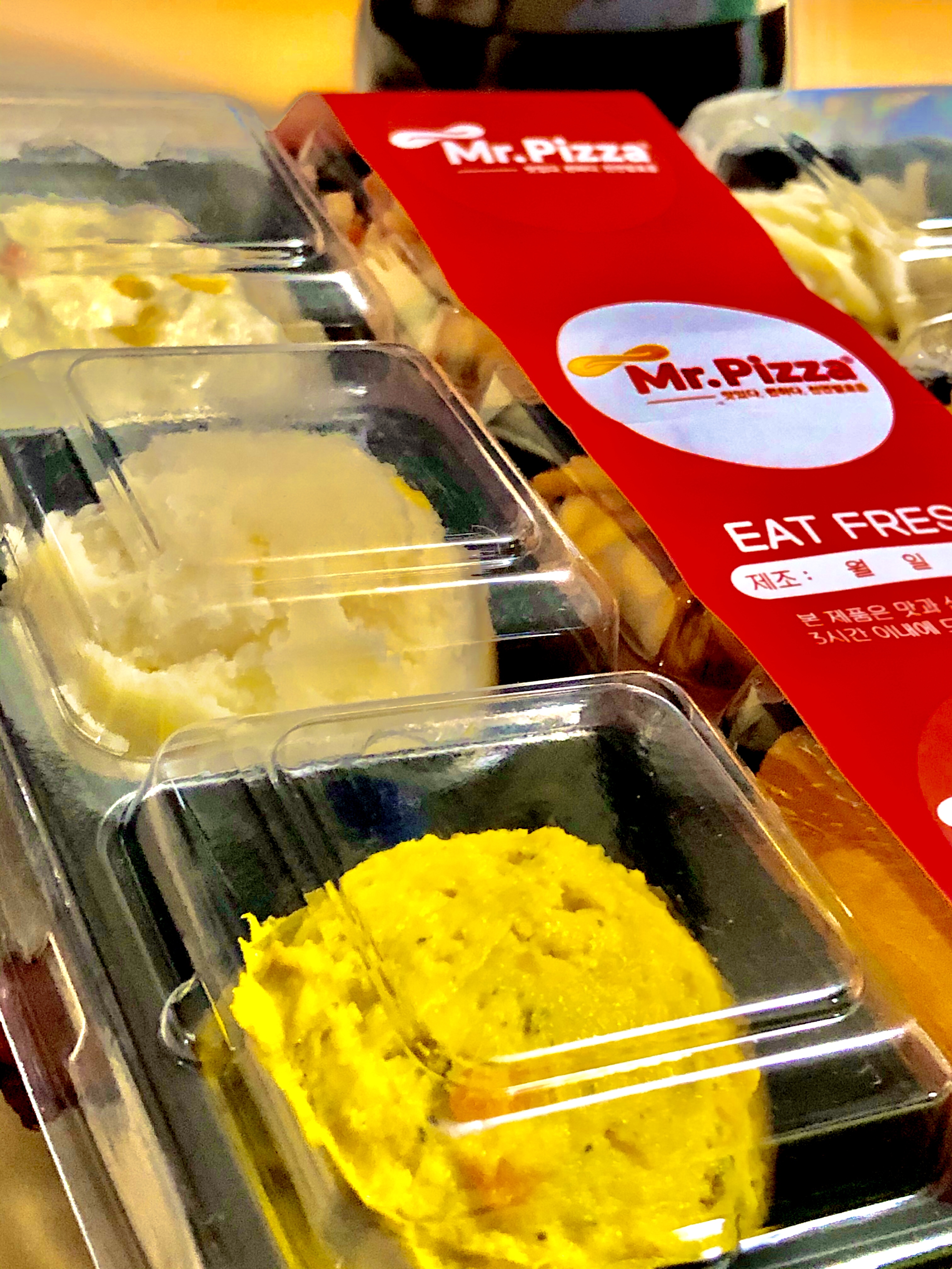 미스터 피자 홈샐러드는 미피의 믿고 먹는 샐러드바의 가장 인기 있는 메뉴를 한 컵씩 총 아홉 컵을 그대로 담아 집으로 오니까 당연히 기본은 하는 정도예요. 총 9가지 스타일의 모두 다른 샐러드가 한데 들어 골라먹는 재미가 있습니다.