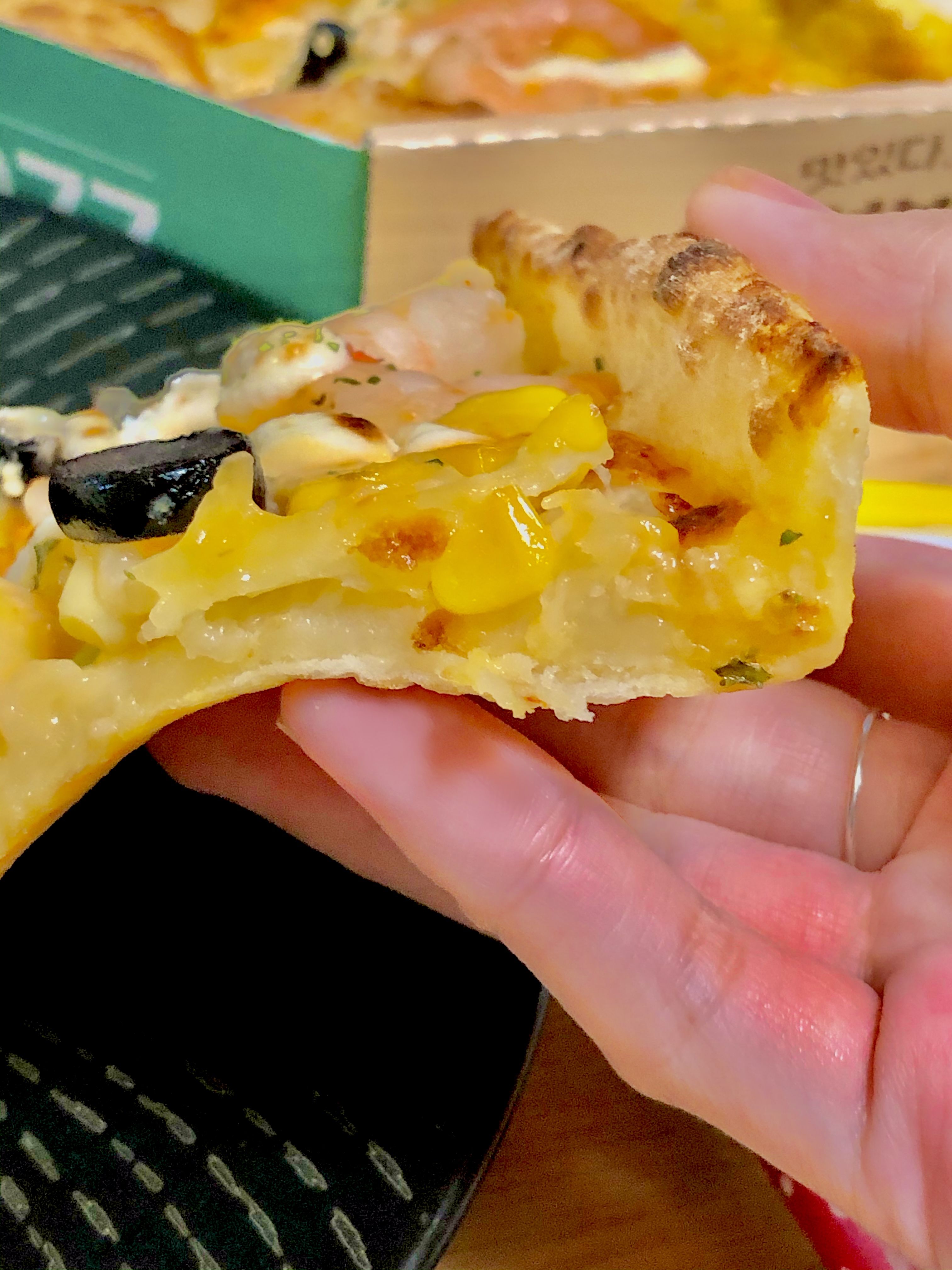 개인적으로 얇은 씬을 좋아하지만, 오늘의 피자 미스터 피자 햄벅한 피자의 적당한 두께의 도우는 두께감 있는 도우를 좋아한다면 더욱 배부르게 만족하실 수 있습니다.