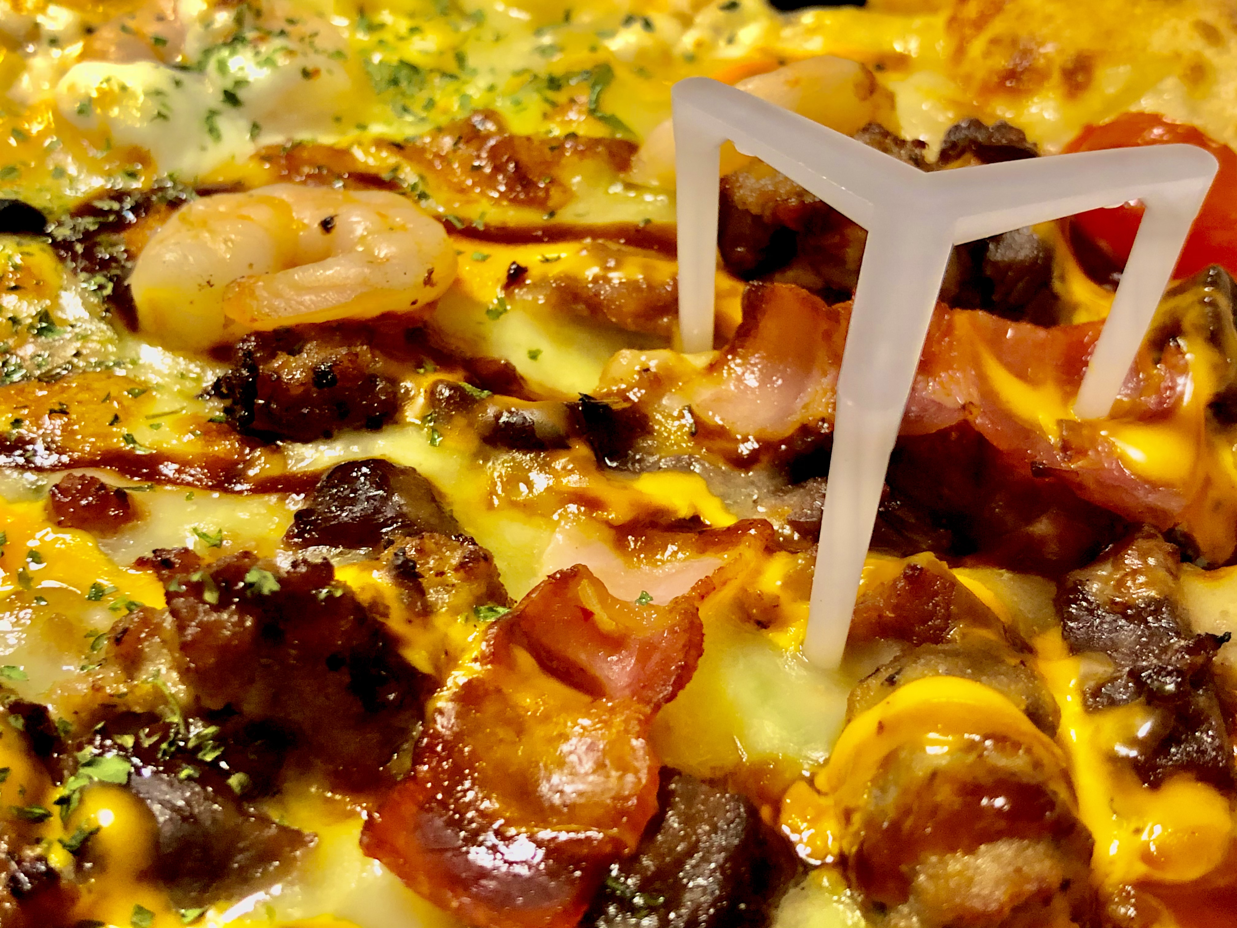 호주청정우 레드와인 스테이크, 그릴 비프, 케이준 쉬림프, 스위트 리코타 치즈, 베이컨, 미트 토핑, 스위트콘, 방울토마토, 파프리카, 히코리 BBQ 소스, 트리플 치즈 스프레드, 치즈 시즈닝, 마요네요 등