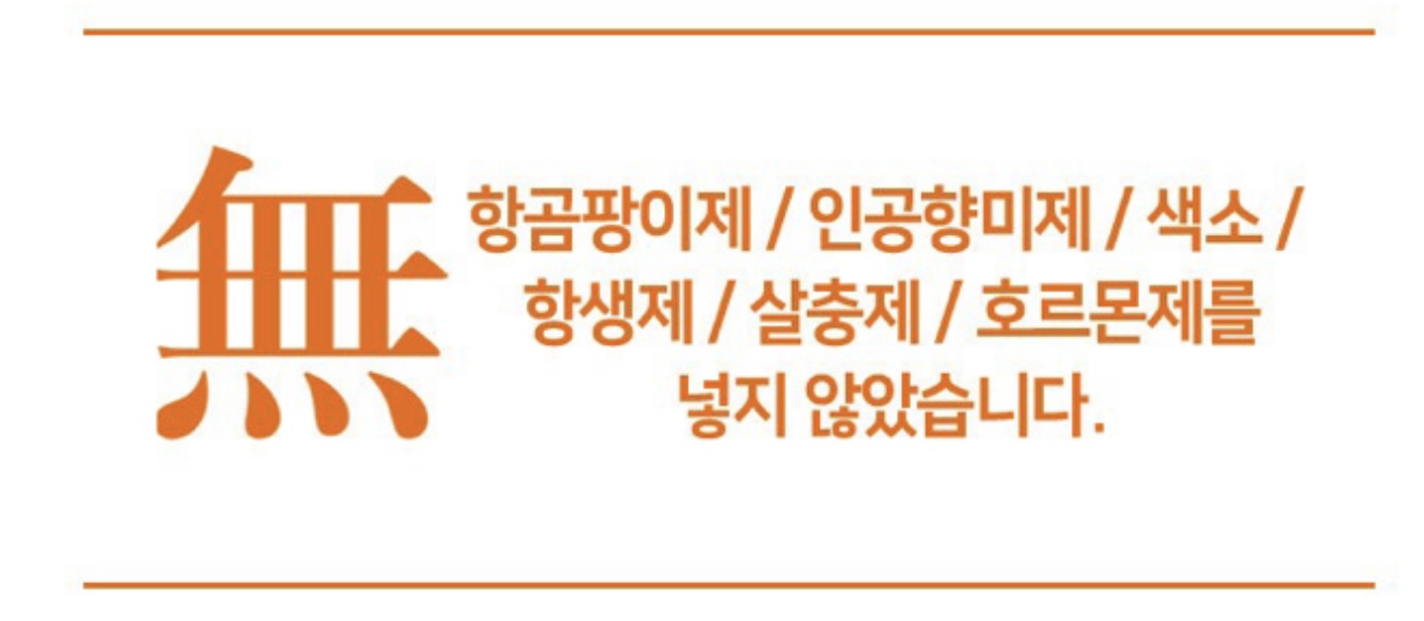 | 호르몬제, 항곰팡이제, 인공항미제, 색소, 항생제, 살충제를 넣지 않았습니다. |