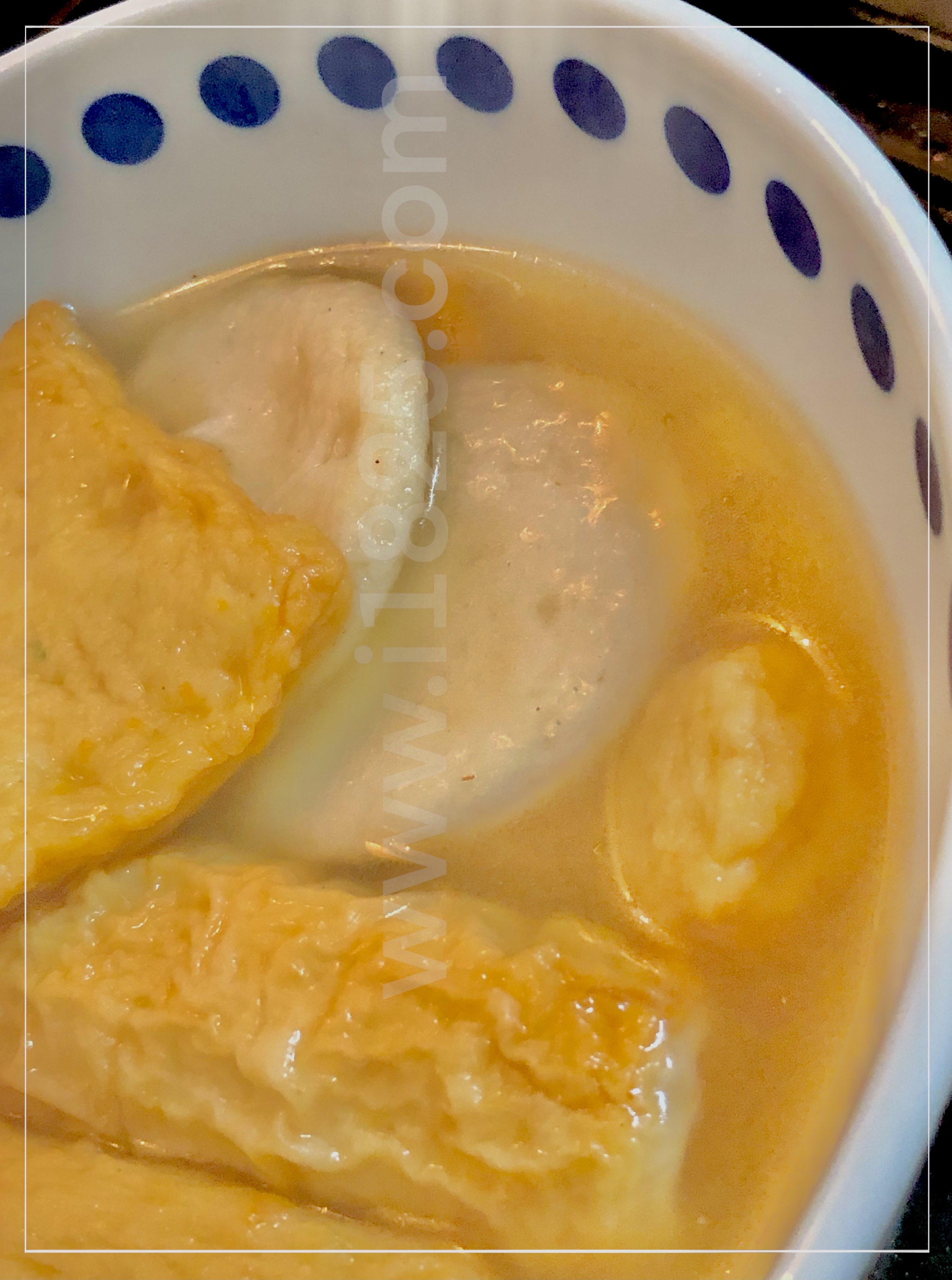• 야채 볼(미니 동그랑땡) 납작 동그라미 다음으로 덜 짠맛. 약간의 느끼함이 느껴지는 듯한 네 가지 중 가장 불어 터진 느낌의 어묵입니다.
