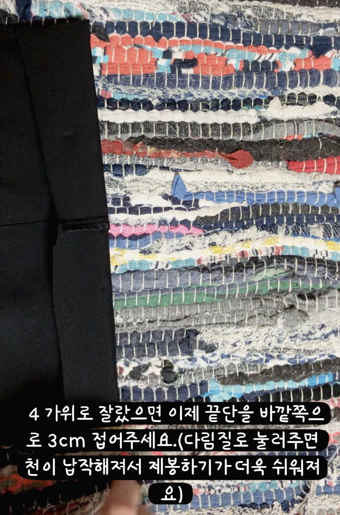 ▶가위로 잘랐으면 이제 끝단을 바깥쪽으로 3cm 접어주세요.