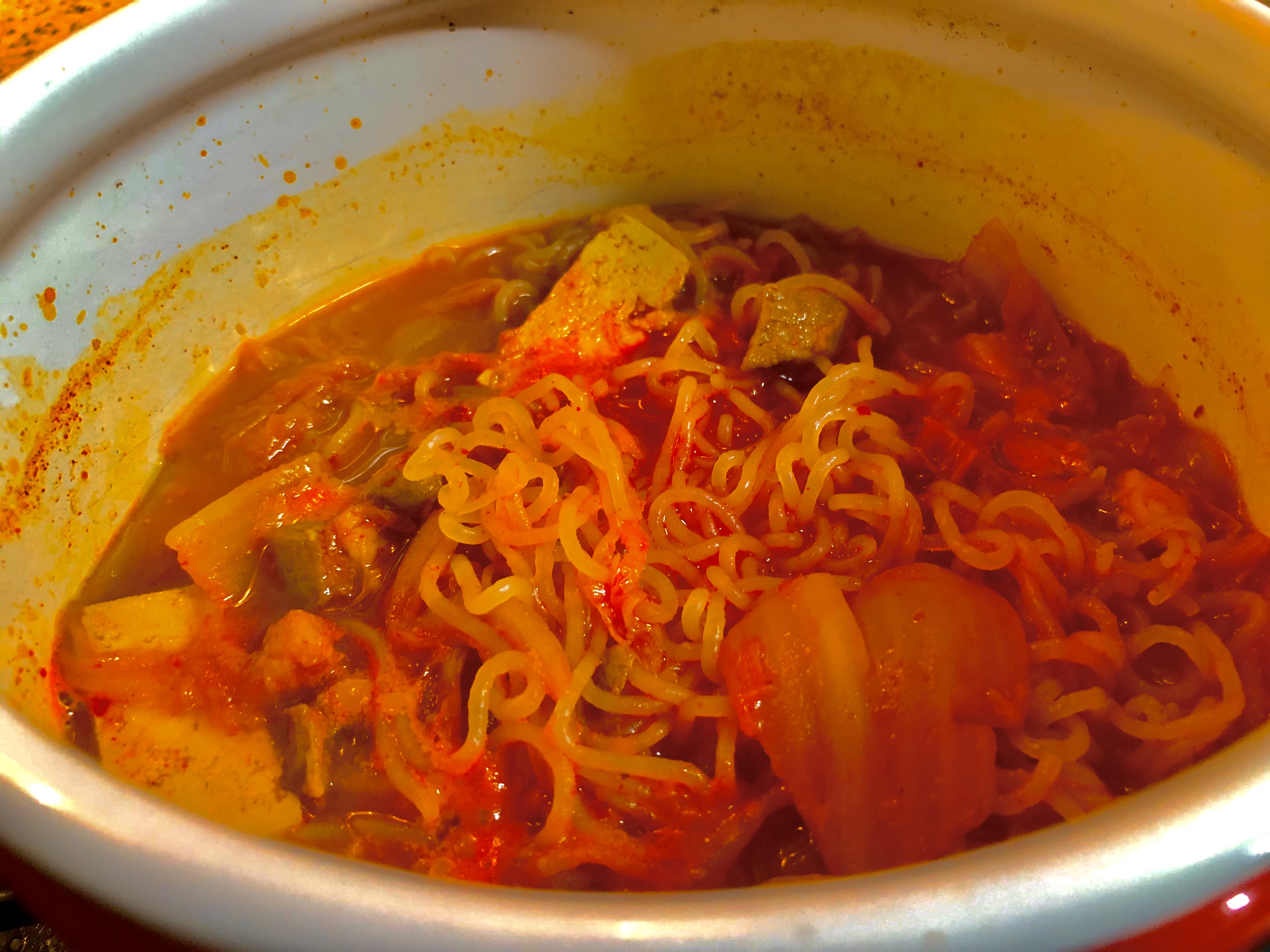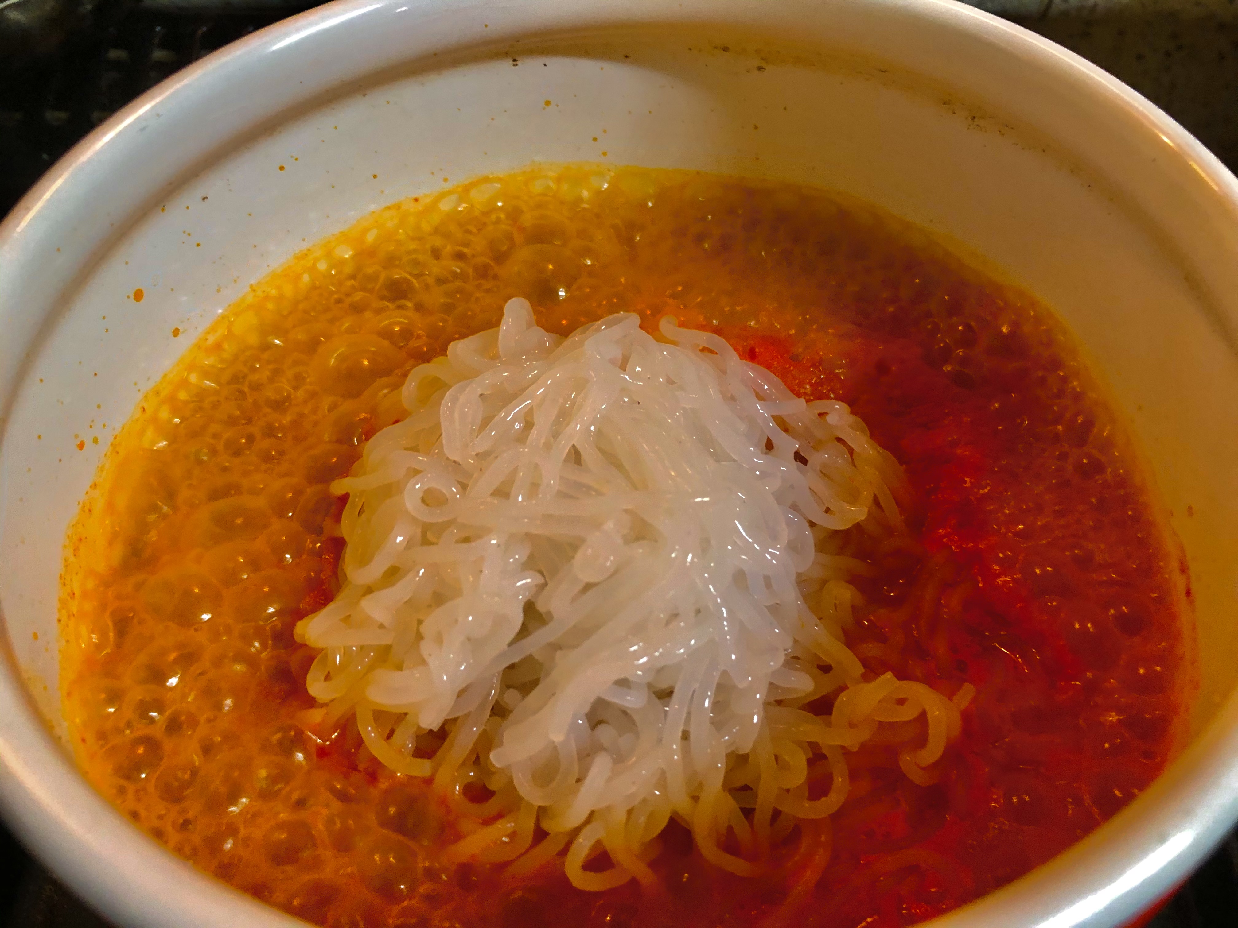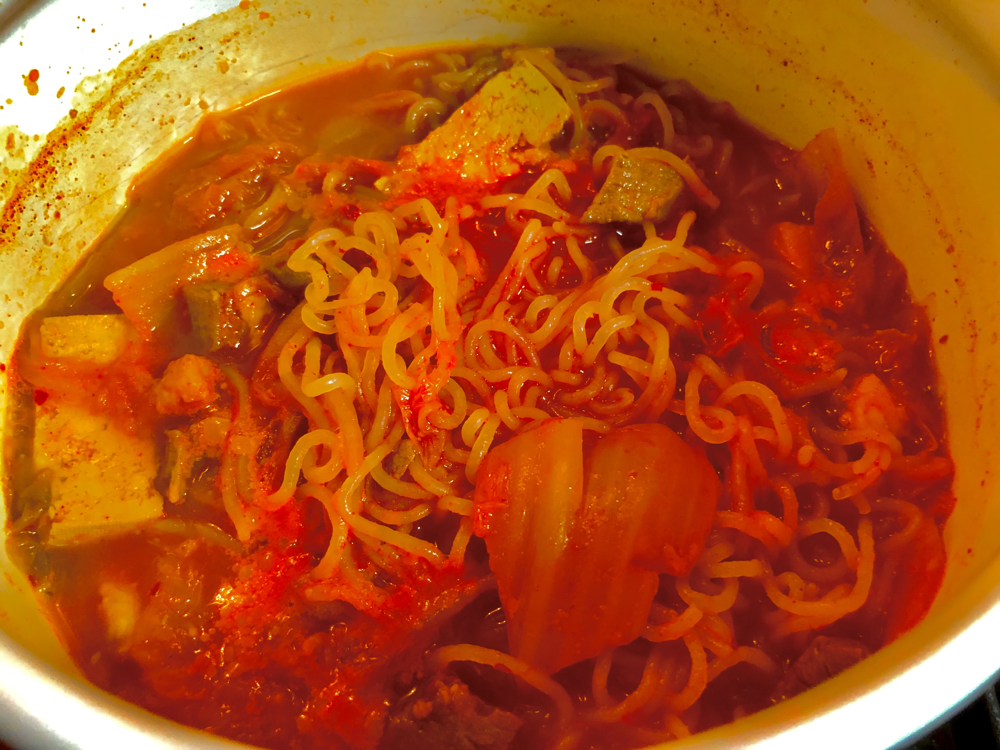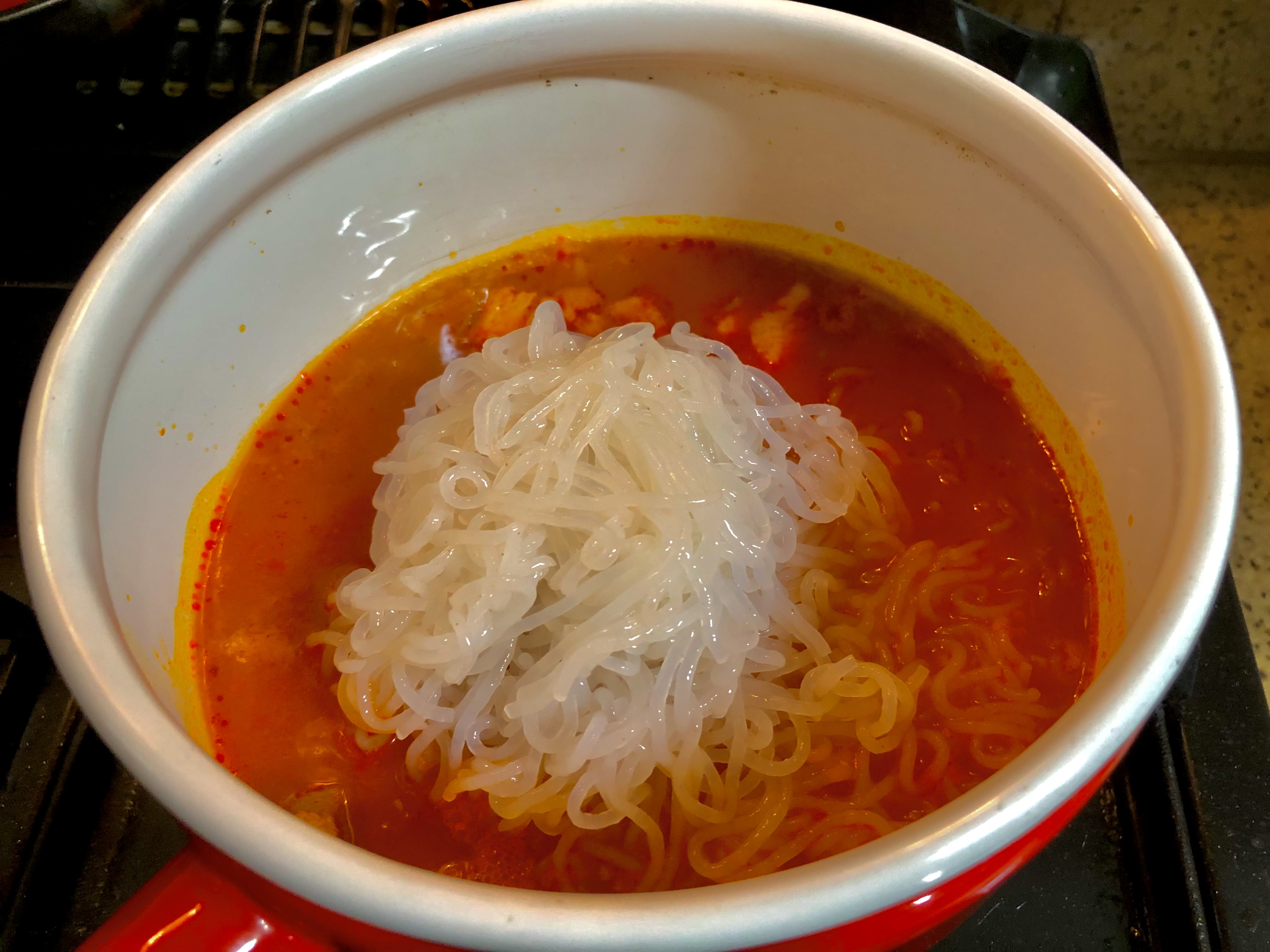 - 제품을 개봉하여 냄비에 부은 후 3분 30초~4분 동안 끓여 조리합니다.