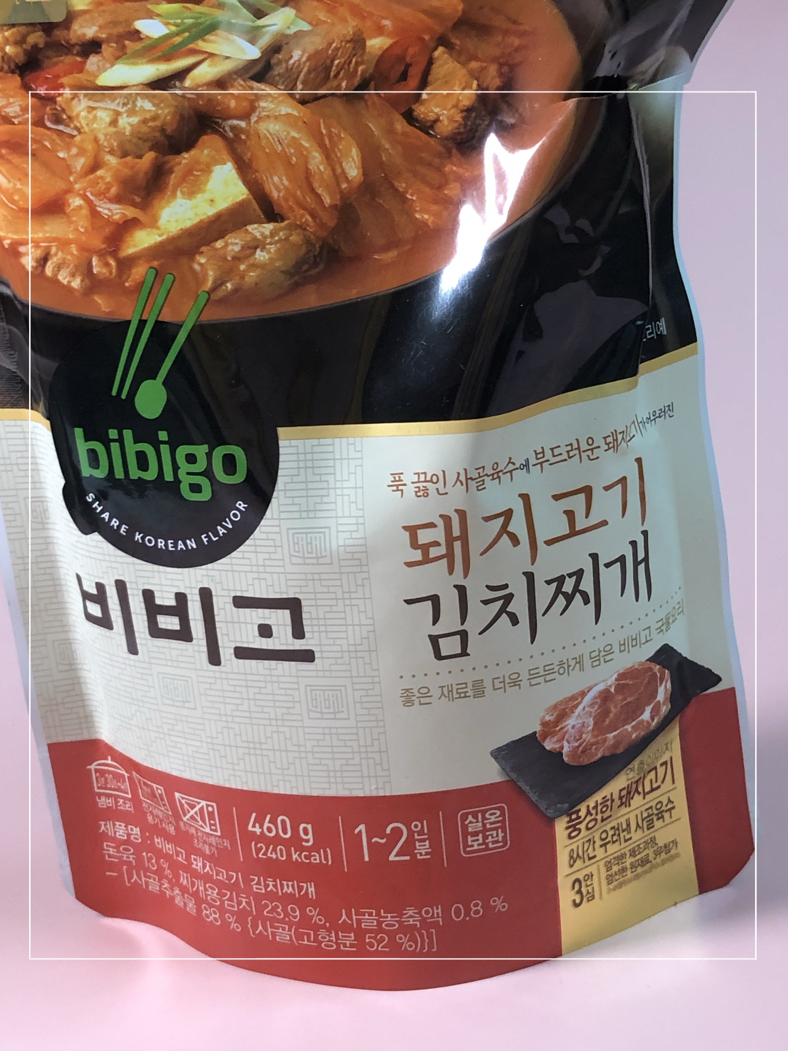 그런데 이제부터 이 김치찌개를 아주 손쉽게 구매하여 데우기만 하면 김치찌개를 먹을 수 있게 되었어요. 바로 비비고에서 판매하는 비비고 푹 끓은 사골육수에 부드러운 돼지고기 김치찌개를 발견했거든요!