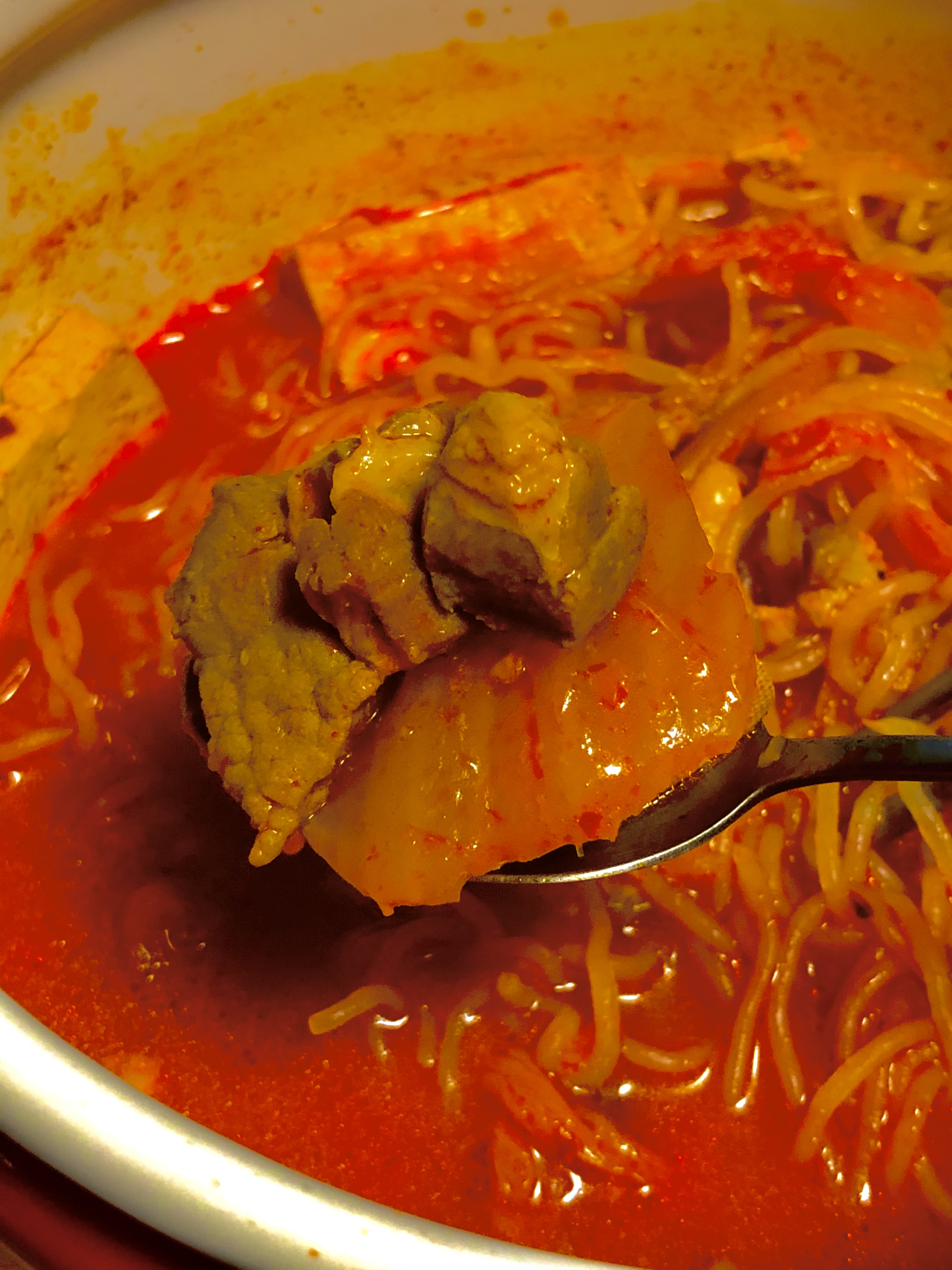 | 돈육 13%, 찌개용 김치 23.9%, 사골농축액 0.8% -[사골추출물 88% {사골(고형분 52%)}] |