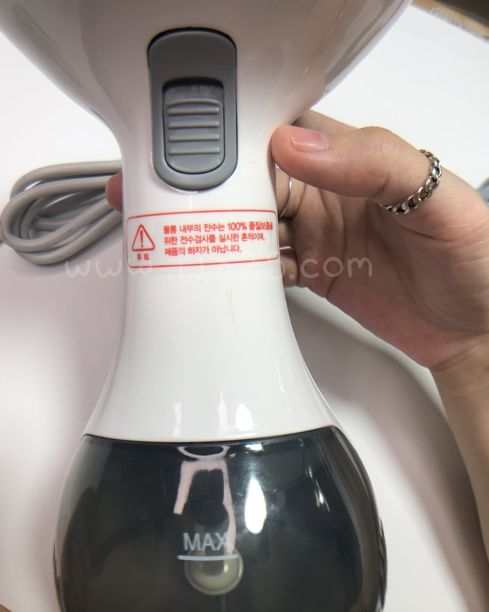 주의) 물 주입구 마개가 물탱크 안쪽과 하나로 연결되어있어요! (물 주입구 마개를 뽑을 시 강한 힘으로 빼내면 연결선이 뜯어질 위험이 있으므로 조심히 조작해주세요. 고객과실에 의한 상품손상은 A/S가 유상입니다!!)