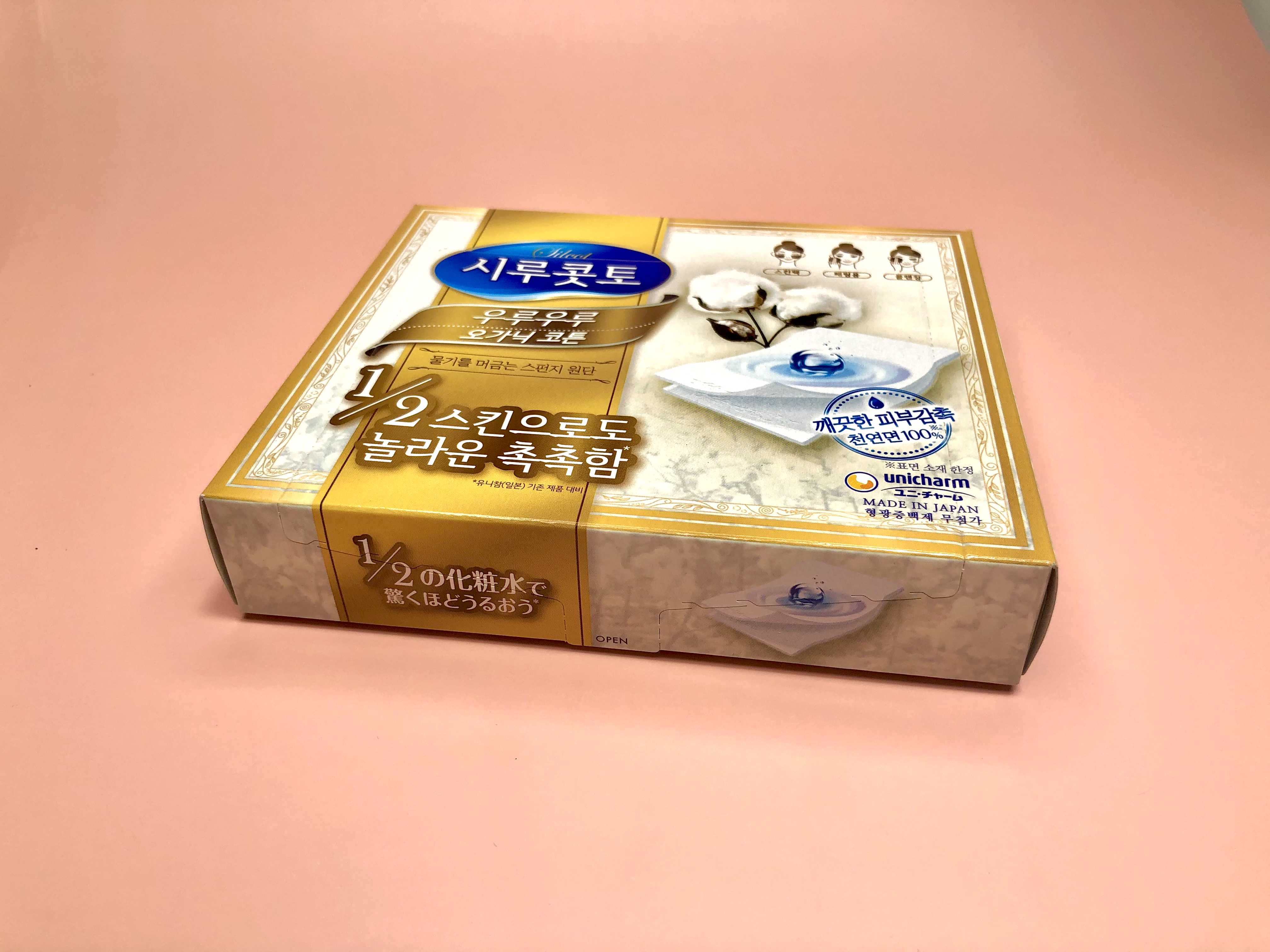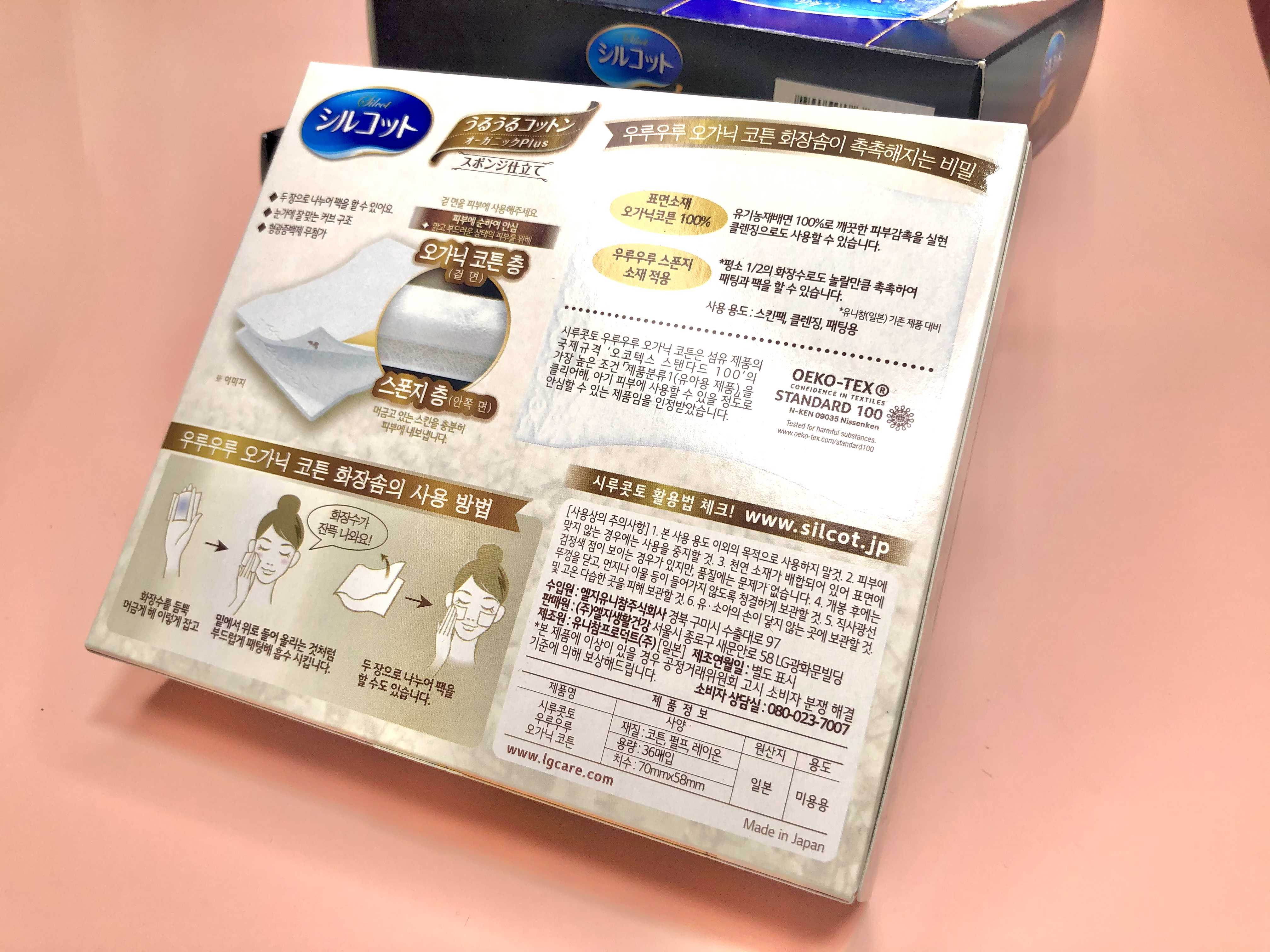 아무래도 얼굴에 직접 닿는 제품이다 보니 조금이라도 부드러운 감촉의 화장솜이 피부에 부담을 덜어주기때문에 현재까지 많은 화장솜을 사용해보았지만 면으로 얼굴을 닦아내는 듯한 부드러운 사용감은 시루콧토 우루우루 오가닉 코튼만 한 게 없었거든요.