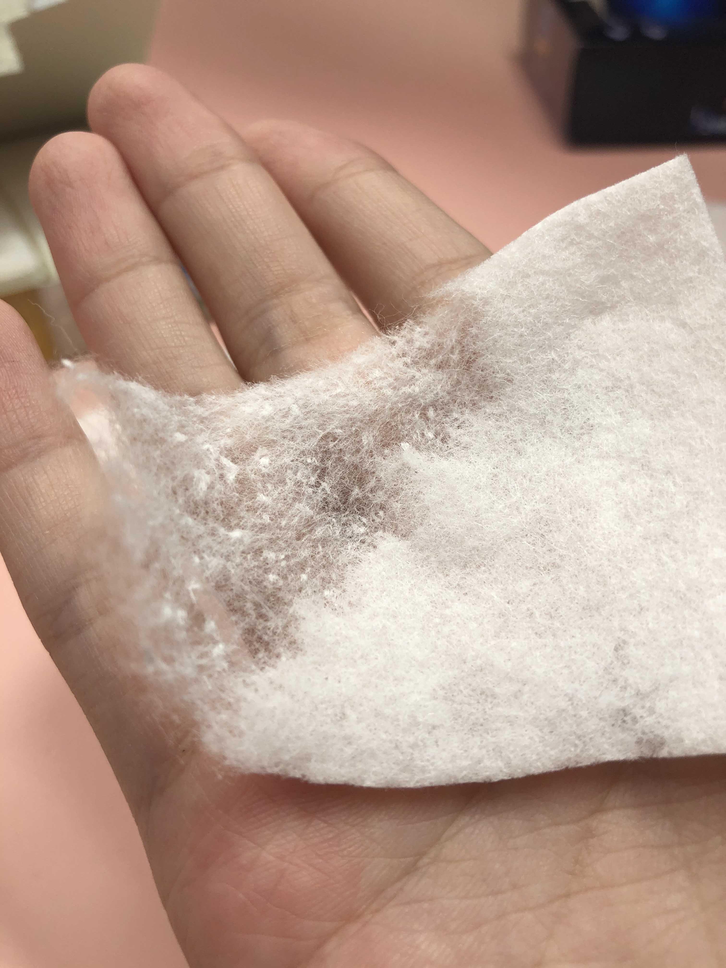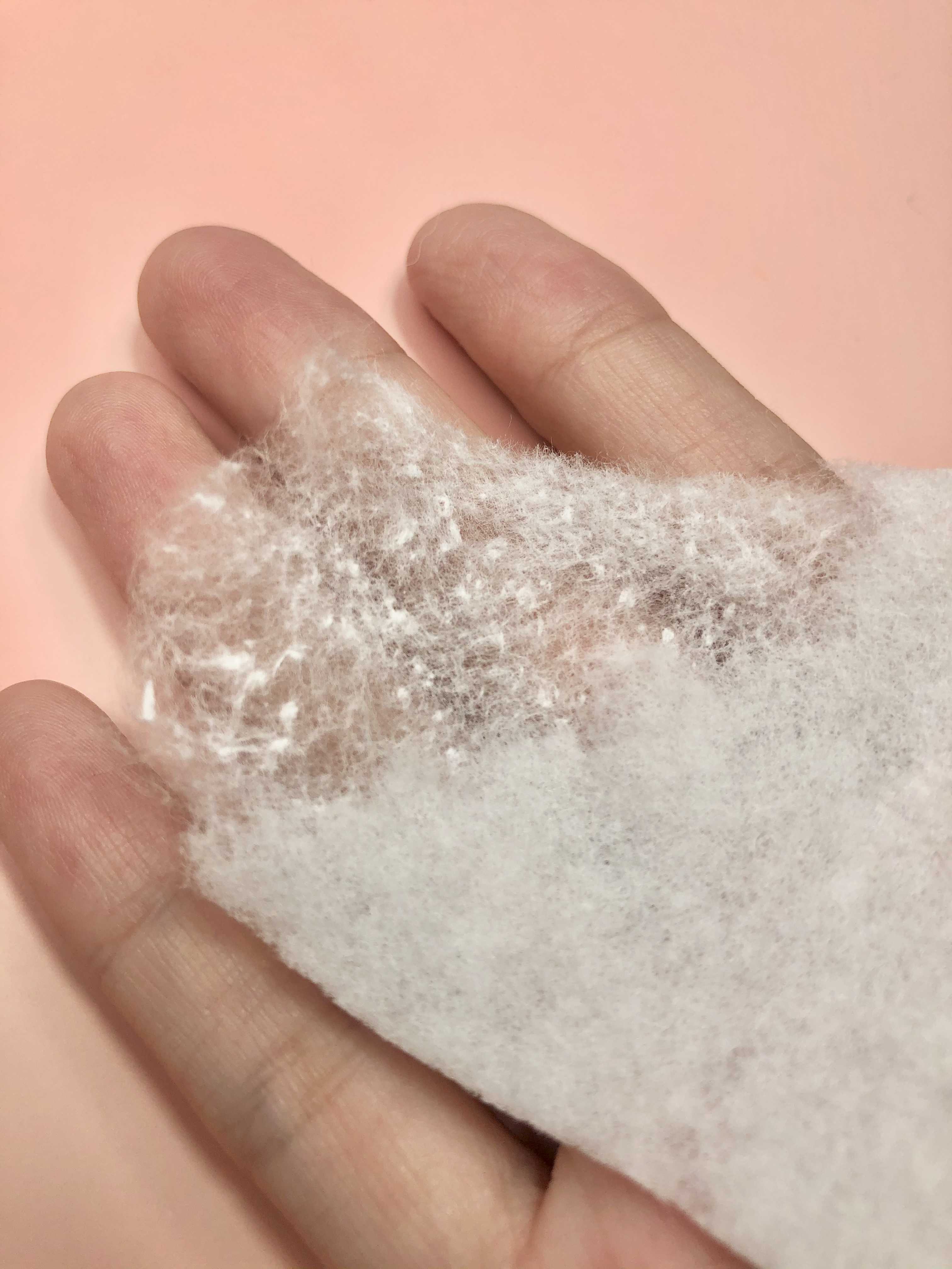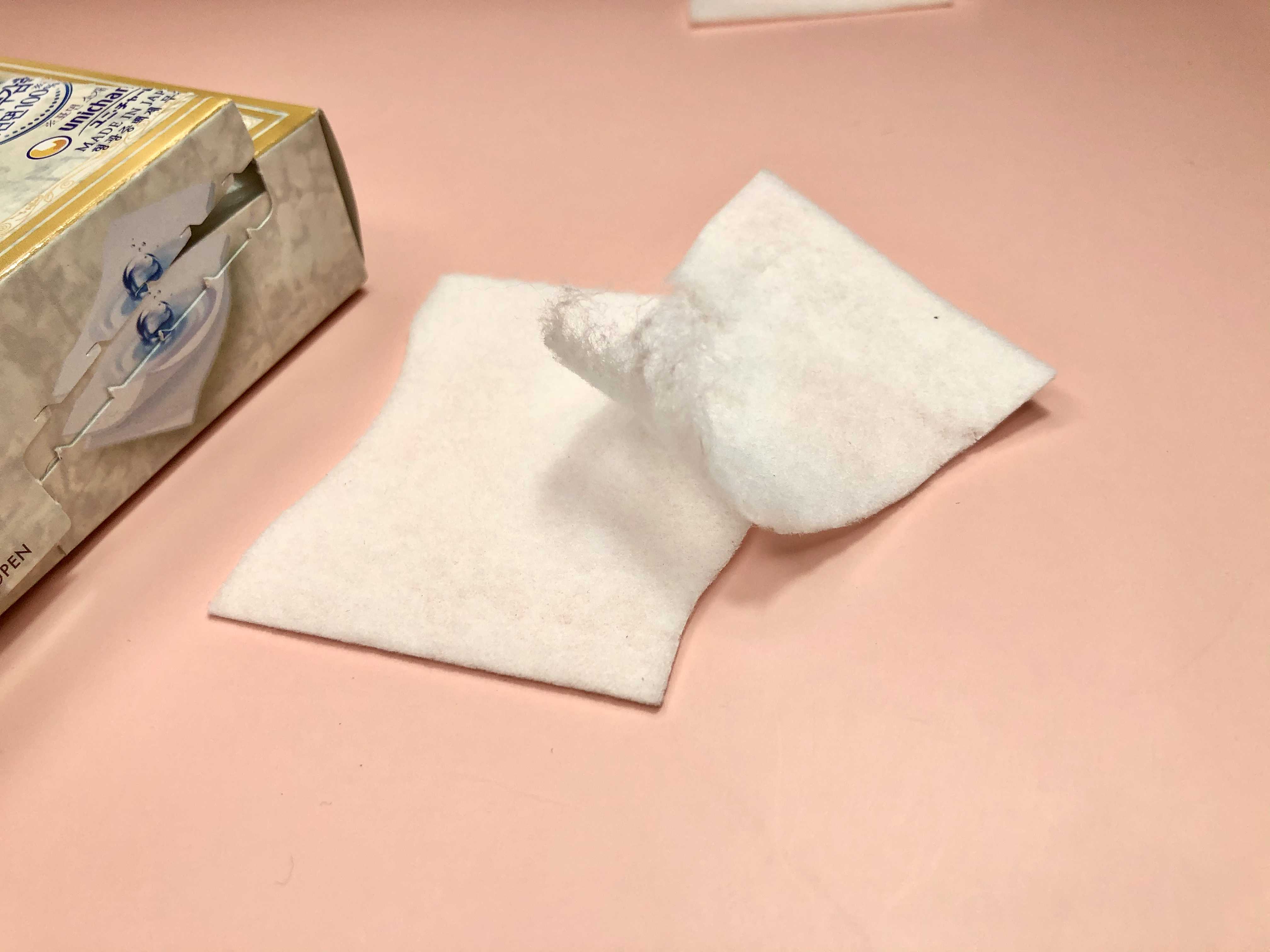 두껍고 잘 찢어지는, 조금의 마찰에도 일어나는 보풀을 가진 지금까지의 일반 화장품과 다르게 전혀 보풀이 일어나지 않는 특별한 화장솜입니다.