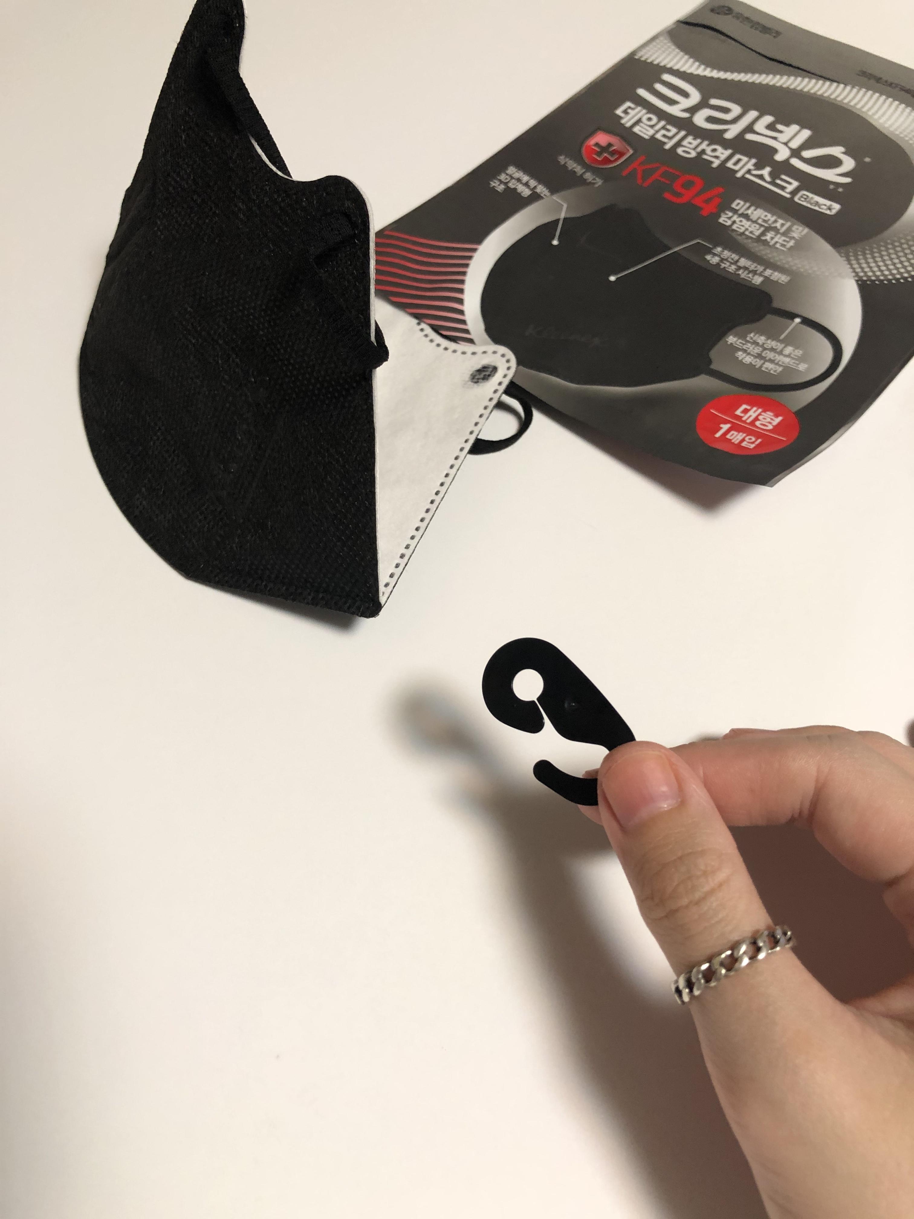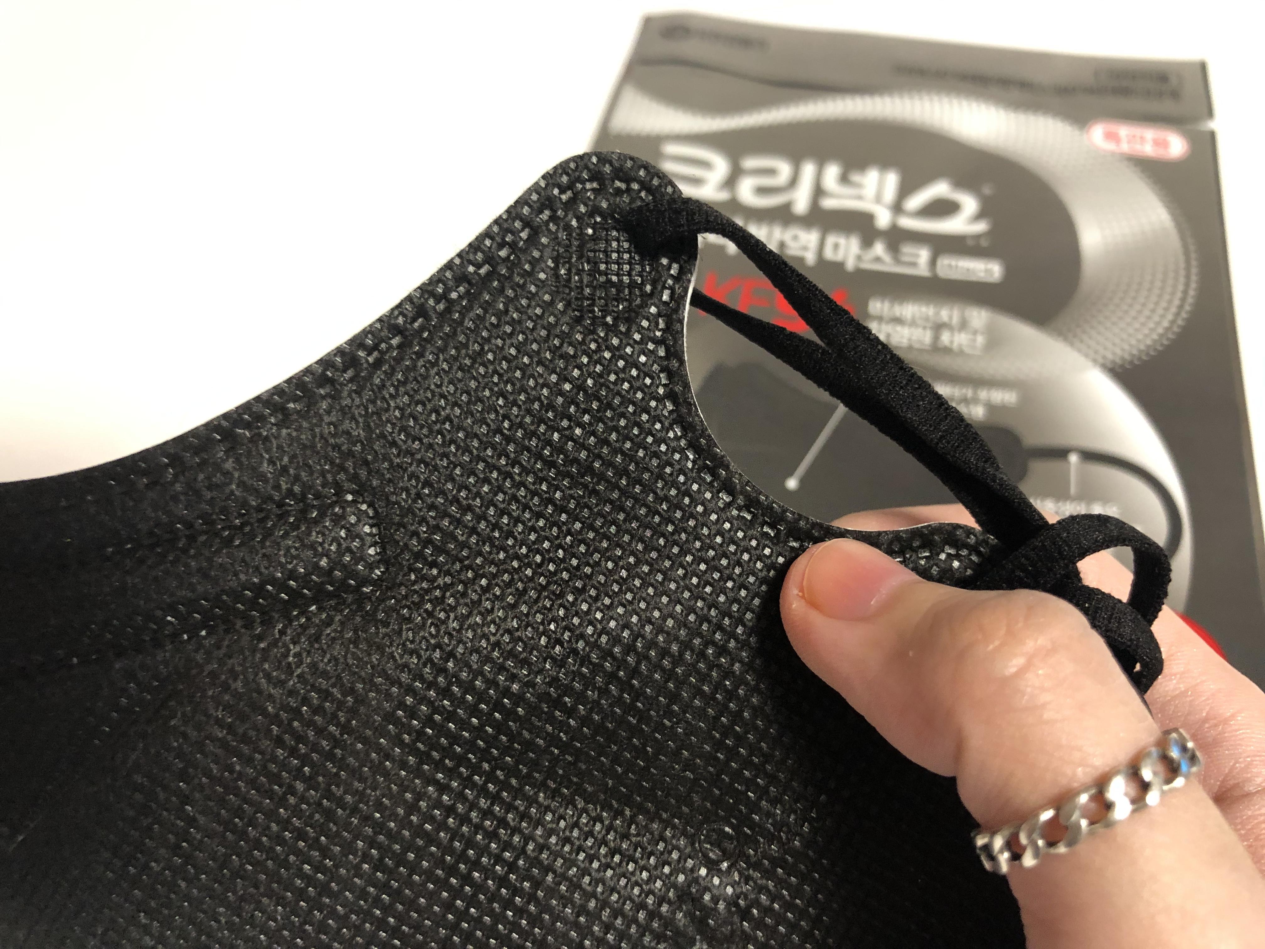 크리넥스는 바로 이 새 부리 형 방역 마스크로 귀걸이 밴드를 조절할 수 있는 밴드연결고리가 들어있습니다. 납작하고 네모난 당면 아시죠?? 바로 그 당면 모양처럼 생긴 끈에 탄성은 다른 타 마스크들과 비교했을 때 중간 정도입니다.