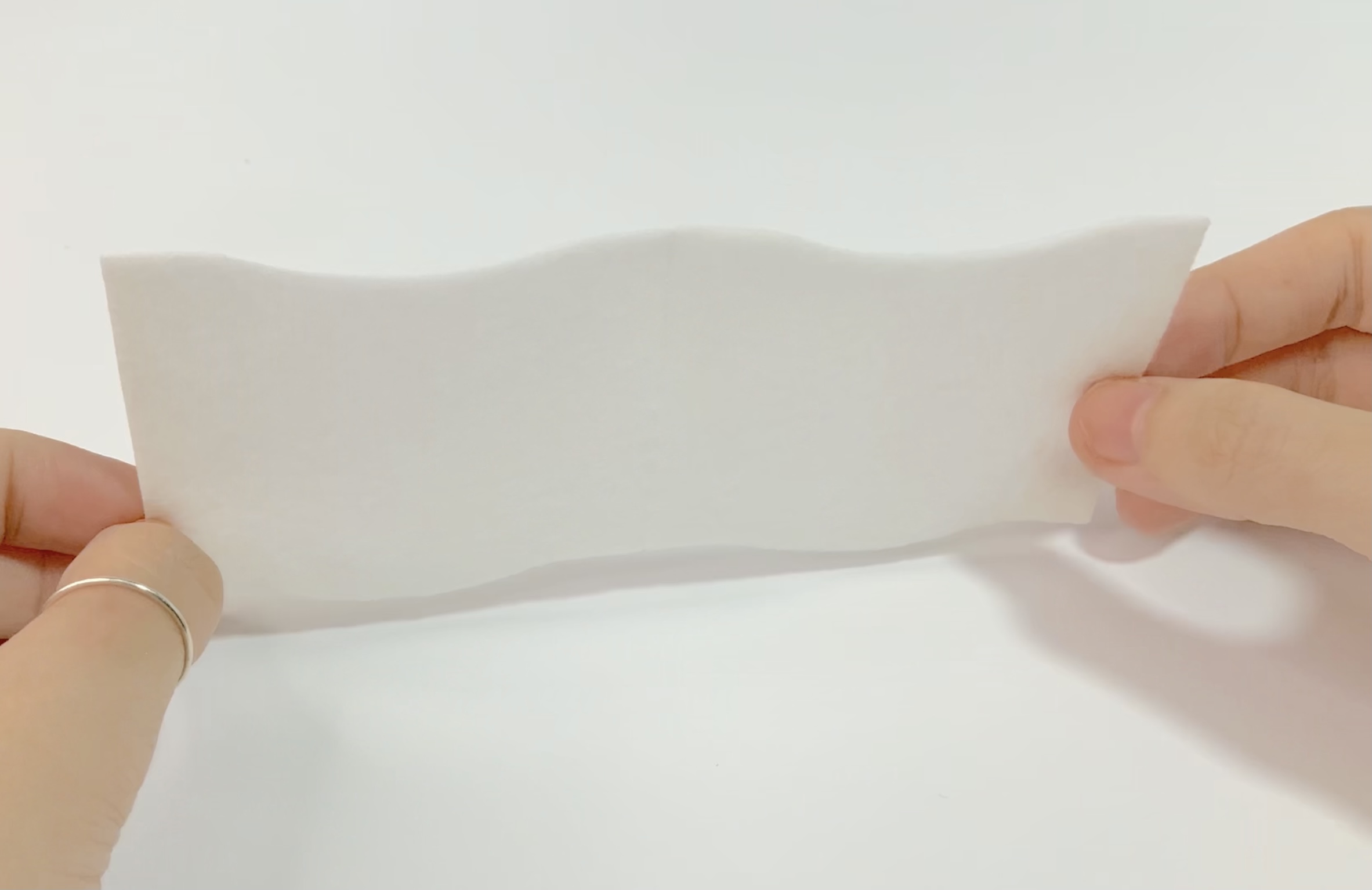 애초에 와이드 한 넓이를 가진 시루콧토 우루우루 화장솜과 달리 일반 화장솜의 크기는 시루콧토 우루우루 화장솜의 절반이 채 되지 않는 사이즈입니다. 시루콧토 우루우루 화장솜은 안 그래도 기다랗고 넓적한 사이즈인데 그걸 또 접어놓았어요. 그래서 펼쳐놓으면 두 배로 길어집니다.