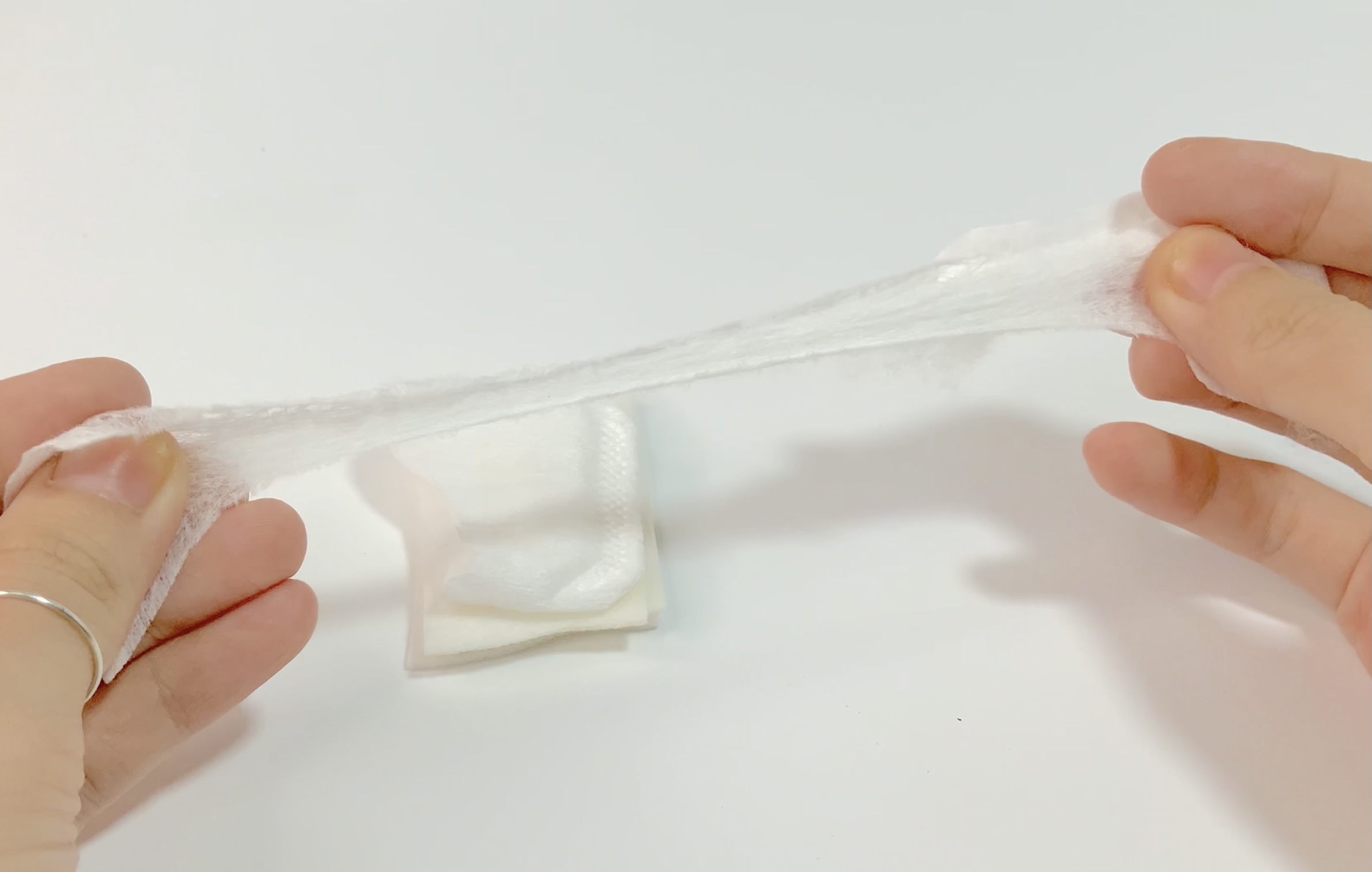 화장솜을 양손으로 잡고 쭉쭉 늘려보았습니다 :