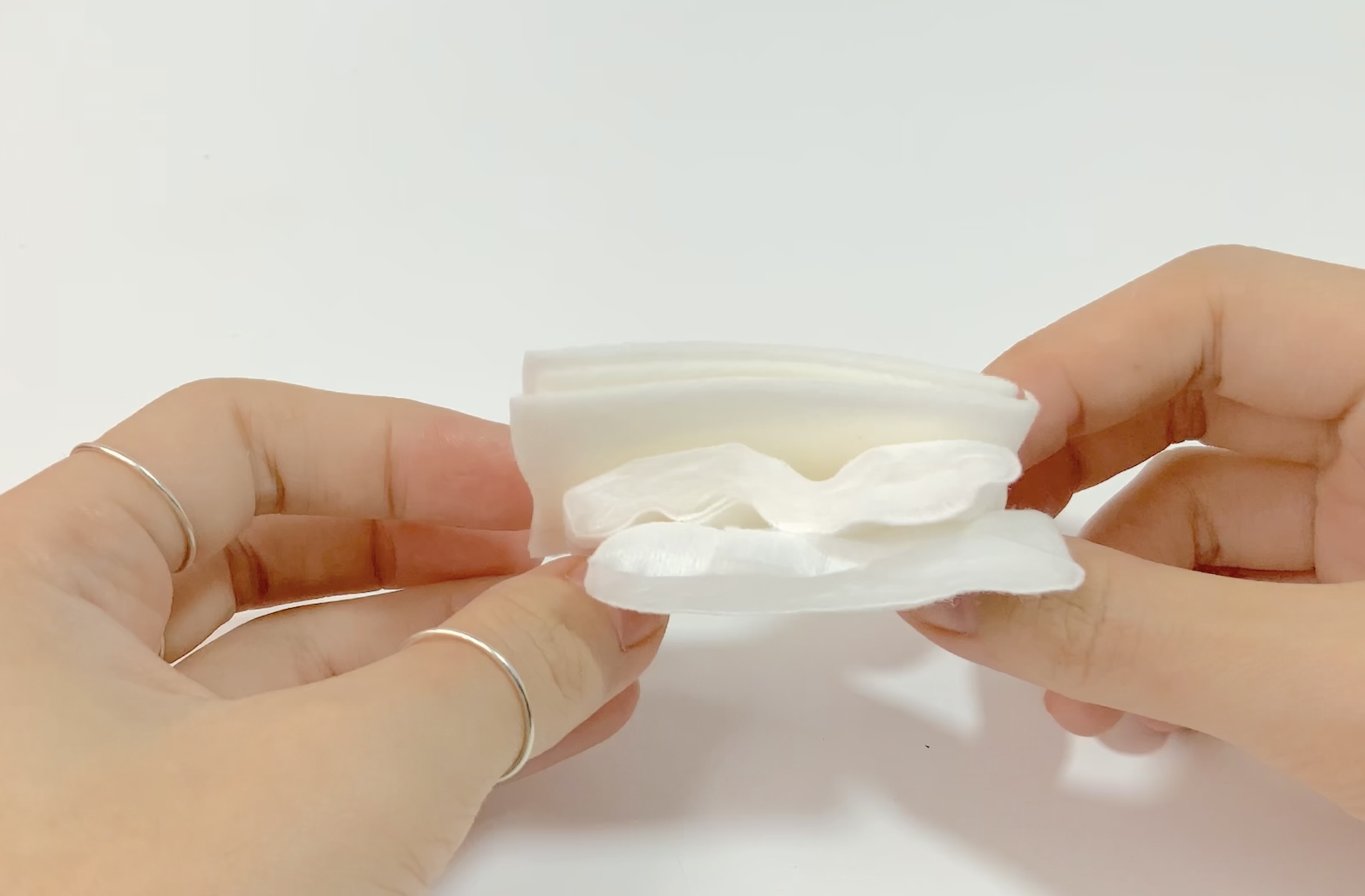 화장솜을 이렇게 절반으로 잘라서 해부해보는 일은 처음인데 아주 신기하네요.