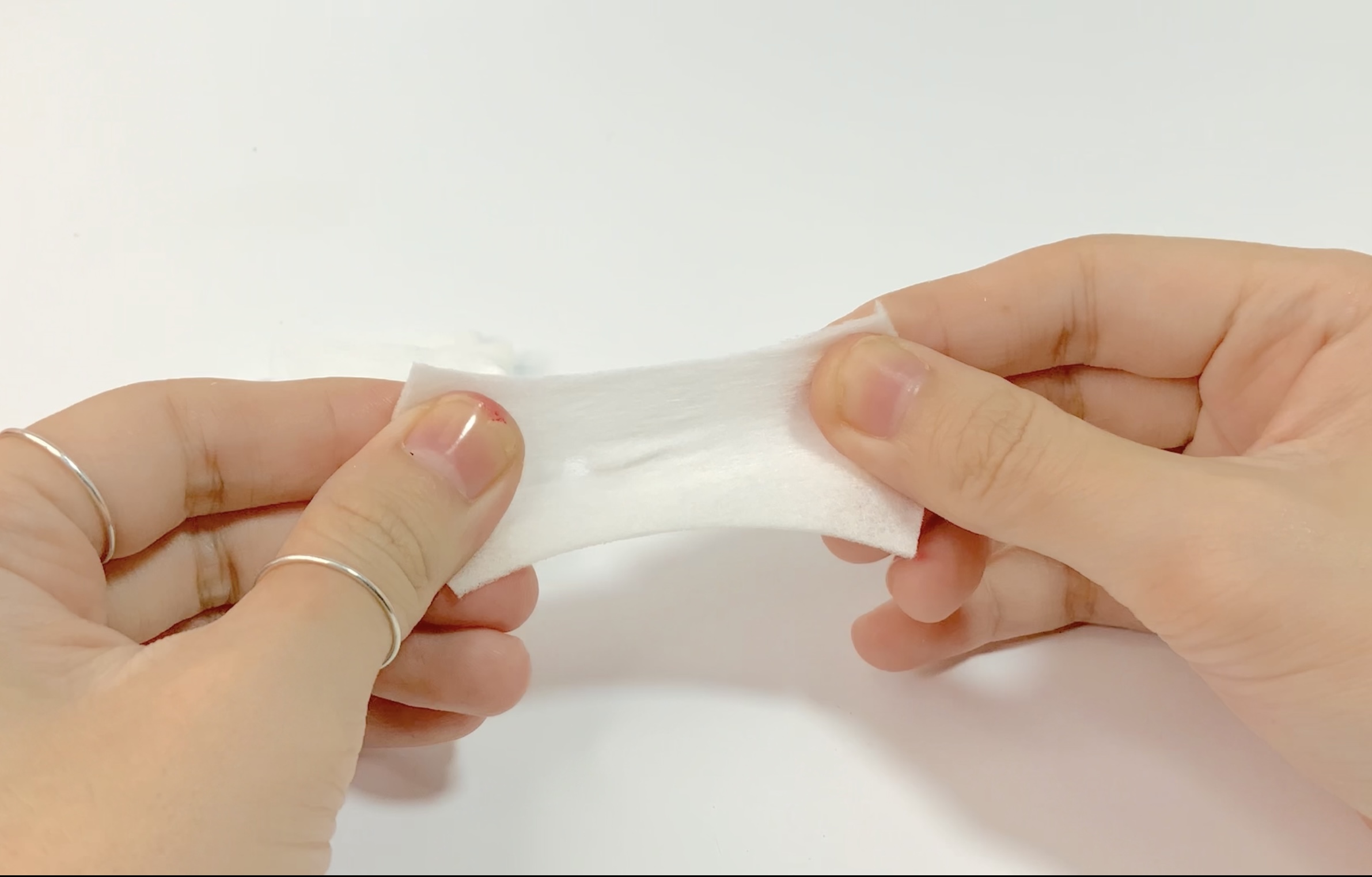 화장솜을 양손으로 잡고 쭉쭉 늘려보았습니다 :