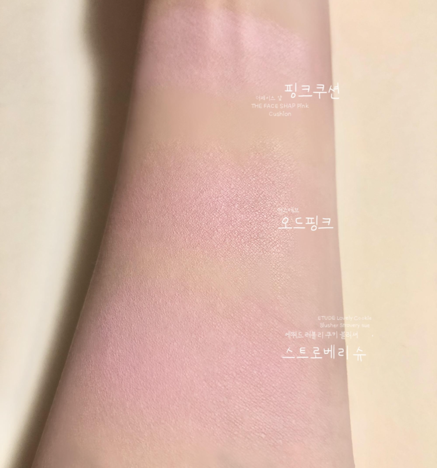 로드샵 블러셔 핑크빛 추천!! 비교발색 오드핑크 & 핑크쿠션 & 스트로베리슈