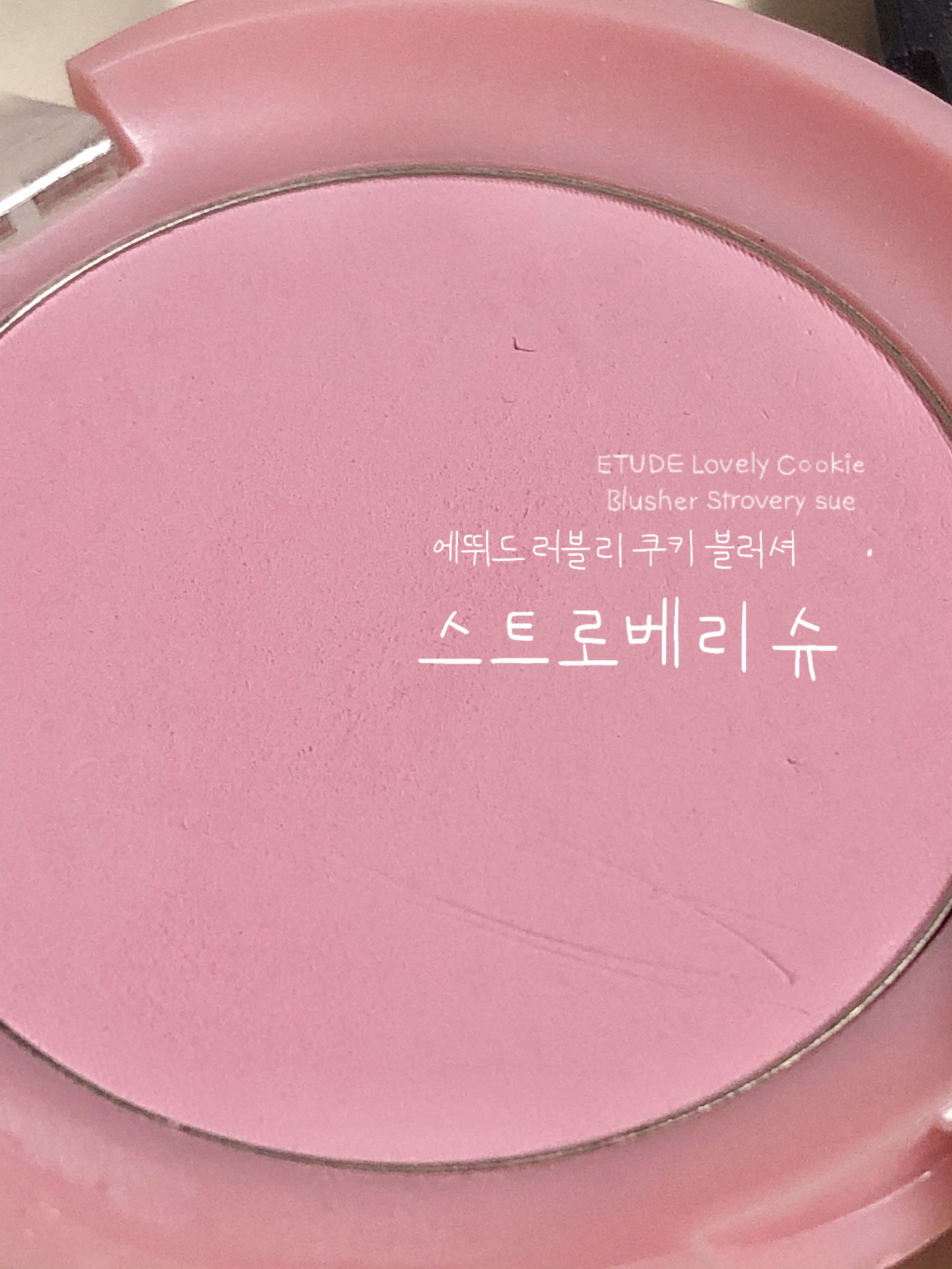 오드 핑크는 촉촉한 촉감이 느껴져요.  그에 비해 에뛰드 블러셔 스트로베리 슈는 단단한 느낌이라 촉촉하거나 누르면 폭폭 들어가는 느낌의 블러셔는 아닙니다. 그럼에도 발색에선 전혀 뒤처지지 않아요.