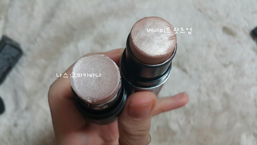 나스 하이라이터를 제품 하나만 따로 보면 당연히 밀착력이 좋지만 스틱 타입으로 로라 메르시에를 이길 수가 없고 같은 스틱 타입인 베네피트 역시 샤넬보다 수분감이 적어 베네피트의 유지력을 이기지 못해 셋 중에서 가장 유지력이 떨어집니다.